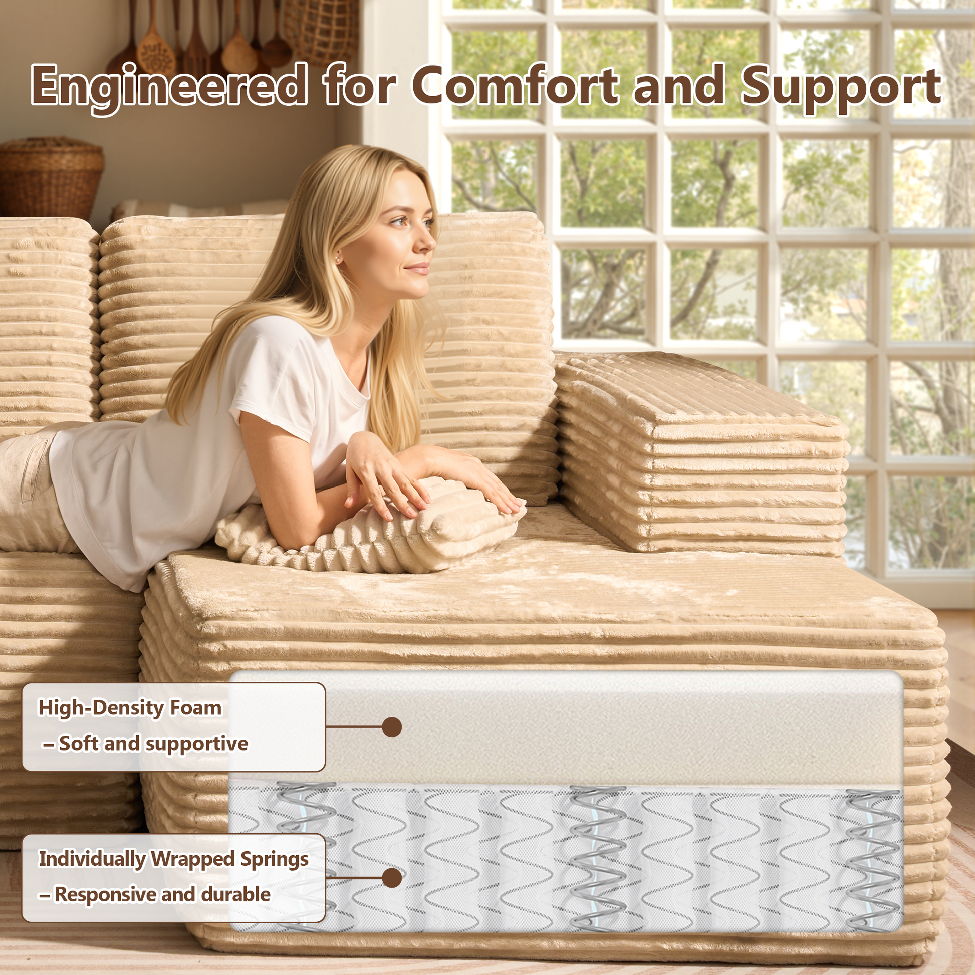 No Assembly Required:Skip the usual furniture setup hassle with our modular cloud lounge. Simply unbox each piece, give it a light tap to boost its springiness, and watch it regain its photogenic shape. Full revival may take up to 72 hours. Enjoy the simplicity of true no-assembly comfort.