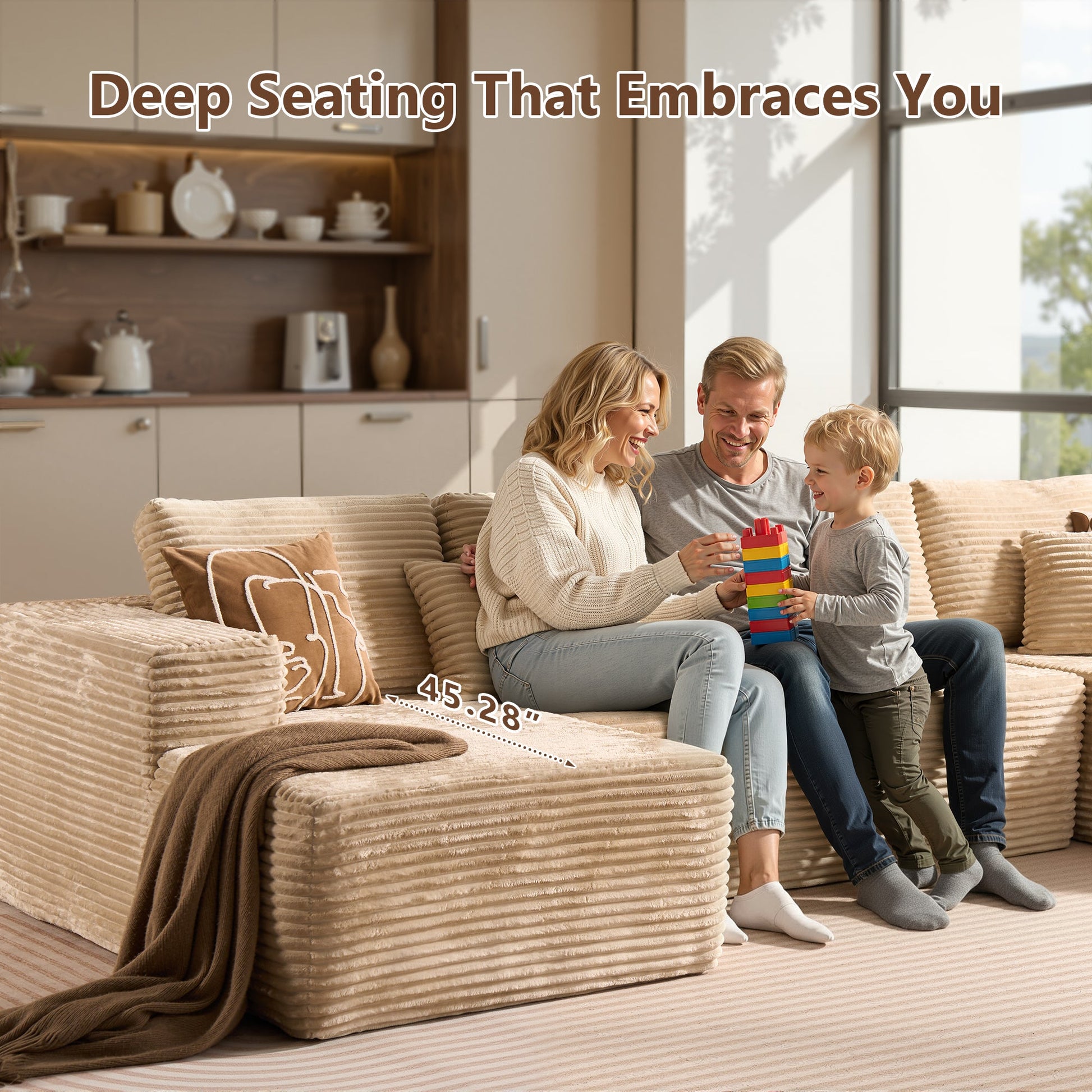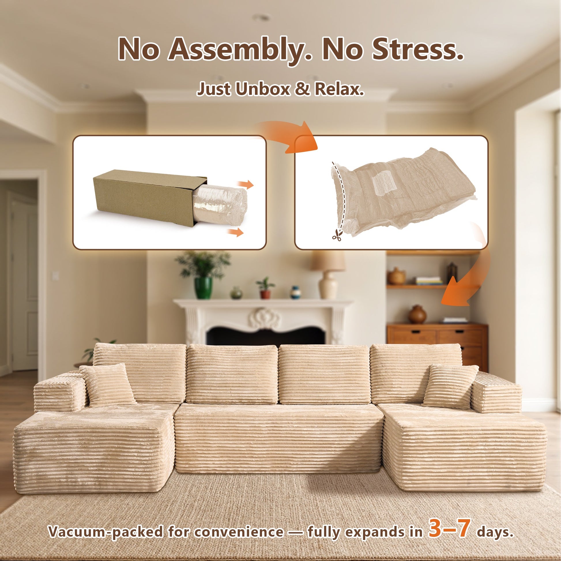 OVIOS U-Shaped Modular Sectional Sofa with Chaise, Plush Corduroy Fabric, No Assembly