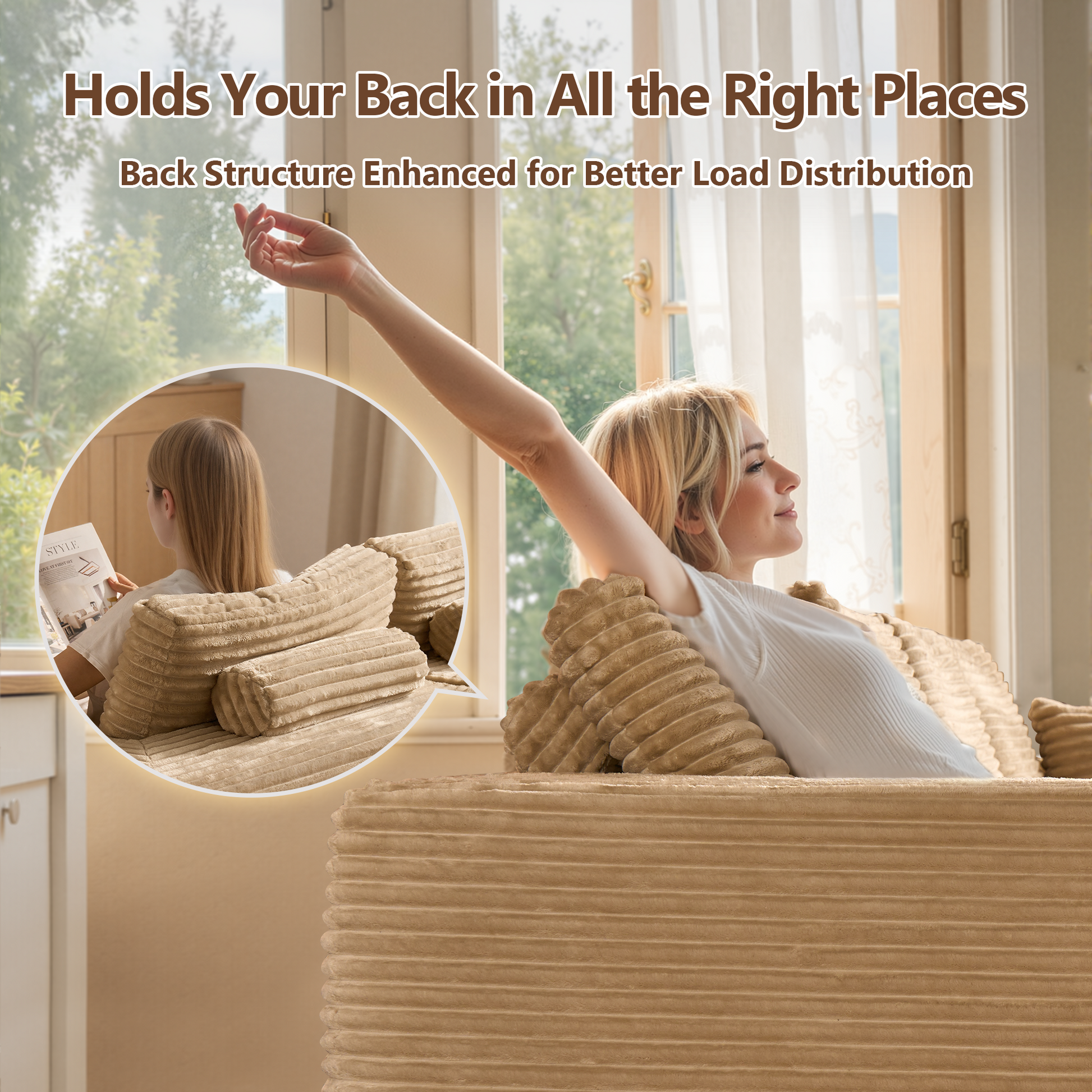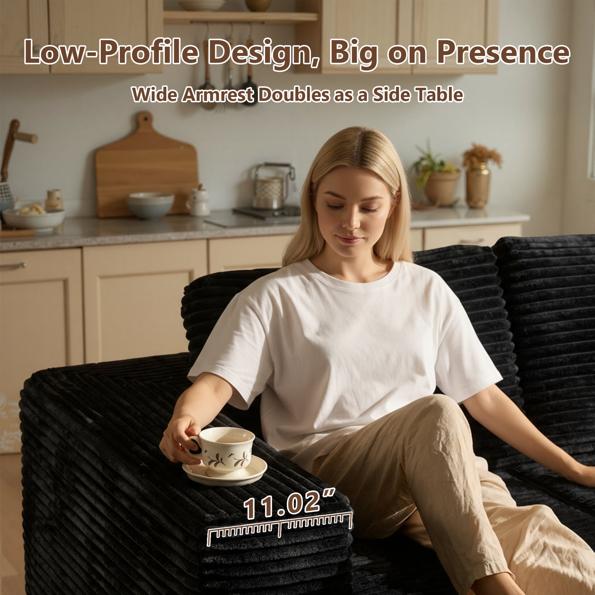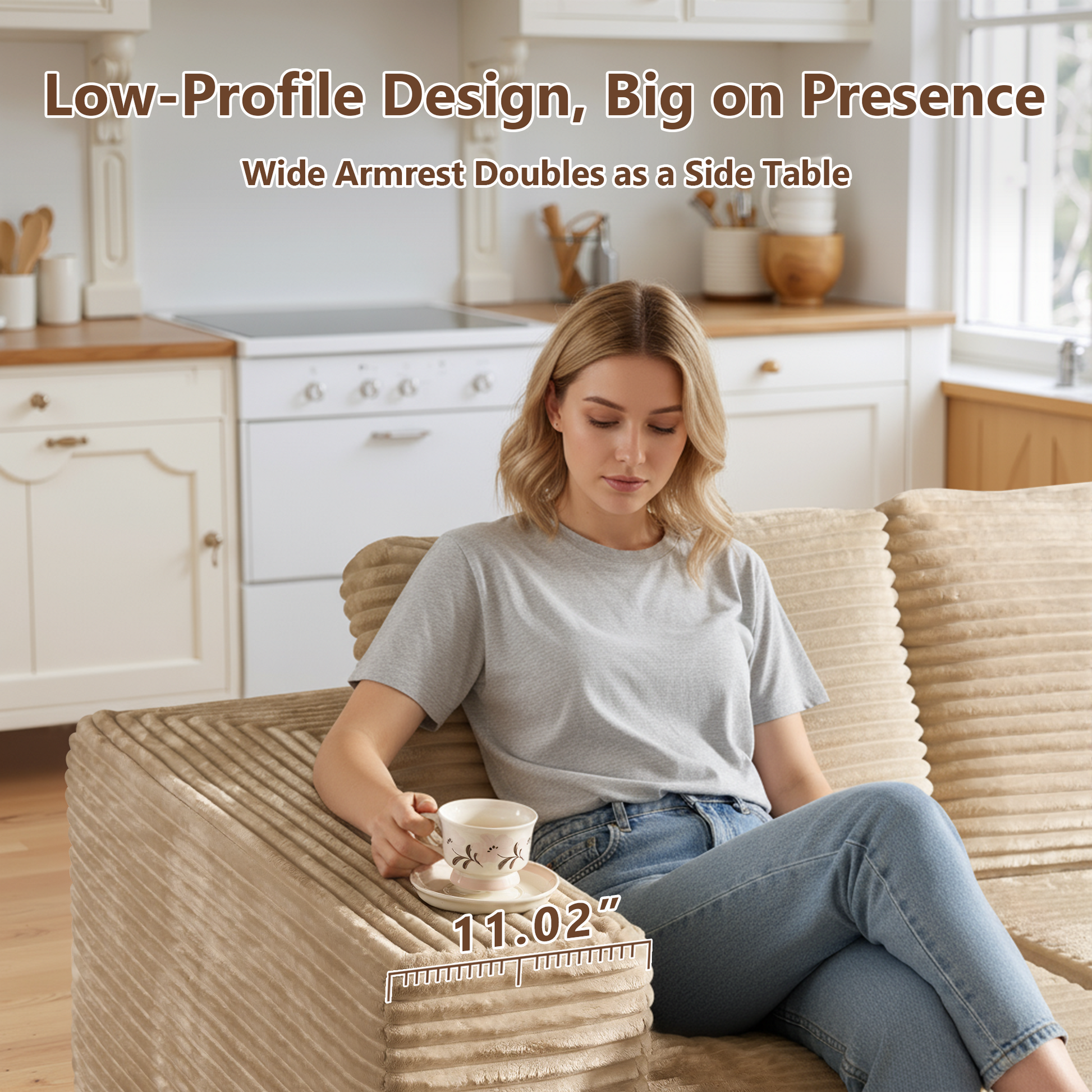 Plush Corduroy Fabric:Wrapped in soft-touch plush corduroy, this sofa adds a warm, inviting texture to your living space. The fabric is not only comfortable but also stain-resistant and durable—an ideal choice for families, pet owners, or anyone who actually lives on their furniture every day.