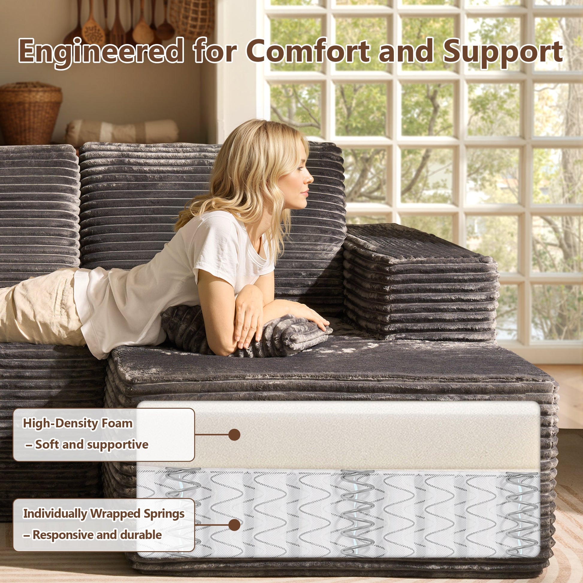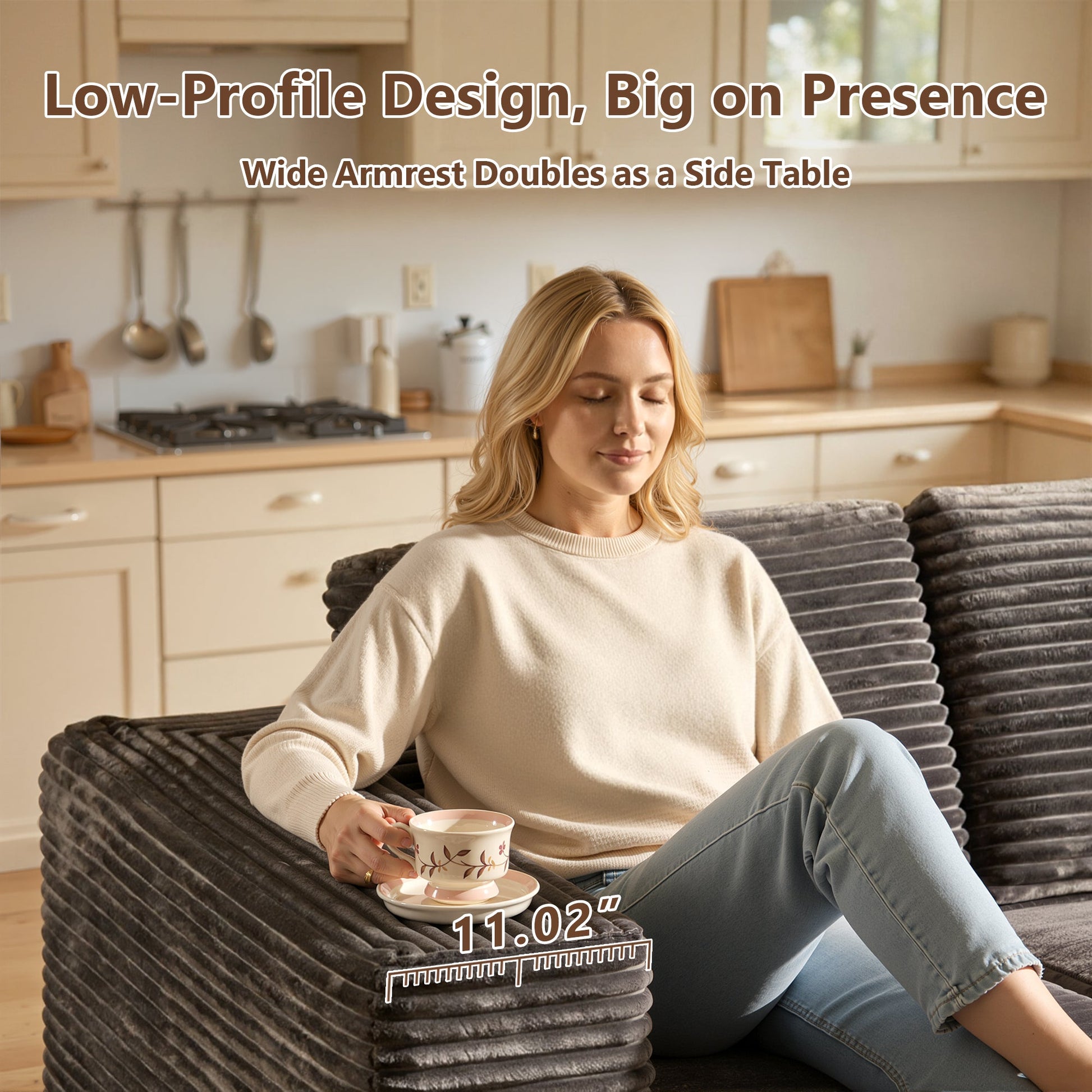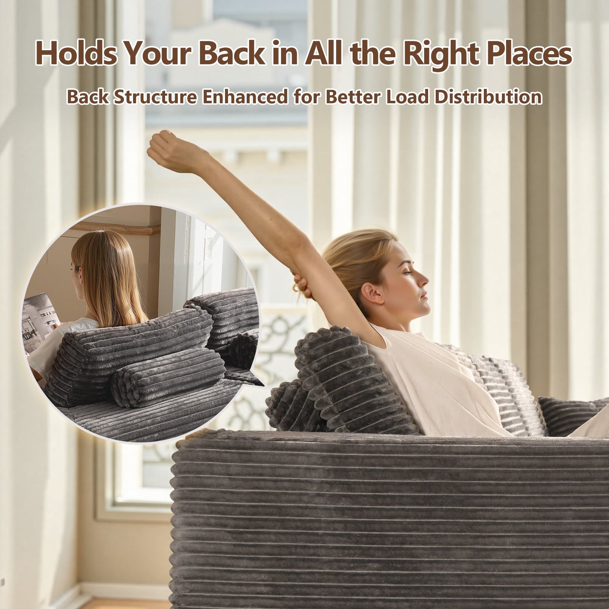 Plush Corduroy Fabric:Wrapped in soft-touch plush corduroy, this sofa adds a warm, inviting texture to your living space. The fabric is not only comfortable but also stain-resistant and durable—an ideal choice for families, pet owners, or anyone who actually lives on their furniture every day.
