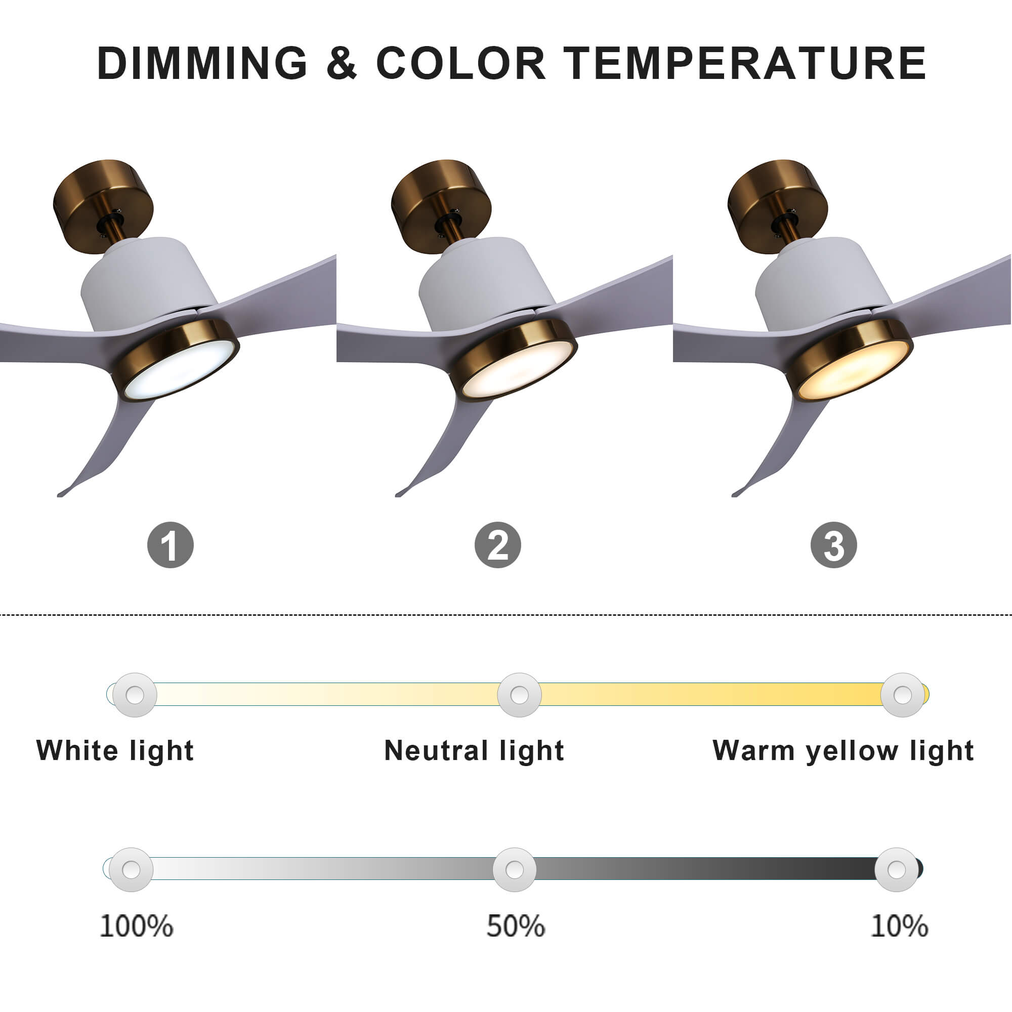 Ceiling Fan with Light: Dimmable 20W Integrated LED with 3 colors for your selection.