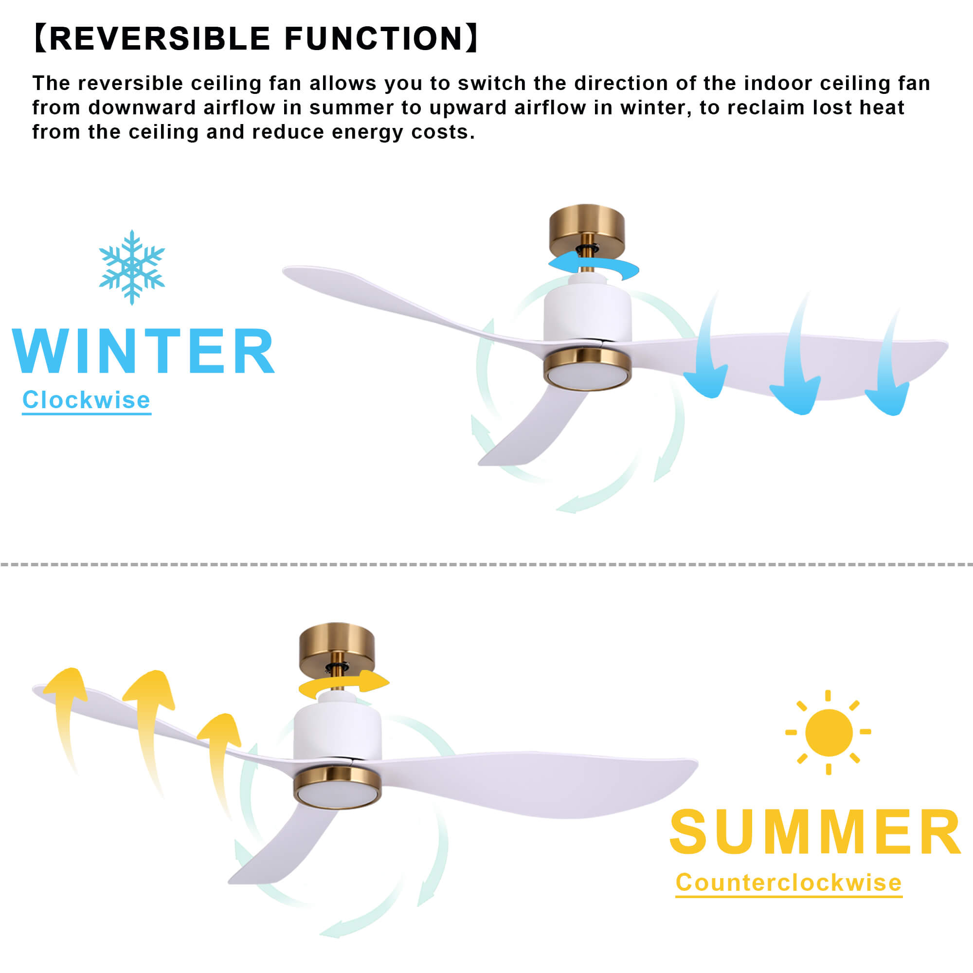 Ovios 52‘’ Ceiling Fan Reversible 3 Blades with Remote Control Lights, DC Motor