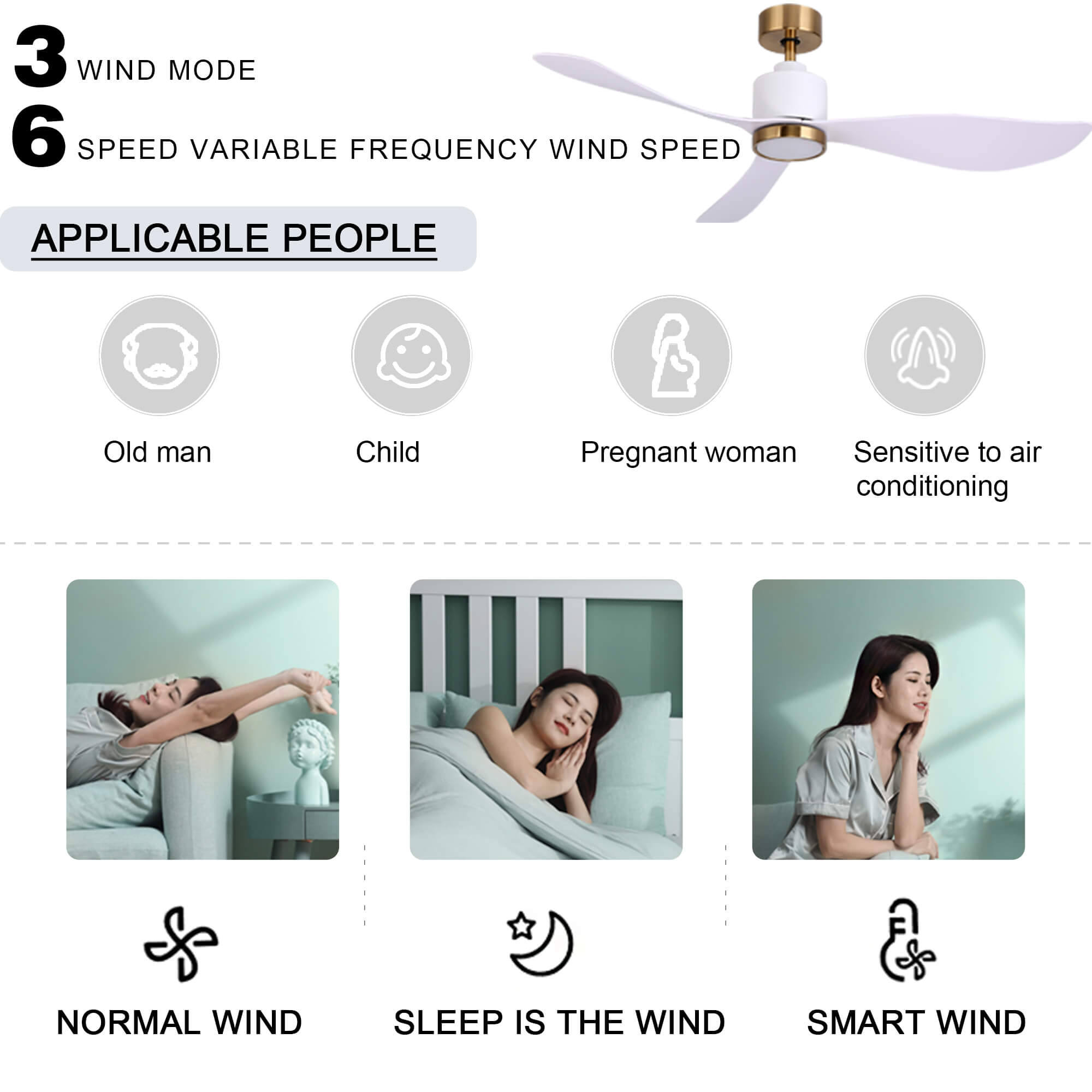 Convenient Remote Control: 6 fan speeds, 3 lighting color and brightness control, breeze downward or upward control.