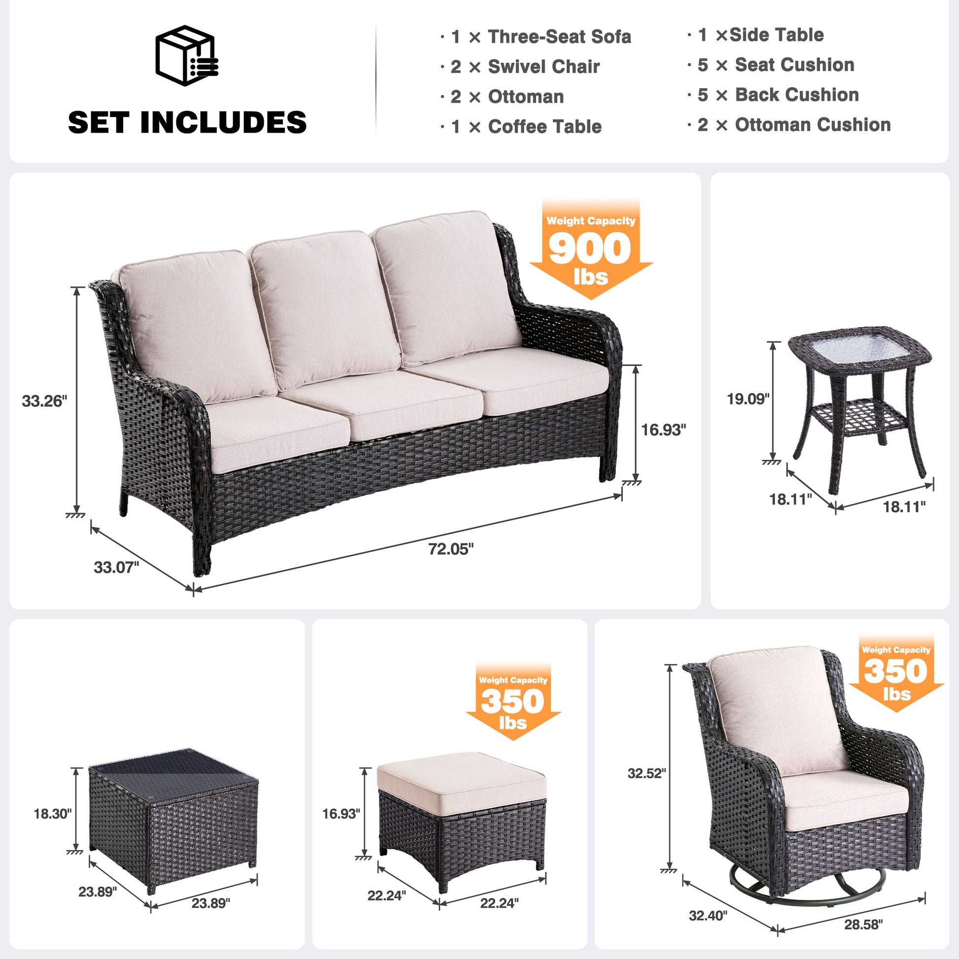 Ovios Patio Conversation Set 7-Piece with Swivel Chairs and Table Kenard