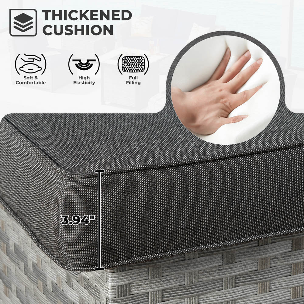 Weather Resistance: The furniture is built to withstand various weather conditions. It offers UV protection and is made with water repellent PE rattan wicker, ensuring durability even in challenging outdoor environments.