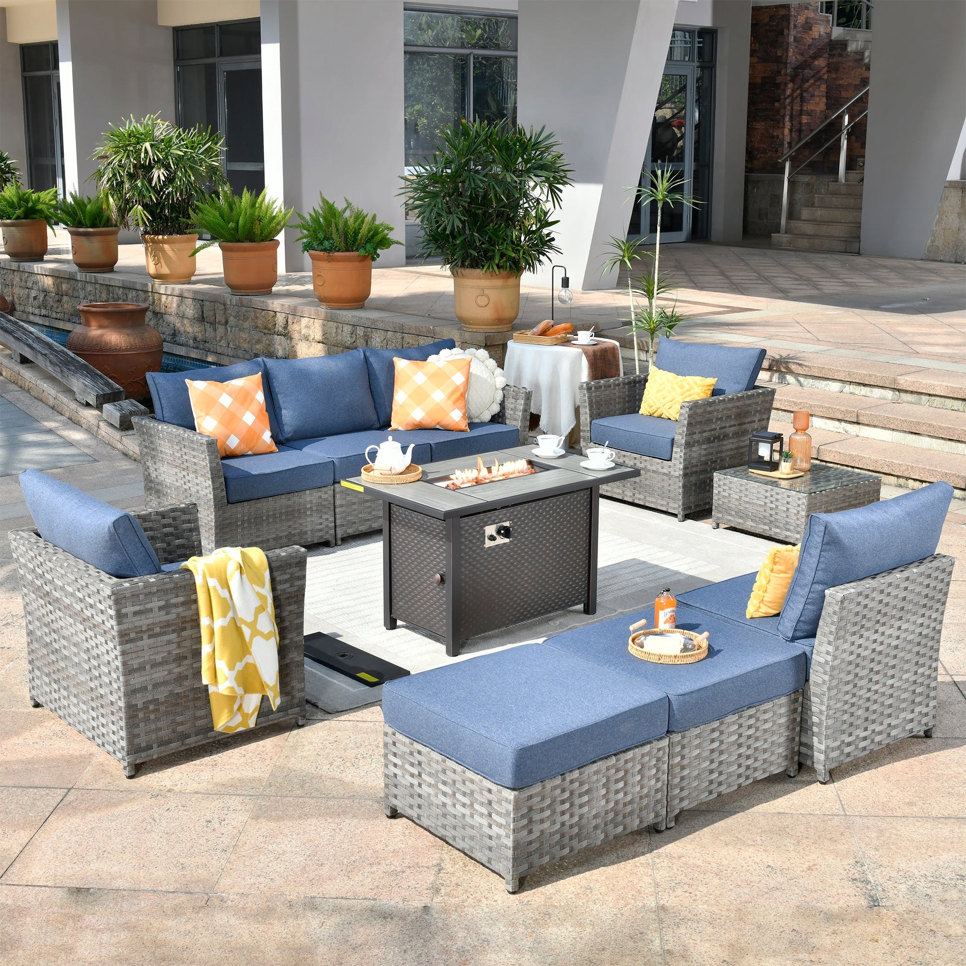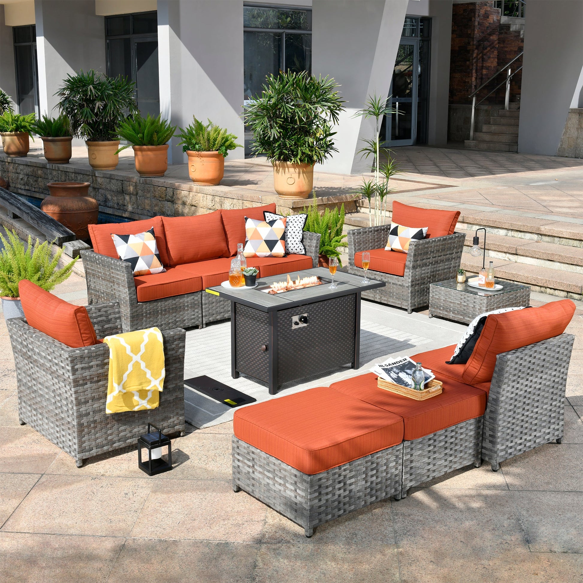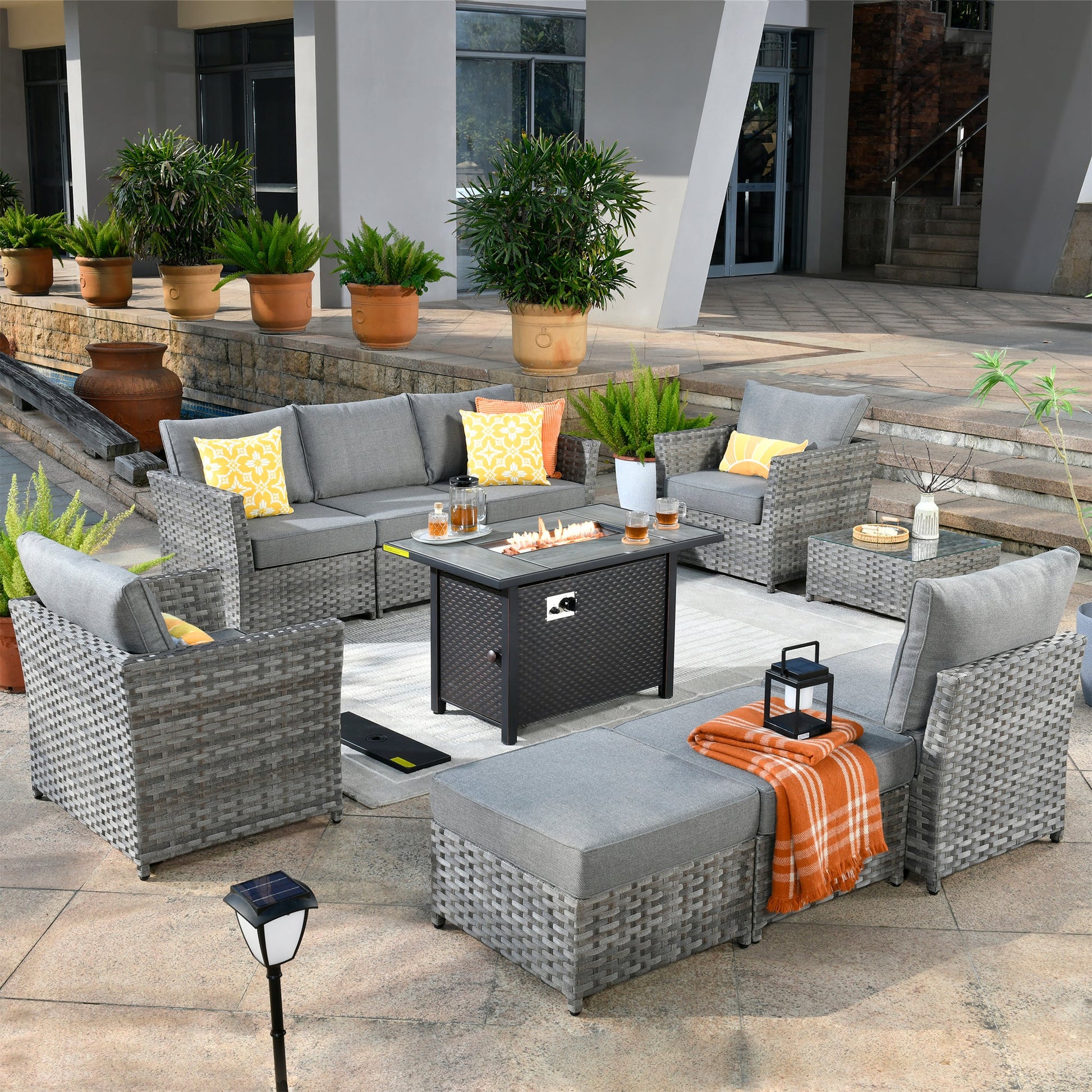 OVIOS Patio Furniture Set 10-Piece include 42"Fire Pit Table,New Rimaru Series