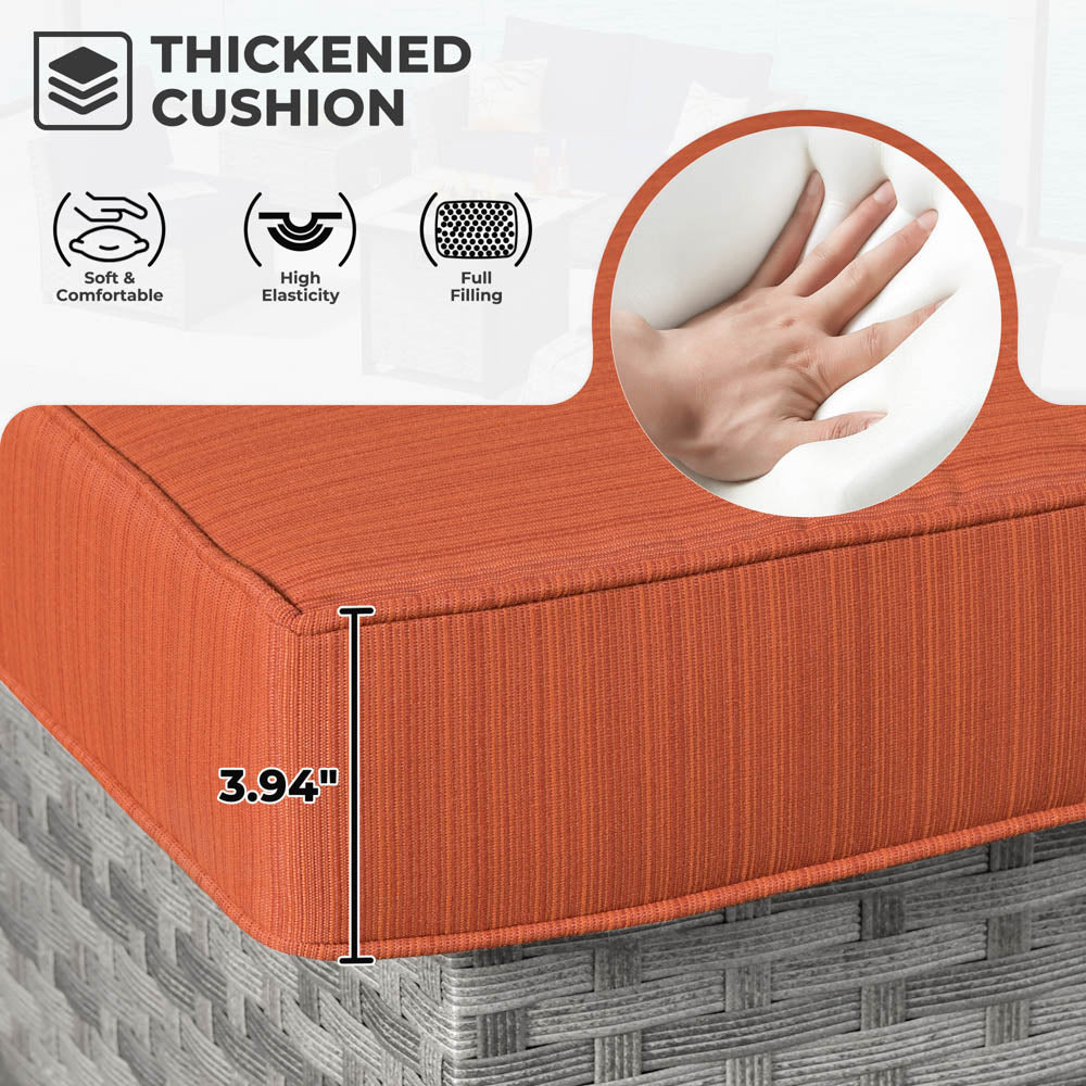 Weather Resistance: The furniture is built to withstand various weather conditions. It offers UV protection and is made with water repellent PE rattan wicker, ensuring durability even in challenging outdoor environments.