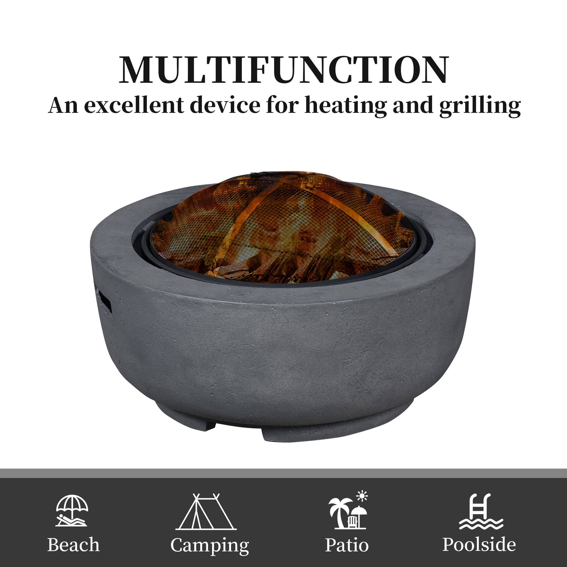 OVIOS 23.62'' Round Magnesium Oxide Wood Burning Fire Pit