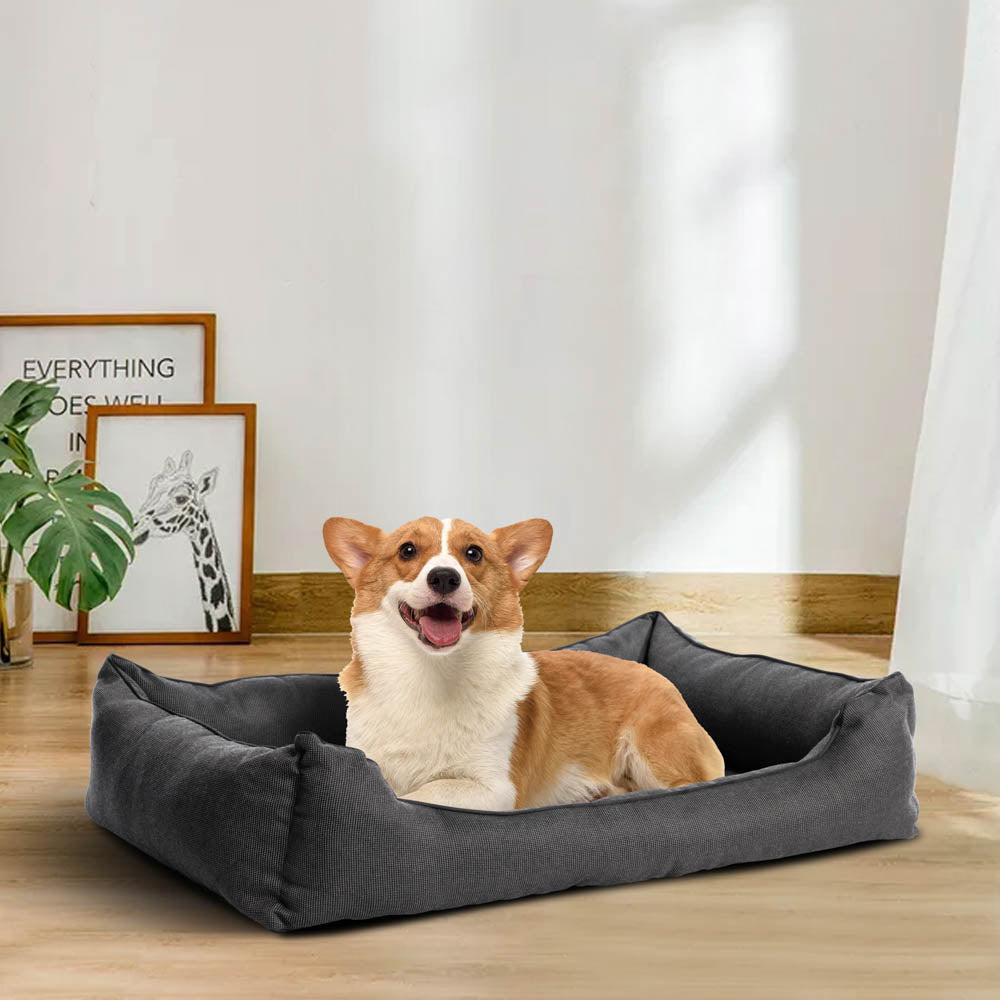 Designed for Pets: OVIOS pet sofa beds provide your furry babies a cozy space to relax and rest. The 3-sided bolster design promotes ultimate comfort and security, offering your pet a variety of cozy positions to snuggle. The nonslip bottom ensures the bed's stability, granting your pet a secure sensation.