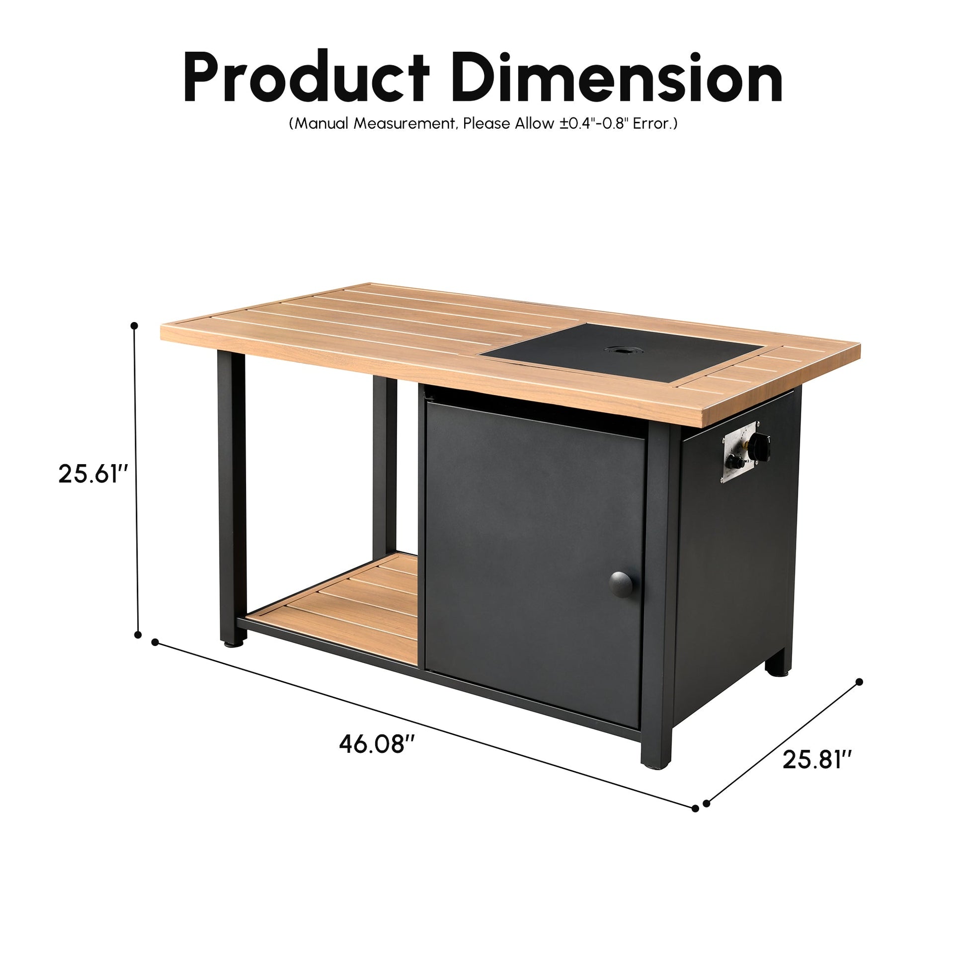 Ovios 46'' Rectangle Propane Fire Pit Double Layer Table