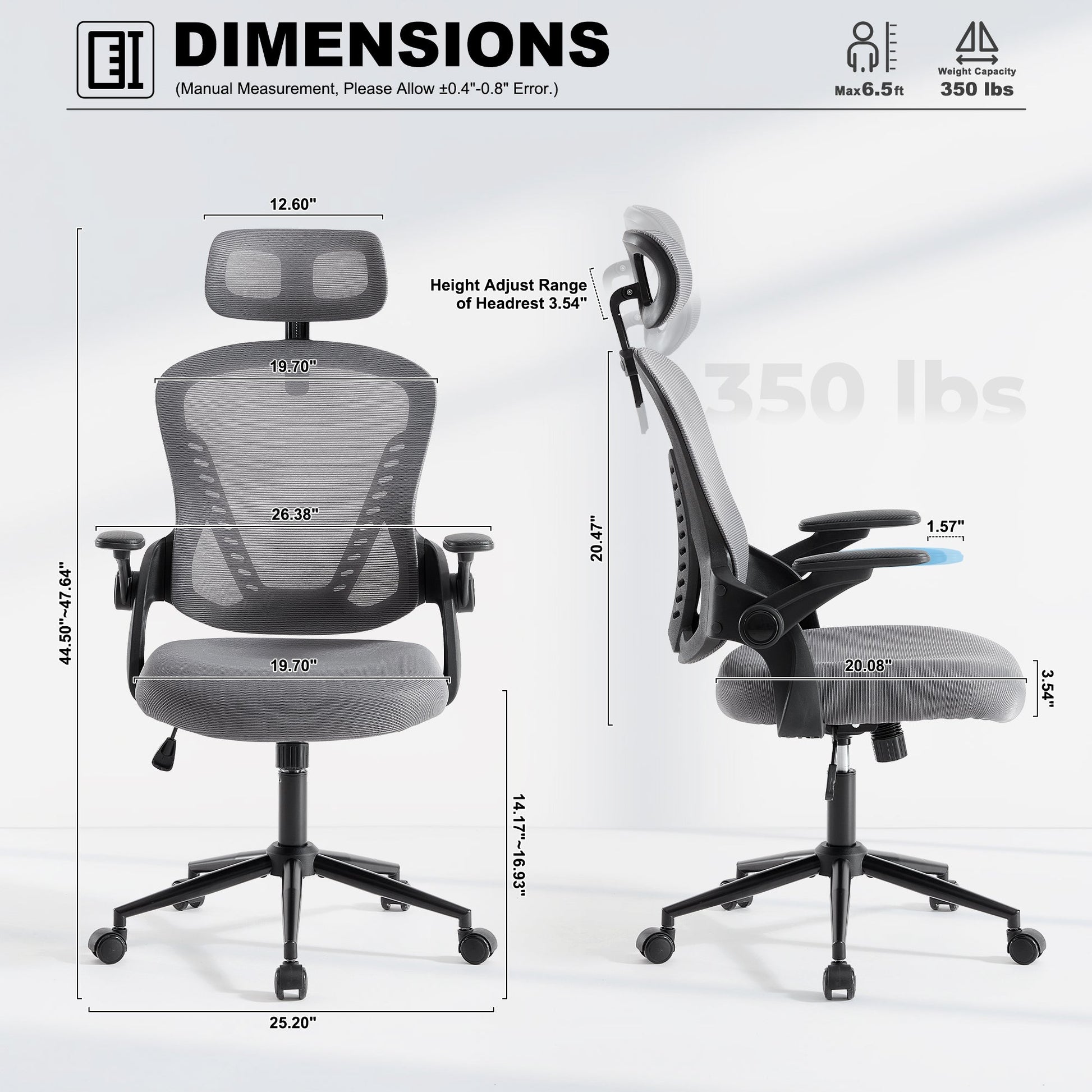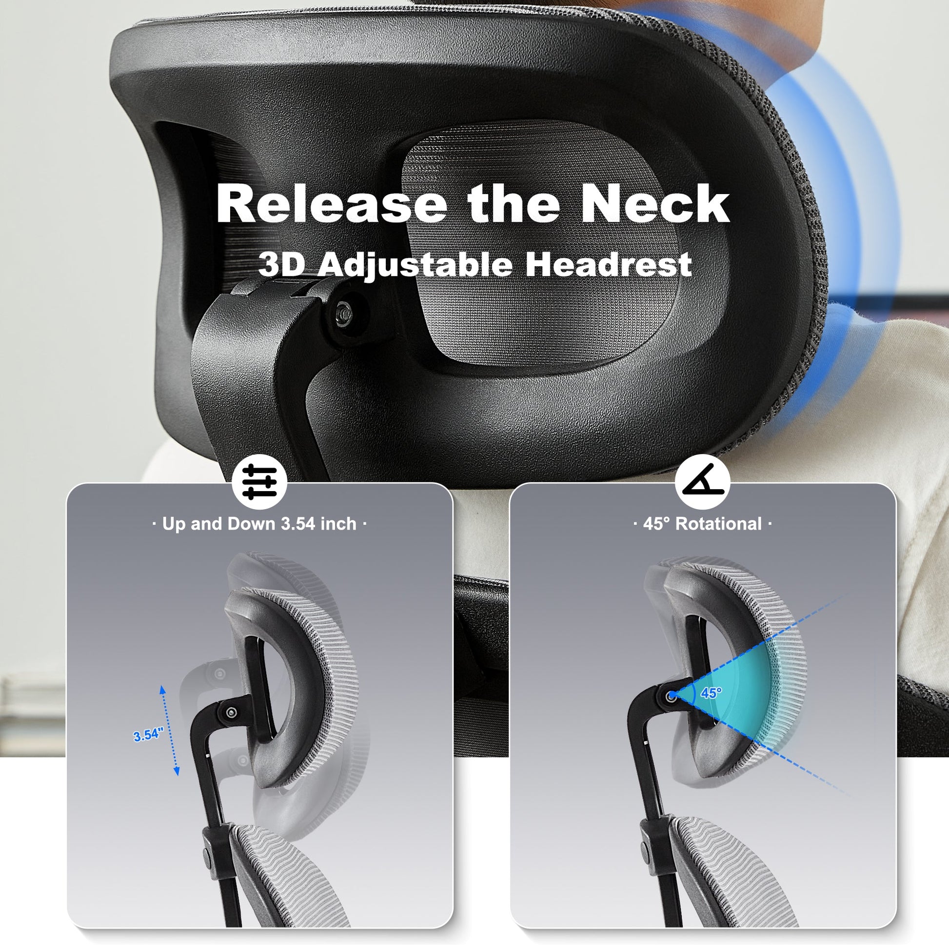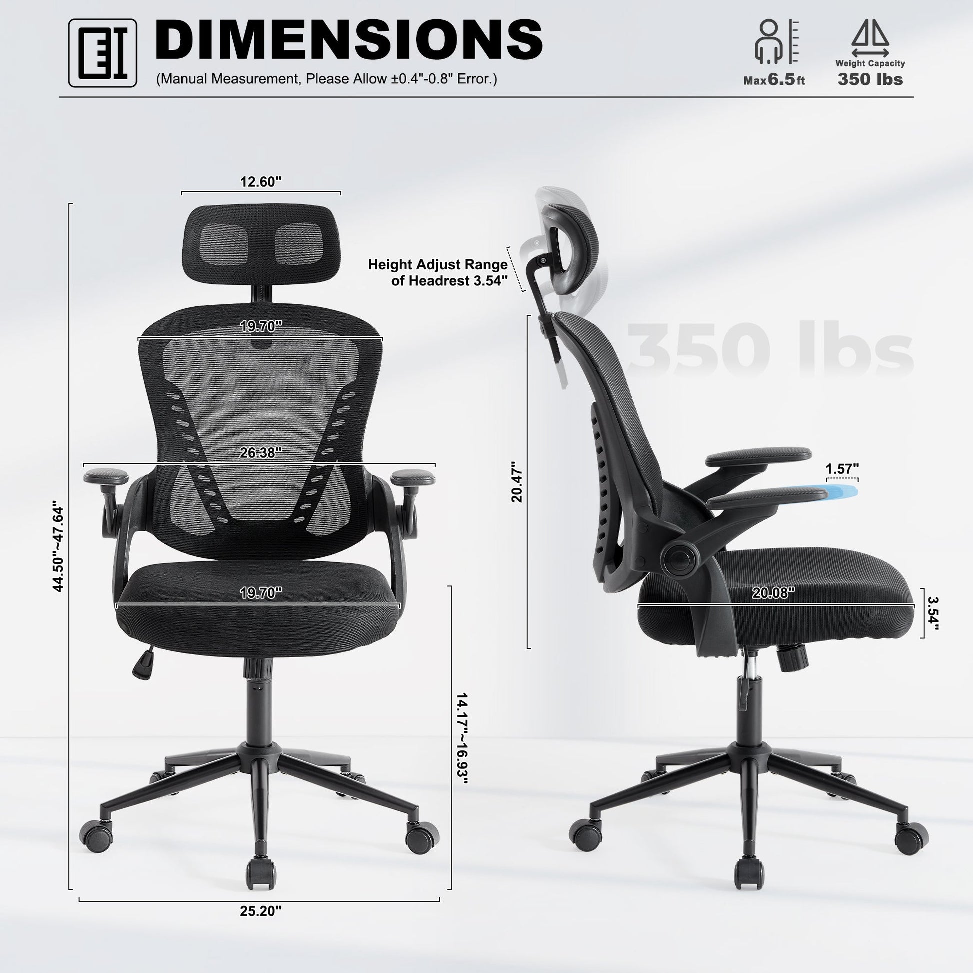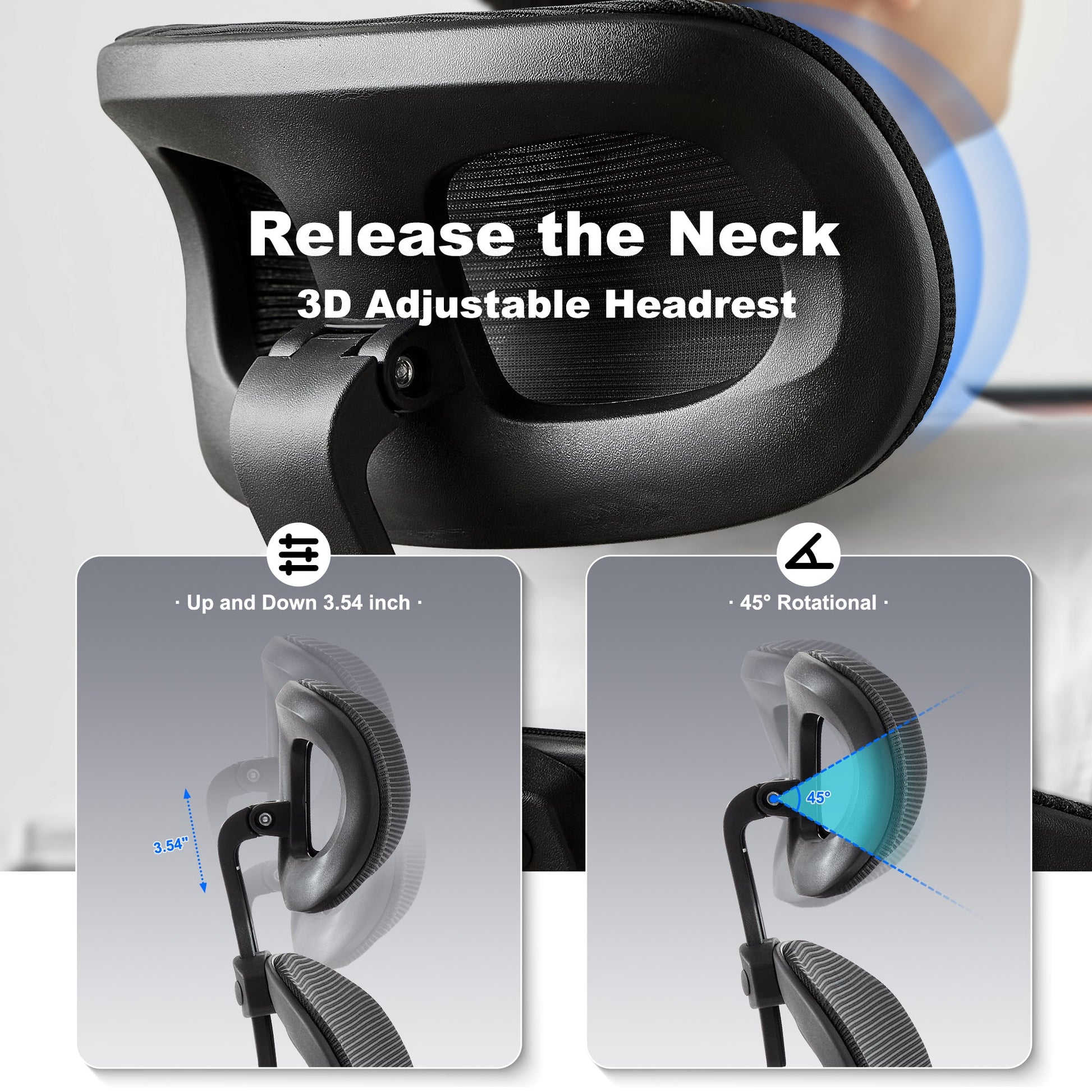 This office chair is meticulously designed to conform to the golden ratio of human sitting posture, providing comprehensive support for the head, neck, shoulders, back, waist, arms, hips, and legs. Suitable for individuals approximately 5 feet to 6.5 feet tall, with a maximum weight capacity of 350 LBS.