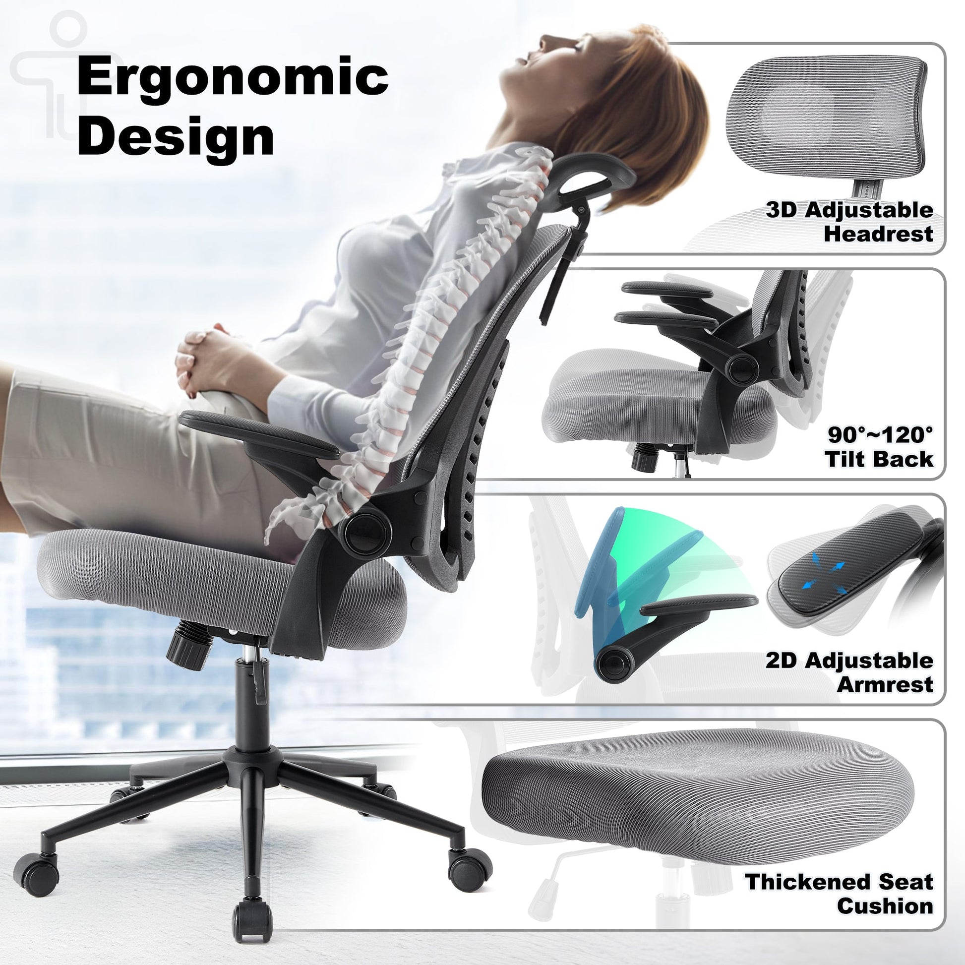 Multi-dimensional Adjustment Functions: Features a 2D headrest, flip-up armrests, adjustable chair height, and 360° rolling wheels, allowing individuals of different heights to find the most comfortable sitting position. Additionally, the chair has a 90°-120° tilt function with locking capability, suitable for various scenarios such as work, leisure, study, recreation, and prolonged sitting.