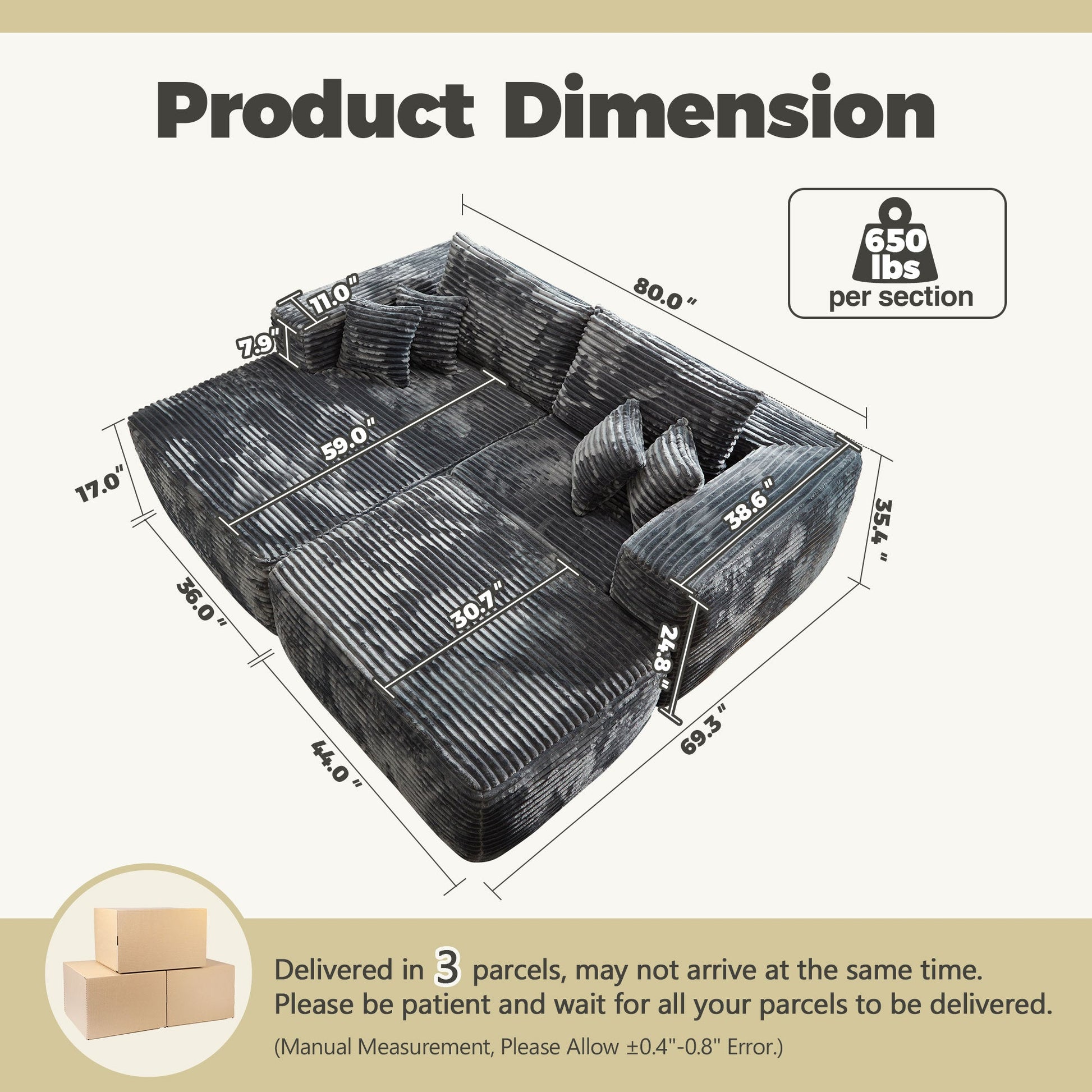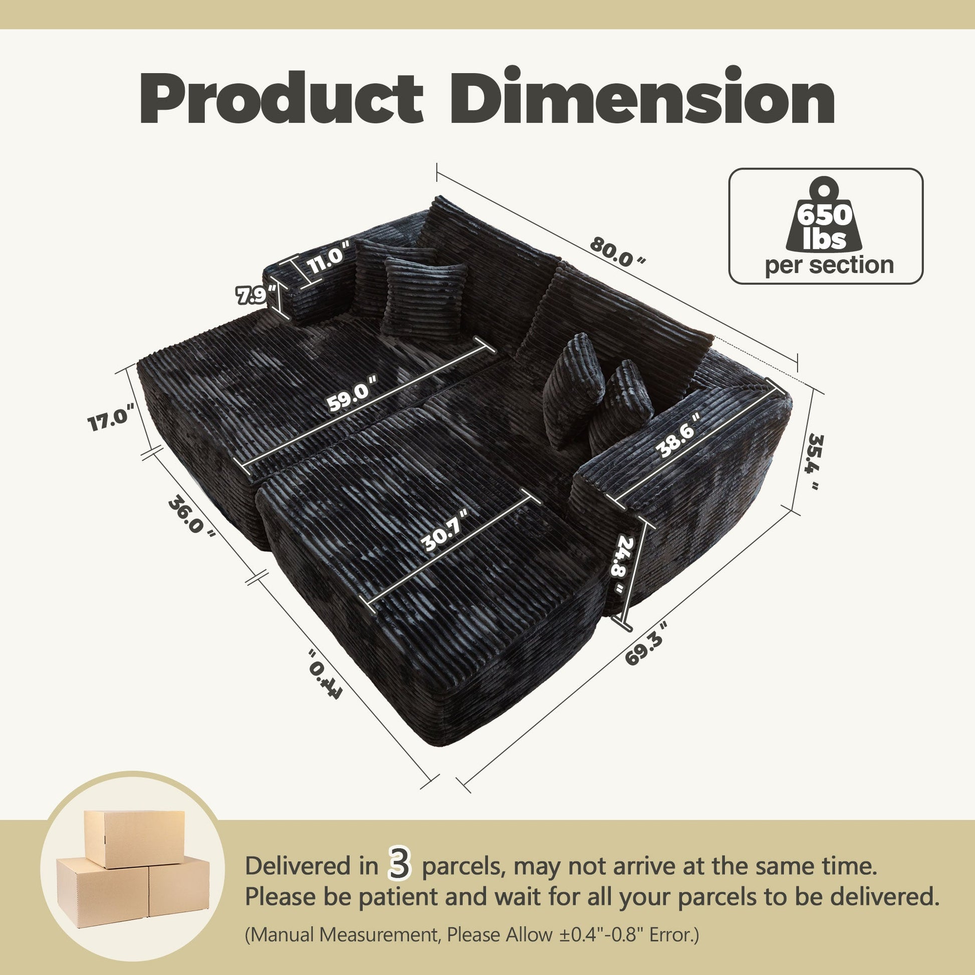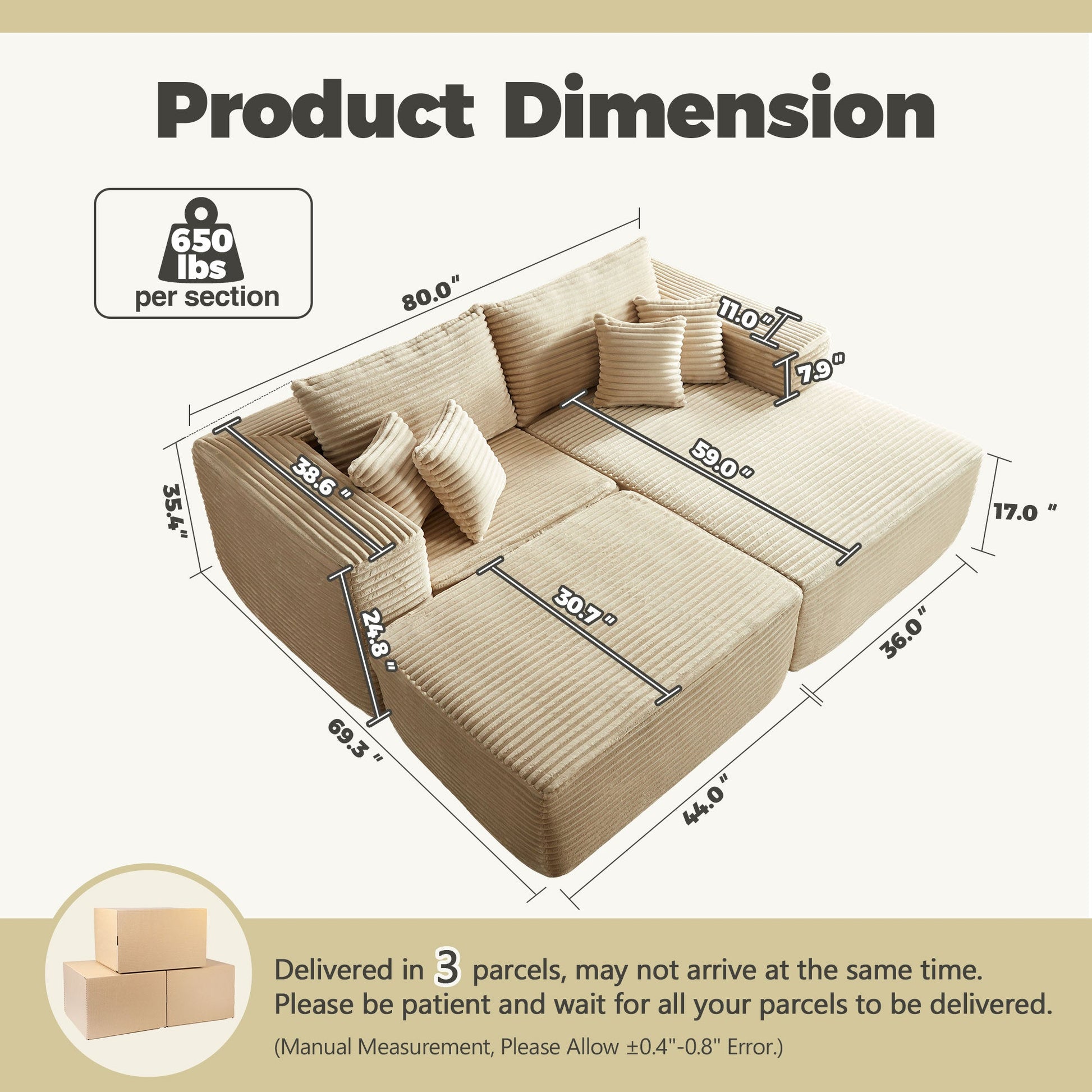 Ovios 80"Modular Couch with Chaise&Ottoman, Sleeper Sofa, No Assembly Required