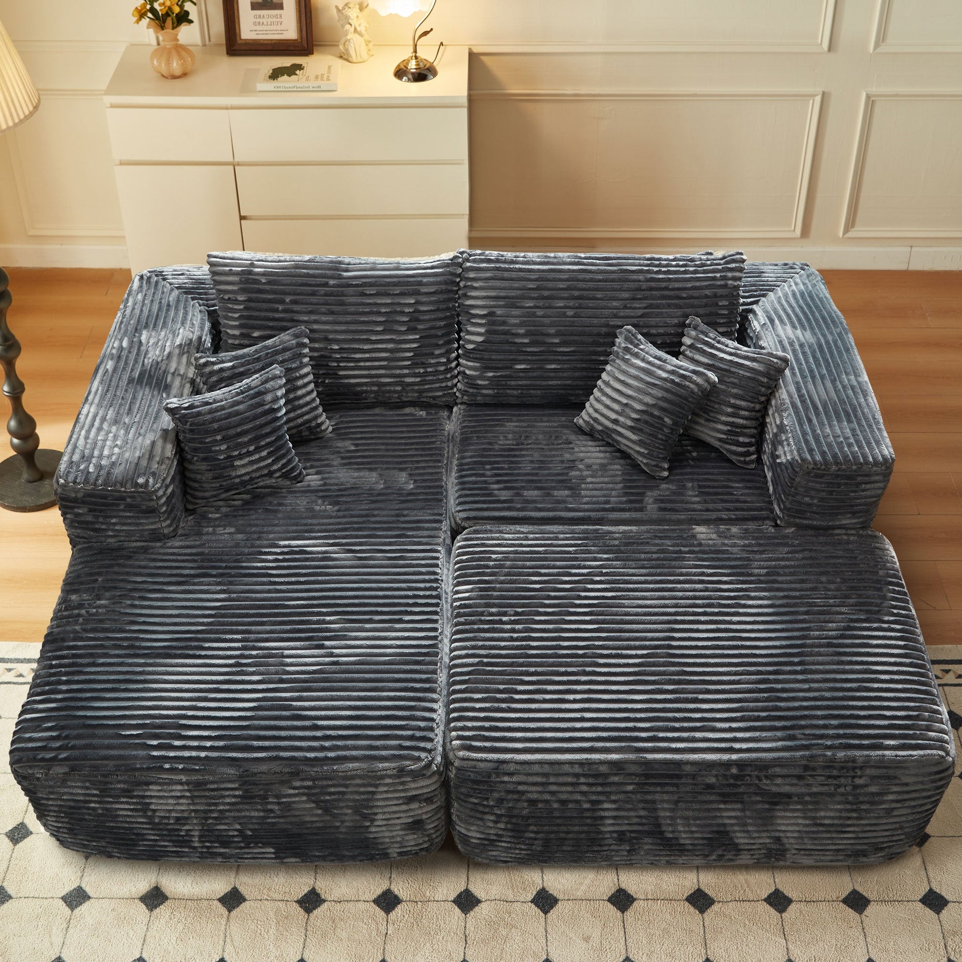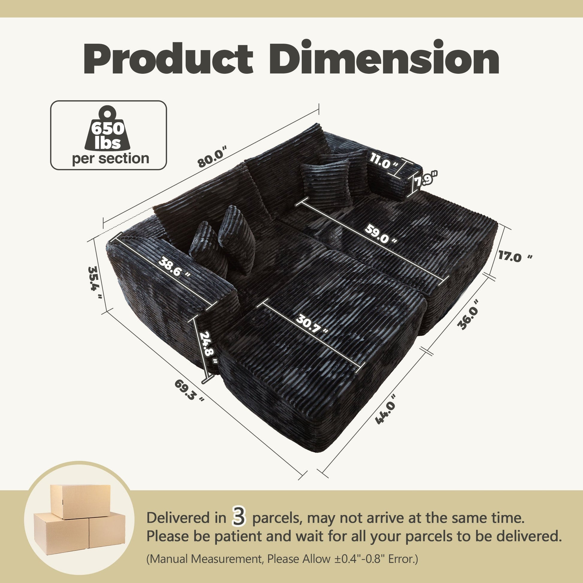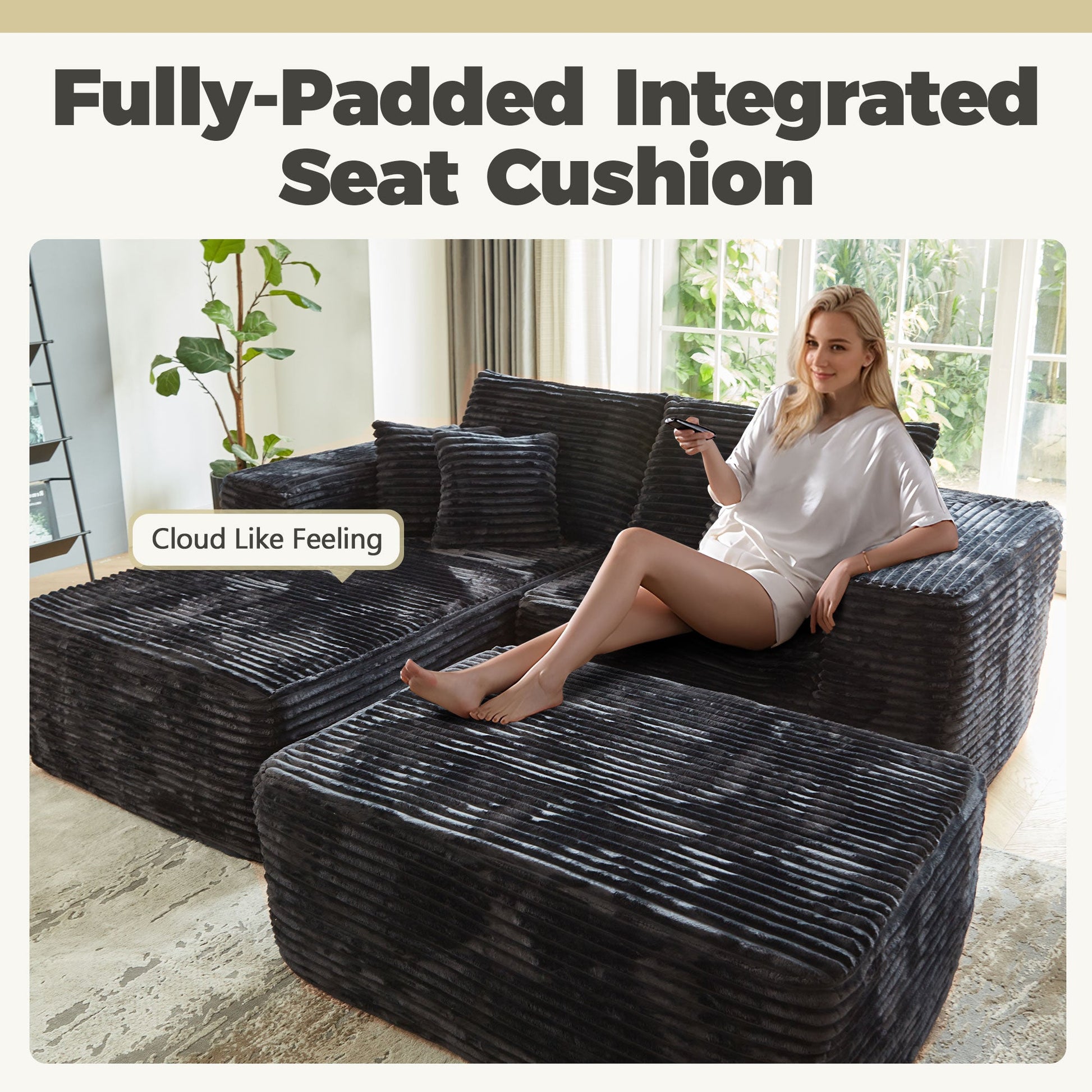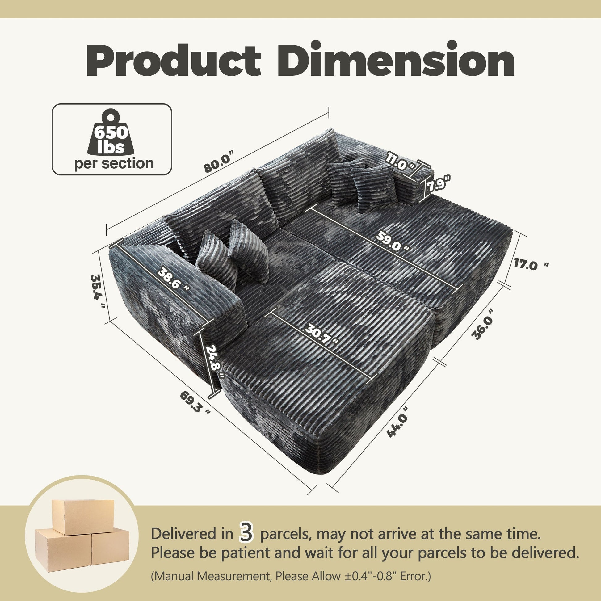 Ovios 80"Modular Couch with Chaise&Ottoman, Sleeper Sofa, No Assembly Required