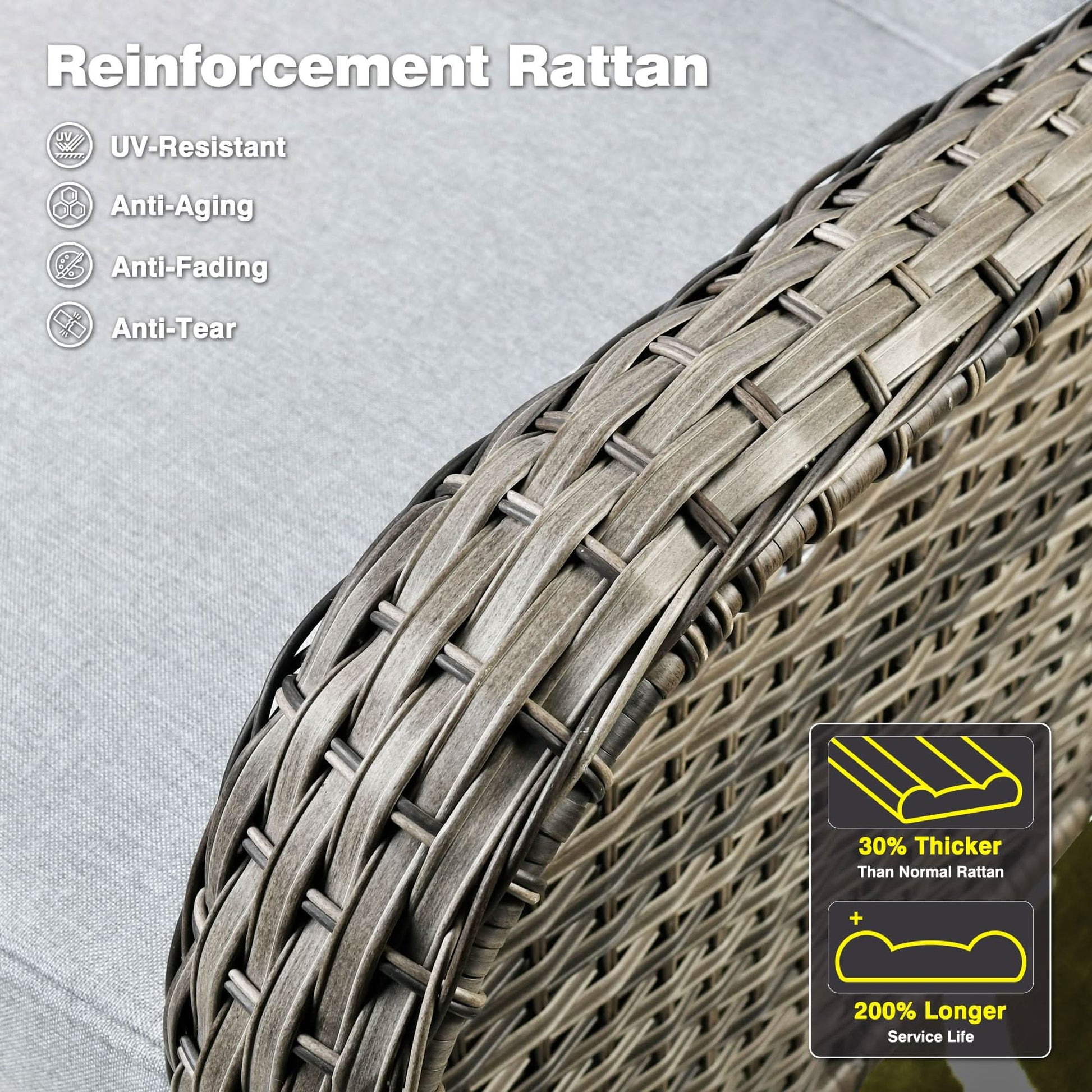 Sturdy & Practical Design:Cozy yet modern experience with spacious armrests and deep seats. Long-lasting wicker guarantees durability, erasing worries of wear over time.