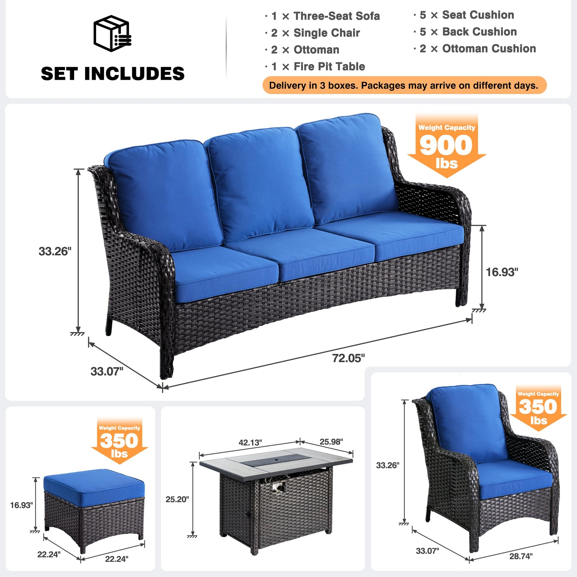 OVIOS Patio 6-Piece Conversation Set with 42'' Rectangle Propane Fire Pit Table Kenard