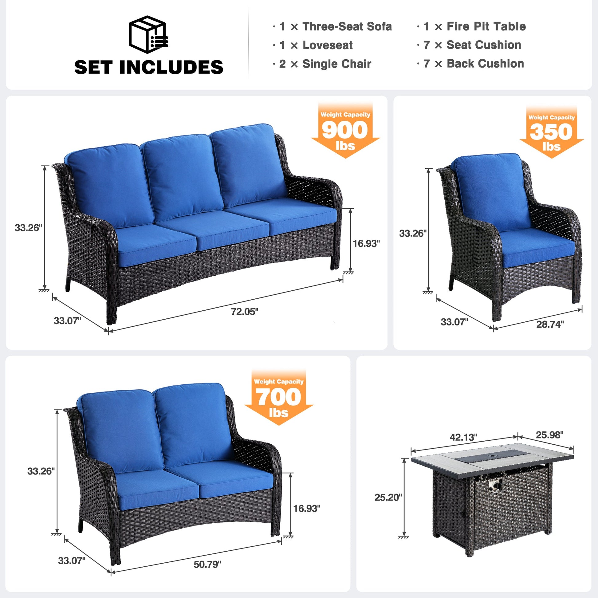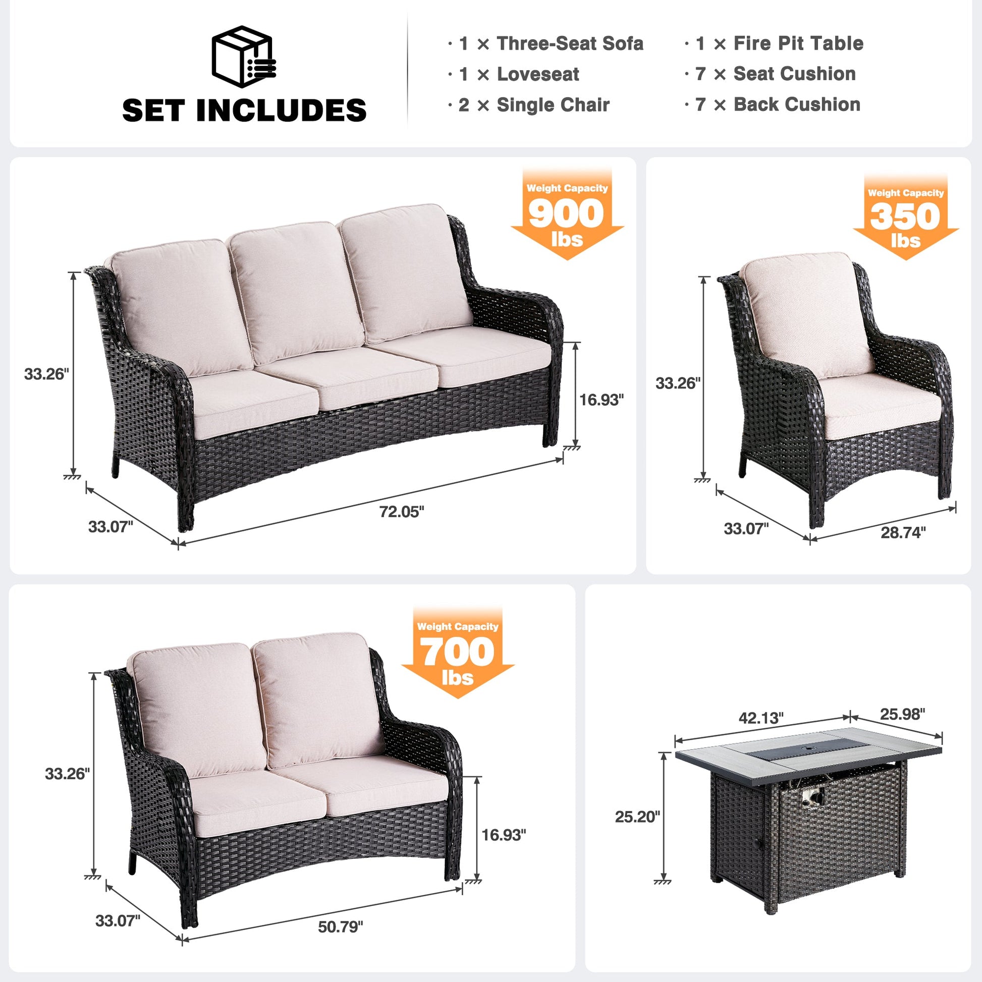 | Fire Pit Table | 25.20"H x 42.13"W x 25.98"D |