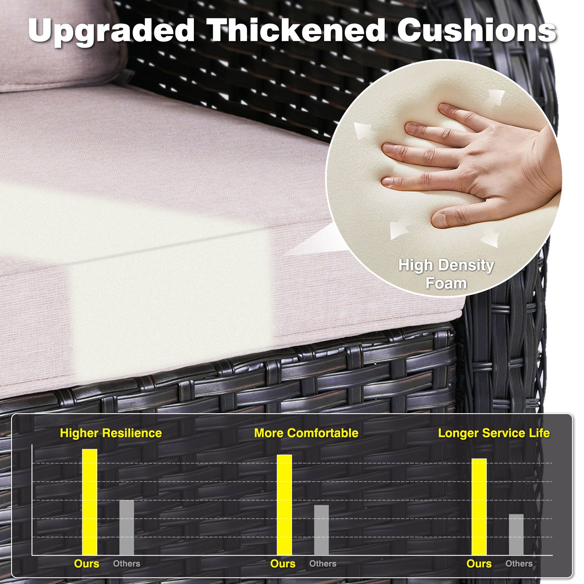 Sturdy & Practical Design:Cozy yet modern experience with spacious armrests and deep seats. Long-lasting wicker guarantees durability, erasing worries of wear over time.
