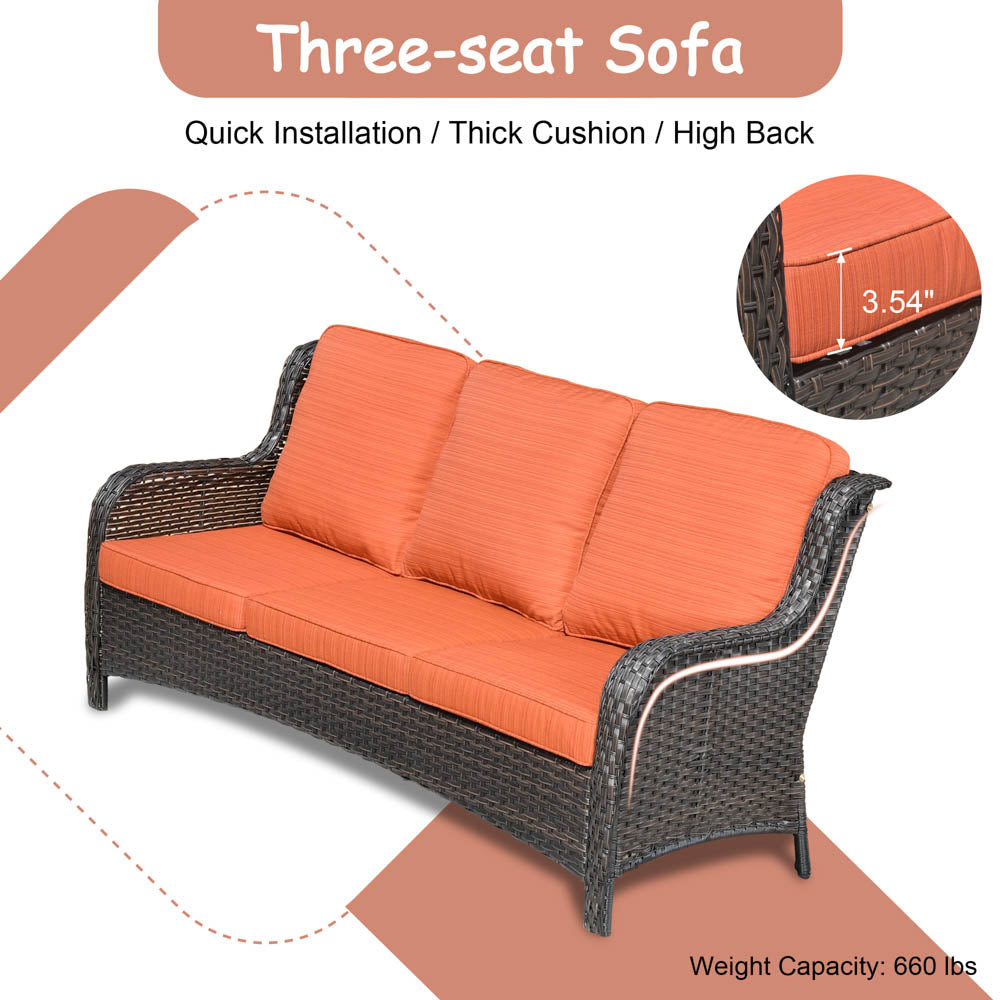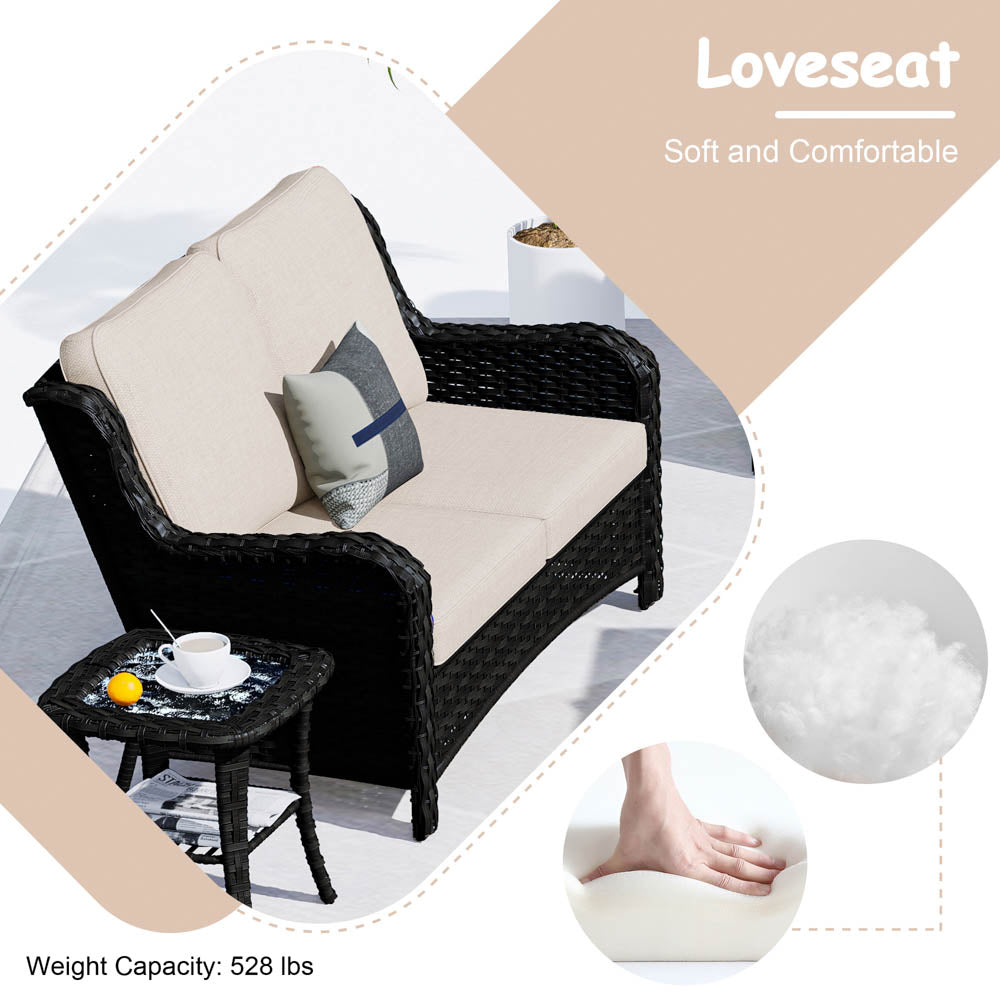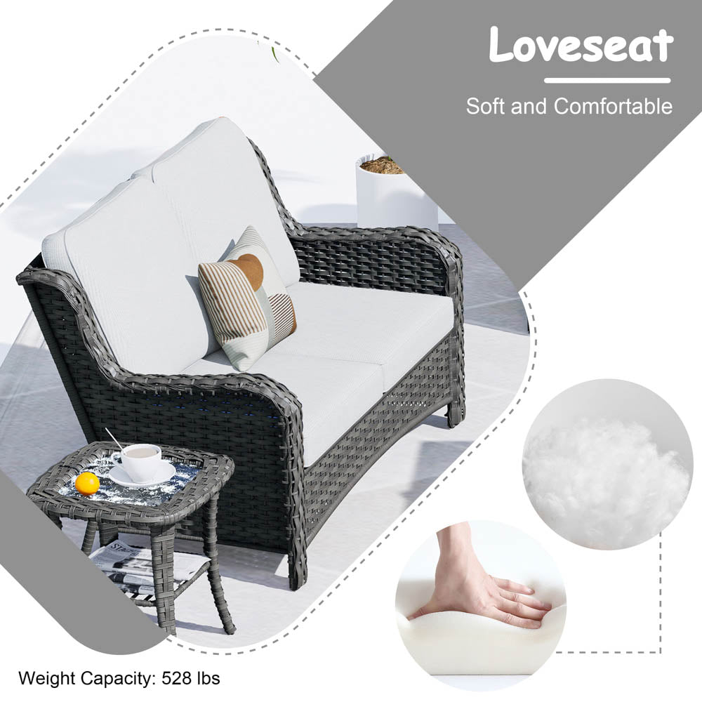 Sturdy & Practical Design:Cozy yet modern experience with spacious armrests and deep seats. Long-lasting wicker guarantees durability, erasing worries of wear over time.