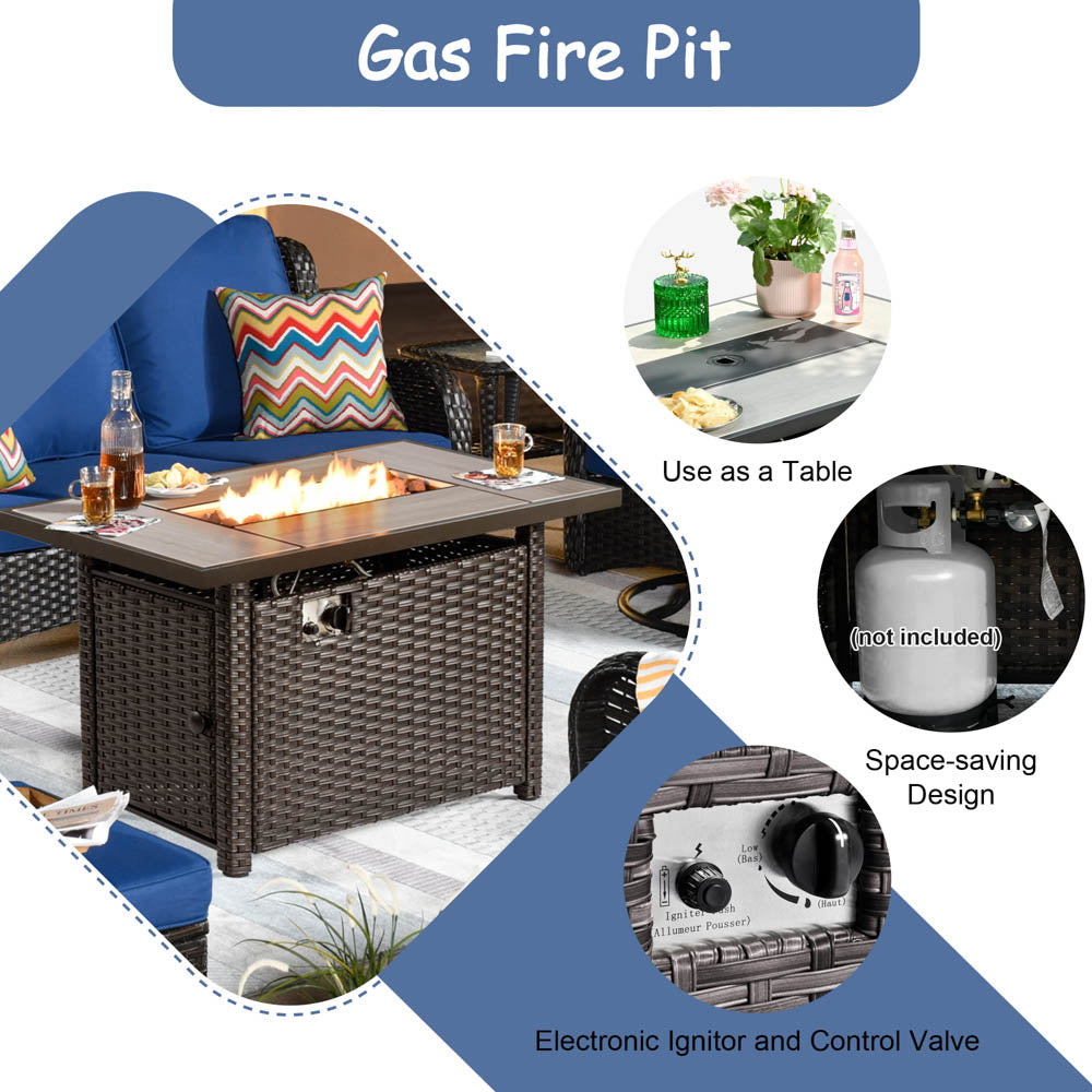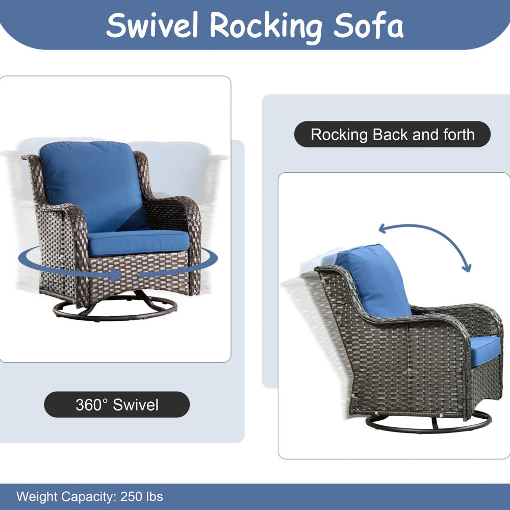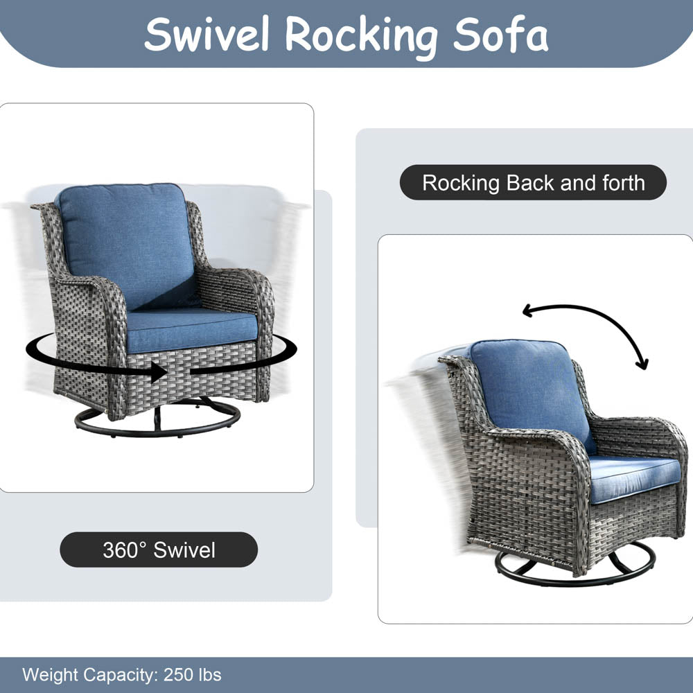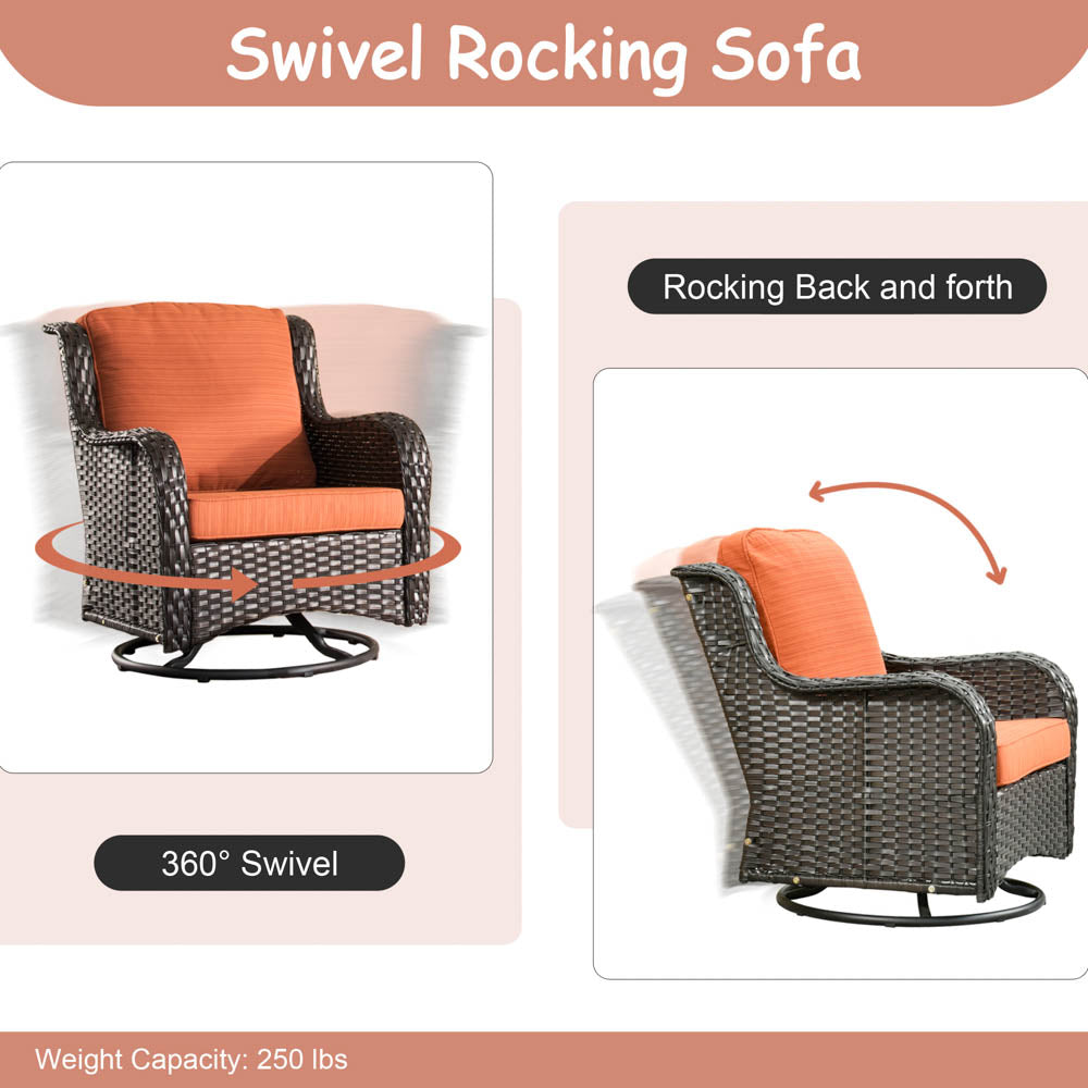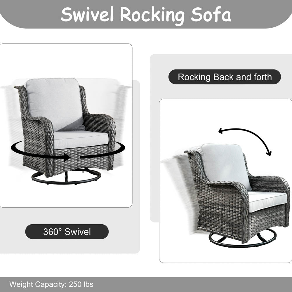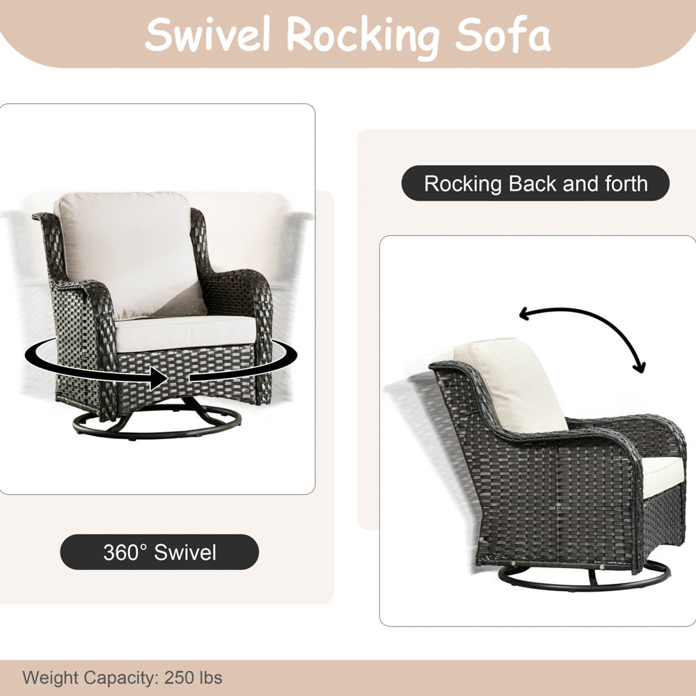 OVIOS Patio Kenard 6-Piece Conversation Set with 42'' Rectangle Propane Fire Pit Table and Rocking Chairs