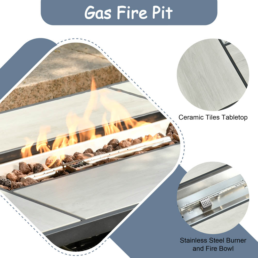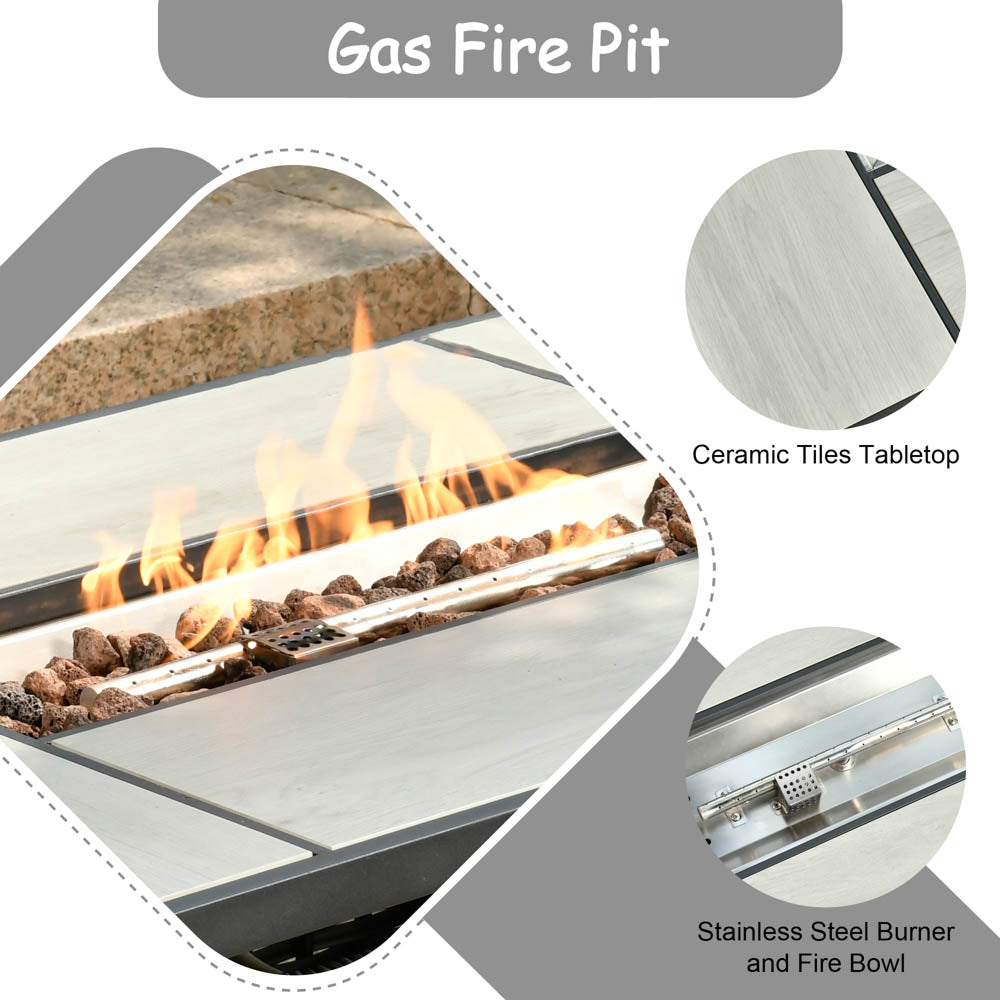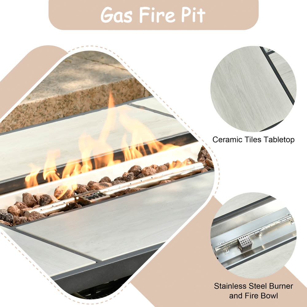 Safety Assurance:Certified at 50,000 BTU, the fire pit table includes a safety valve for worry-free use. Propane-powered, it guarantees stable and eco-friendly burning, freeing you from ash and smoke concerns.