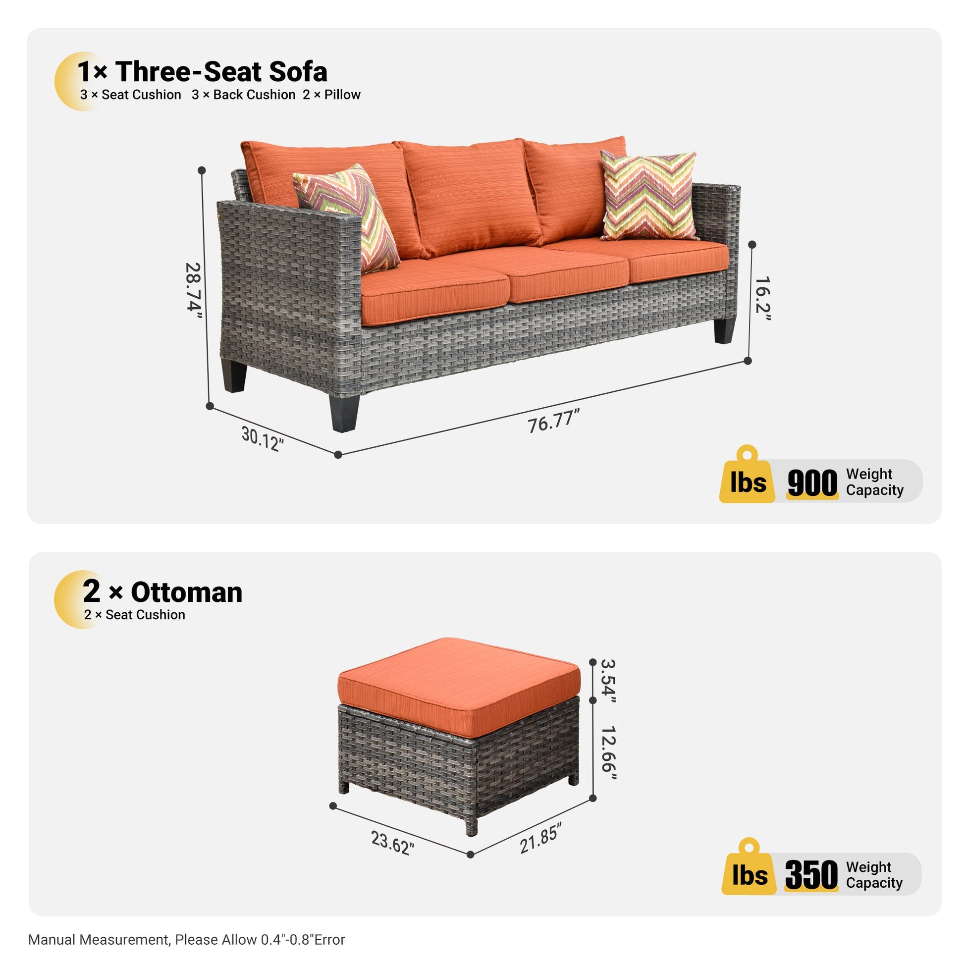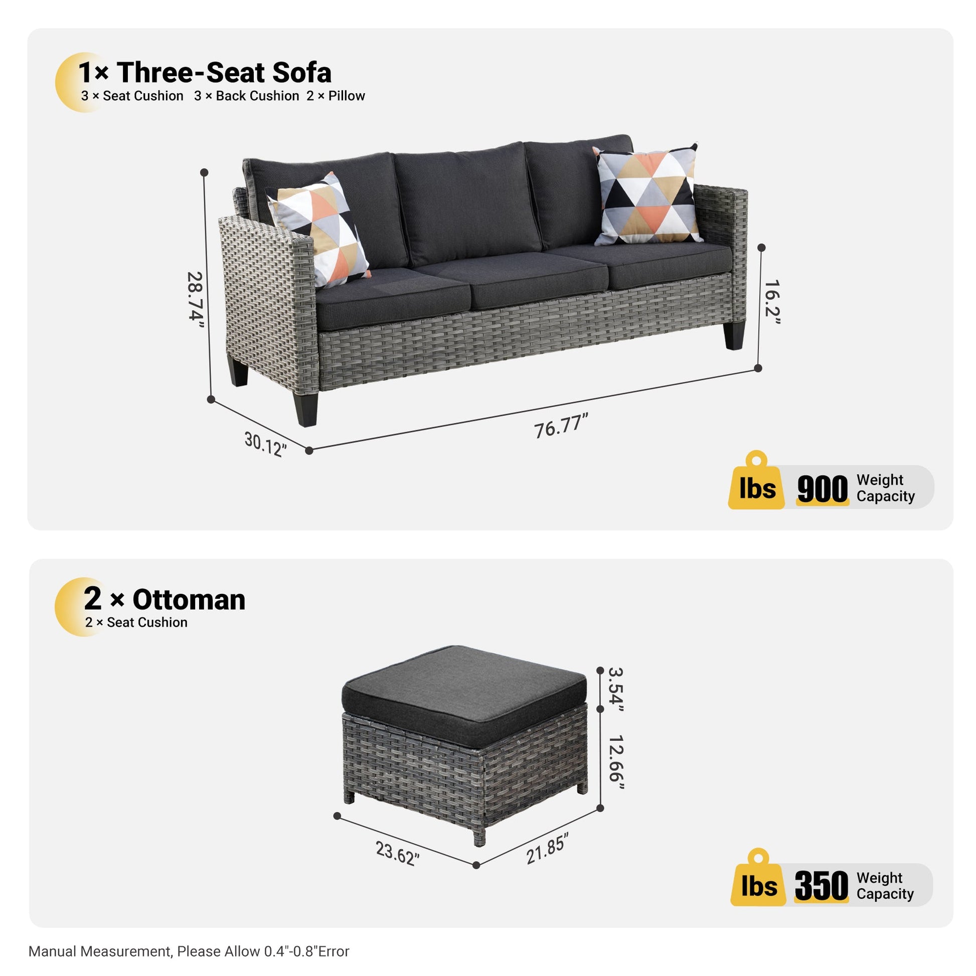 Items Included | 3 PCS include: Sofa*1,Ottoman*2 |