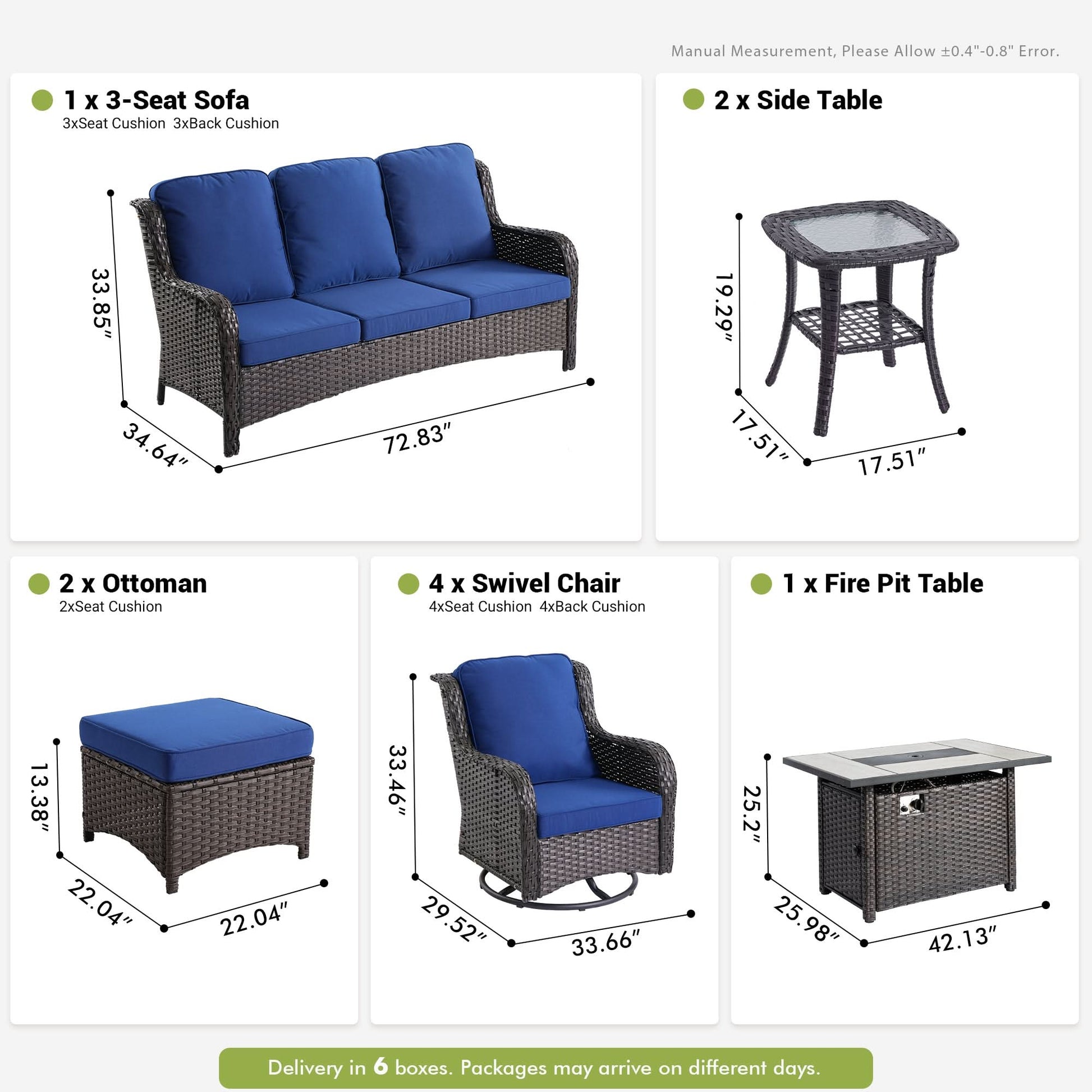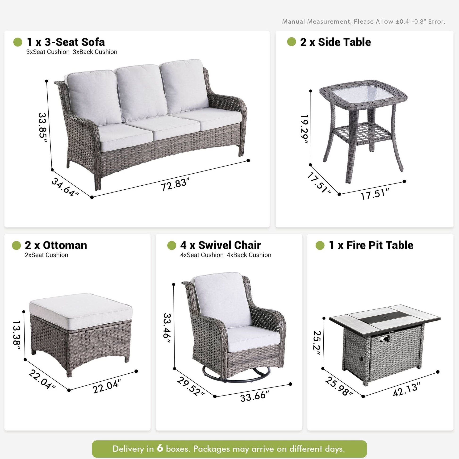 Patio Furniture Set:Outdoor sofa set is suitable for a variety of scenarios: garden, balcony, deck, porch, poolside, yard, corridors, sun rooms etc. Contemporary design will never go out of style and is a perfect match for most outdoor venues. The ottomans can also be used as a coffee table and side table for outside