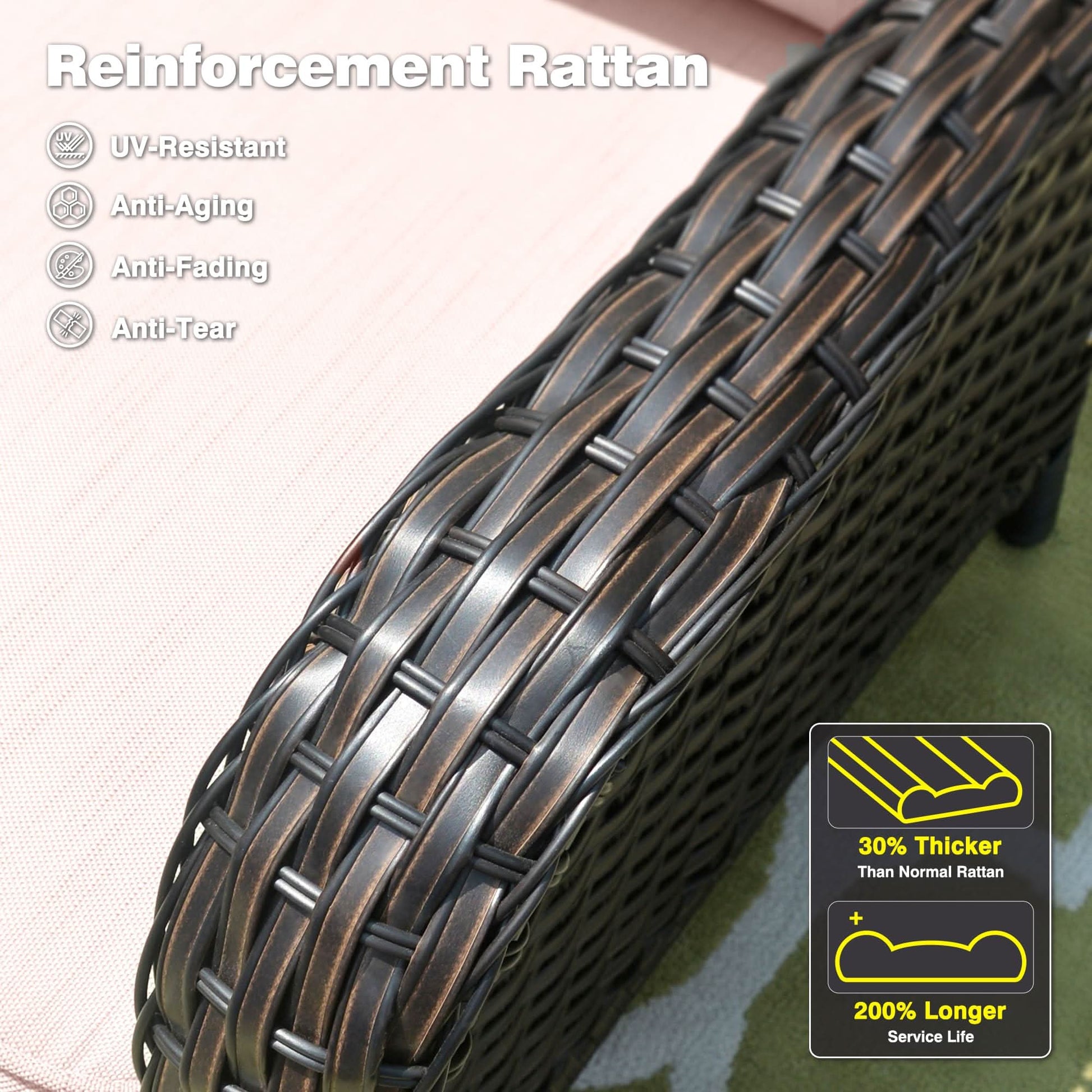 Premium Wicker Rattan:Made of high-quality, weather-resistant PE rattan, and designed with a classic natural rattan look, all-weather sofa made of sturdy rust-resistant steel construction, providing strong support and balance for the patio seats