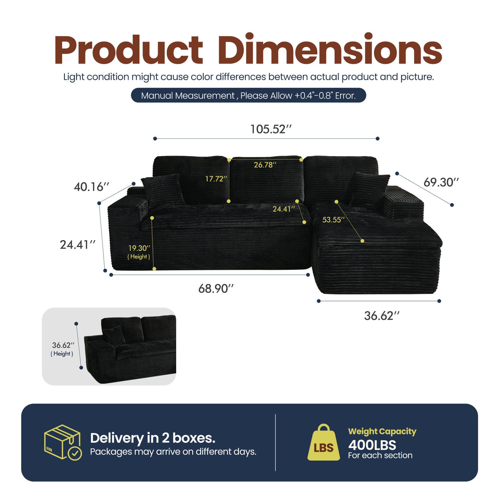 OVIOS 105" Modular L-Shape Sectional Sofa with Chaise, Deep Seat Cloud Couch