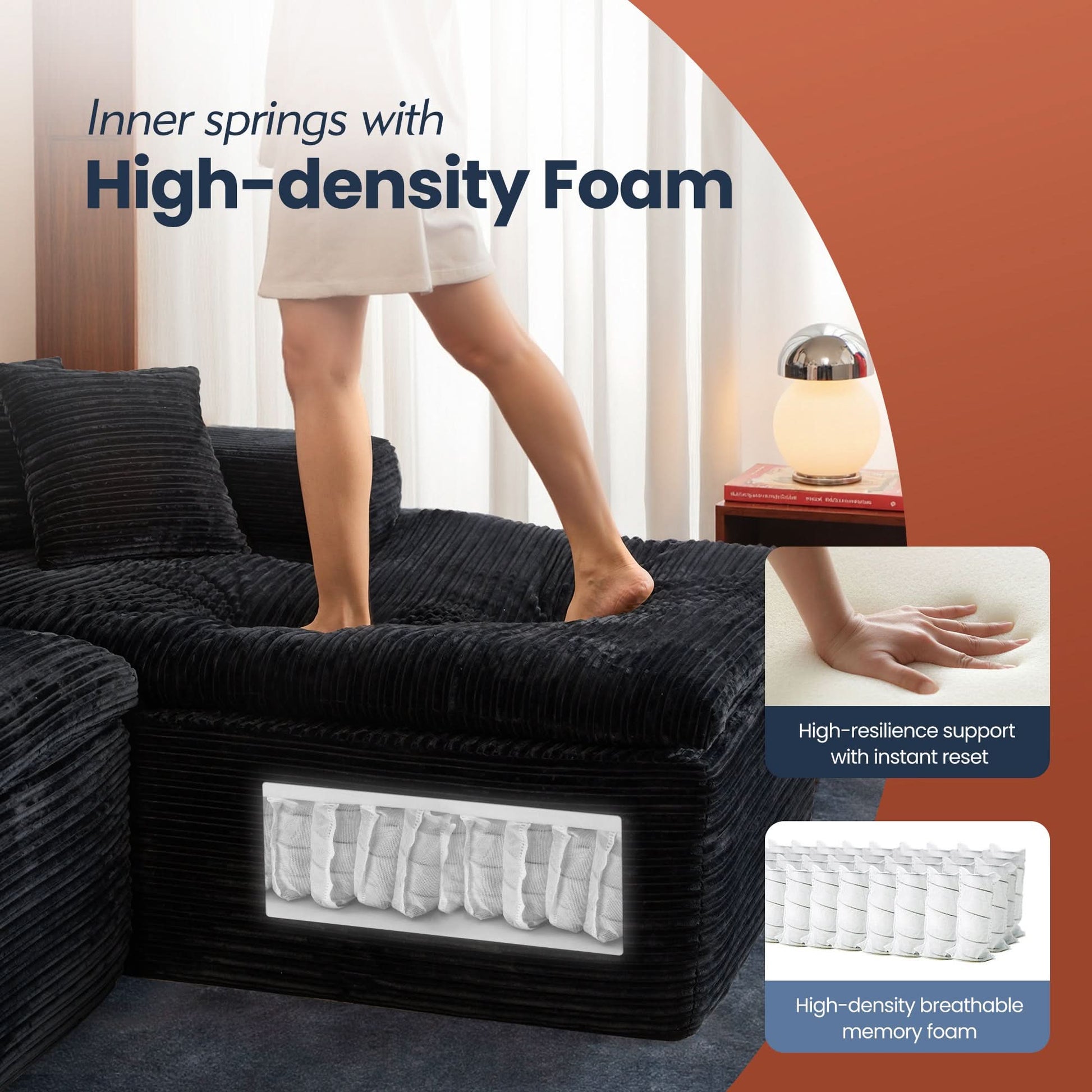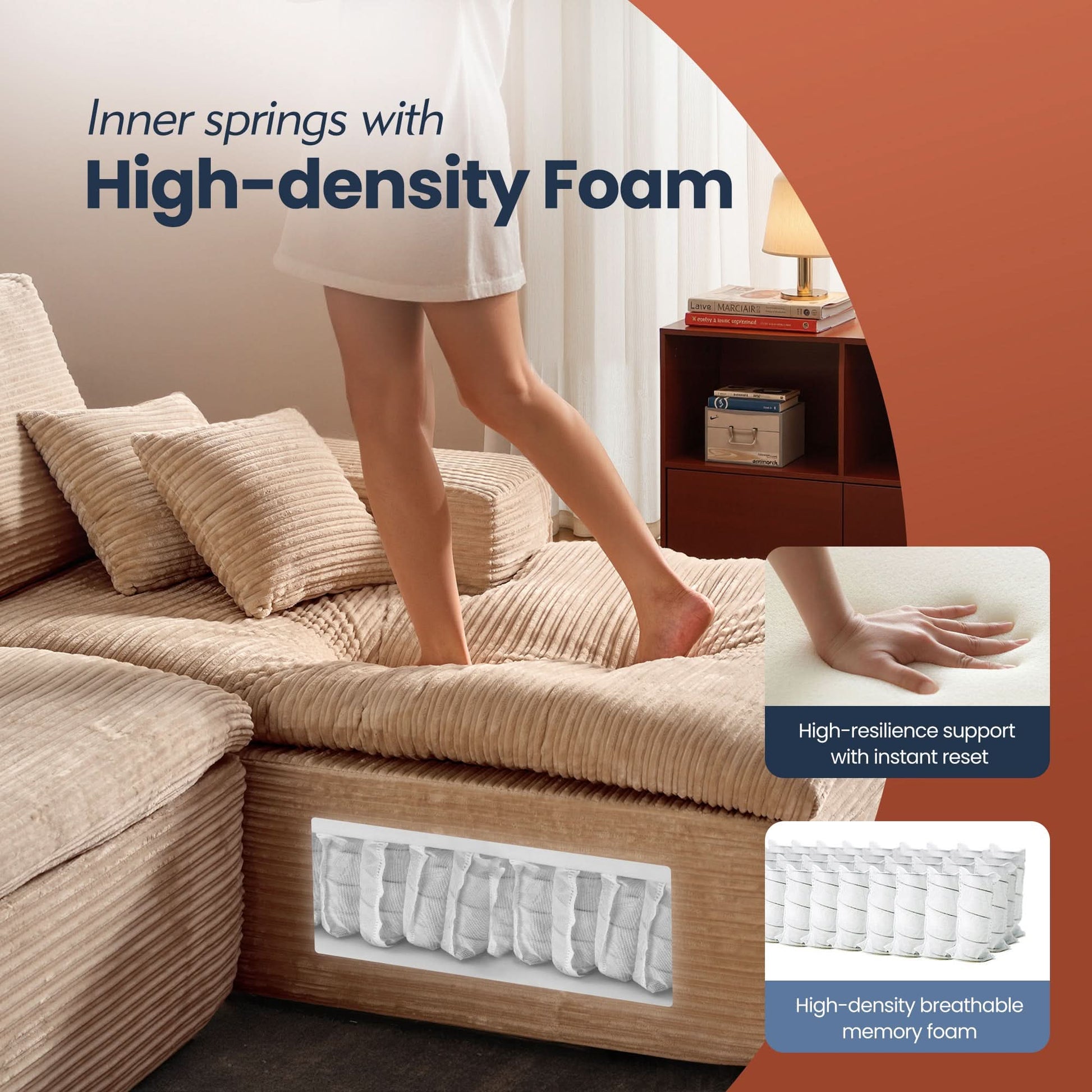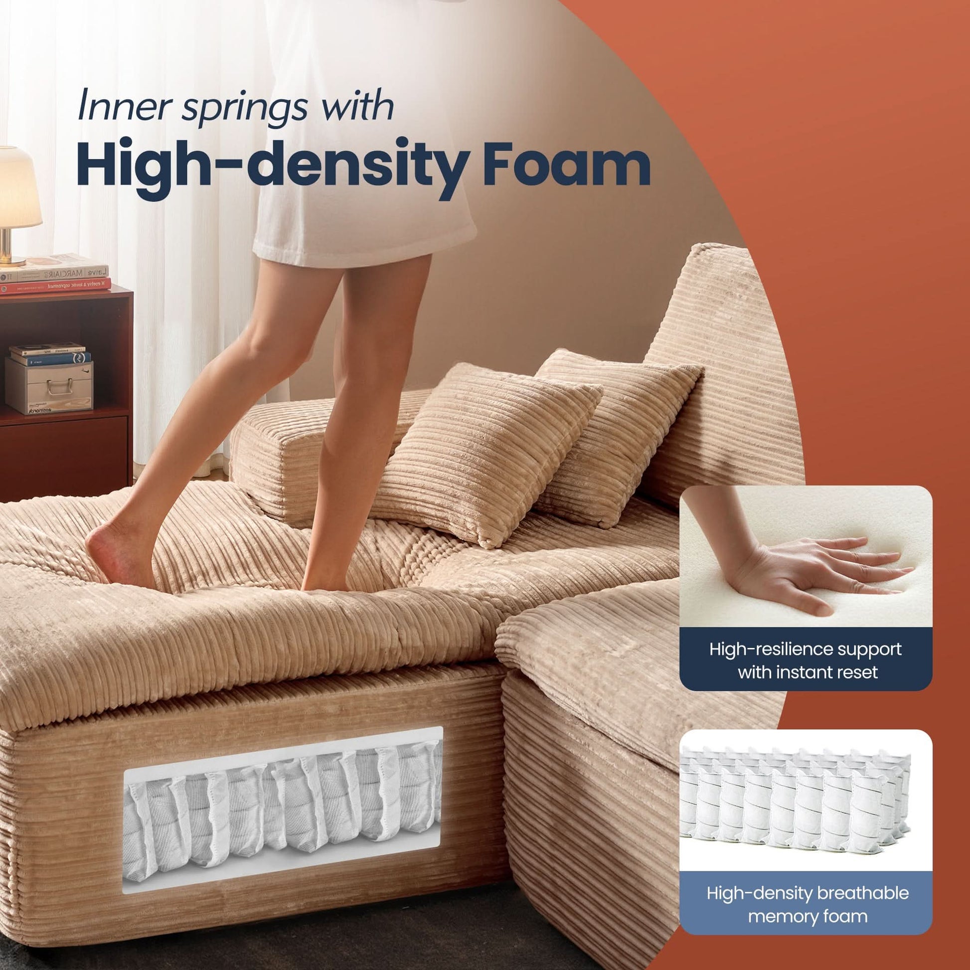 No Assembly Required:With our modular cloud chaise, assembly is a breeze—just unbox, fluff each piece, and let it spring back to shape. Full recovery takes about 72 hours. Enjoy the ease of zero setup!