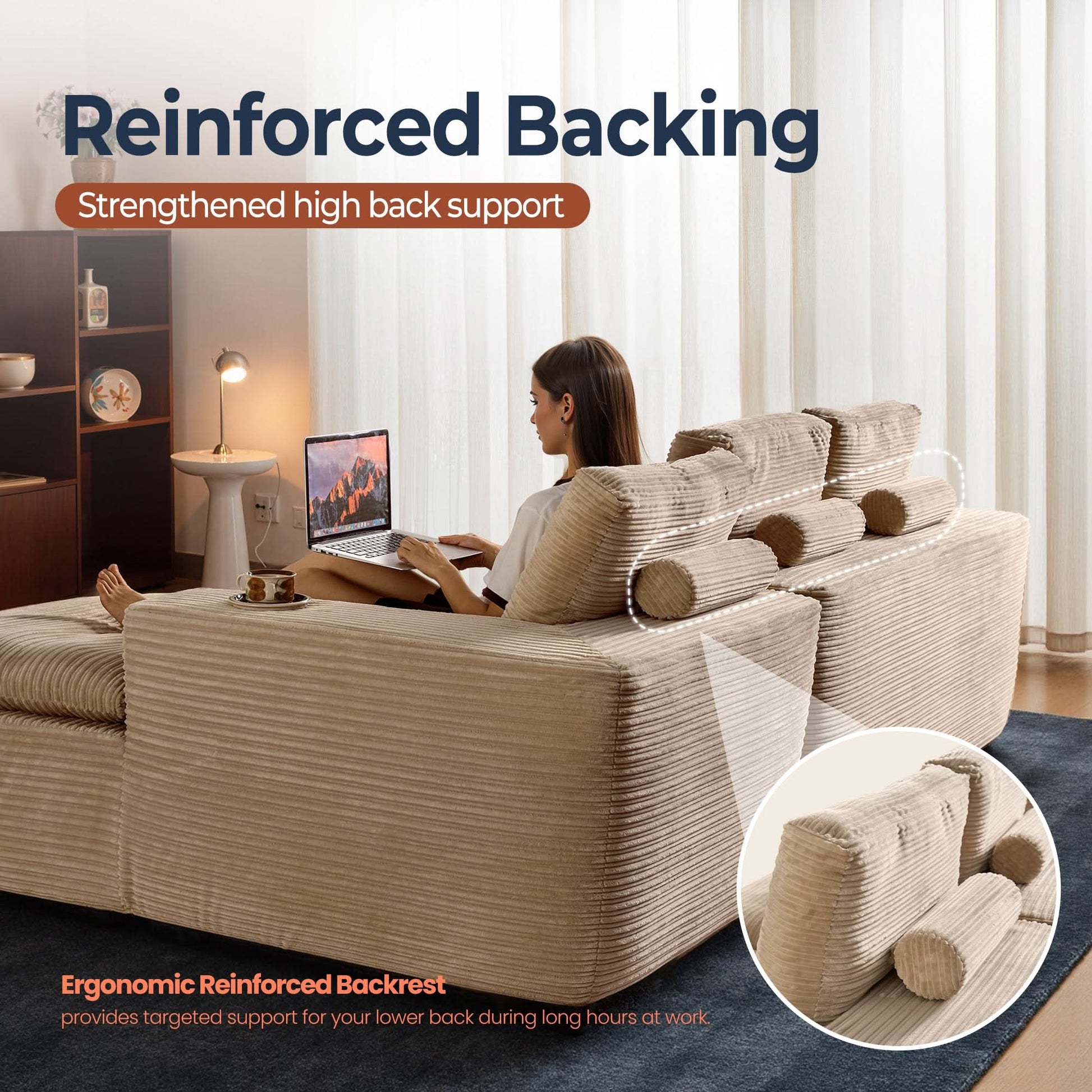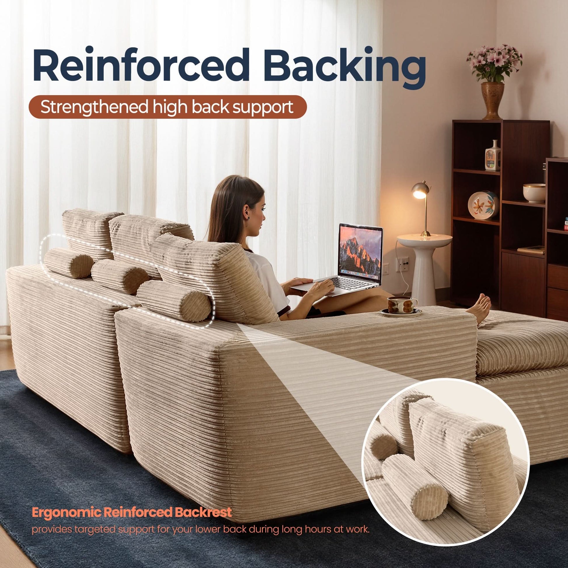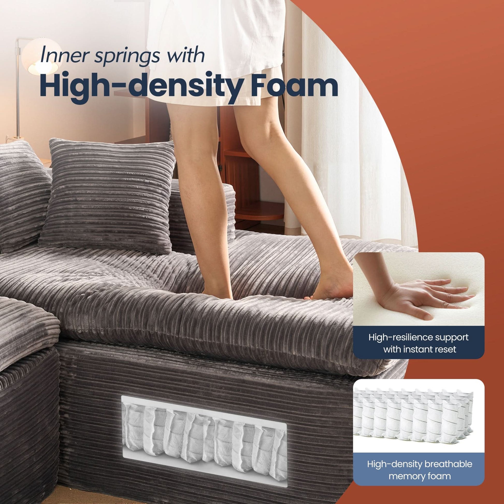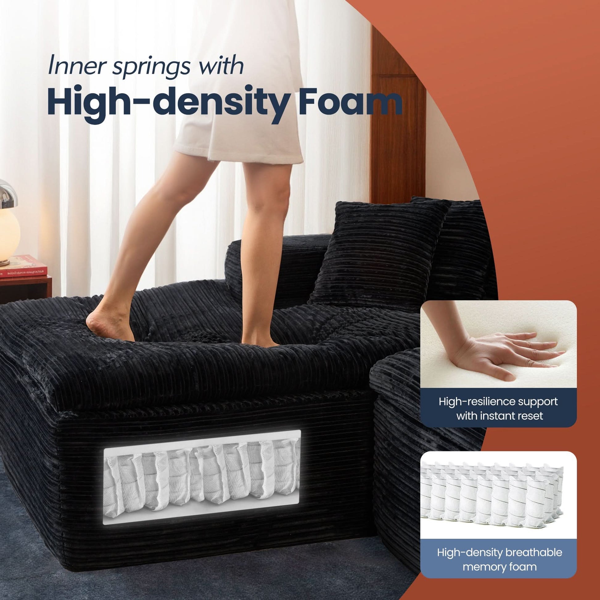 No Assembly Required:With our modular cloud chaise, assembly is a breeze—just unbox, fluff each piece, and let it spring back to shape. Full recovery takes about 72 hours. Enjoy the ease of zero setup!