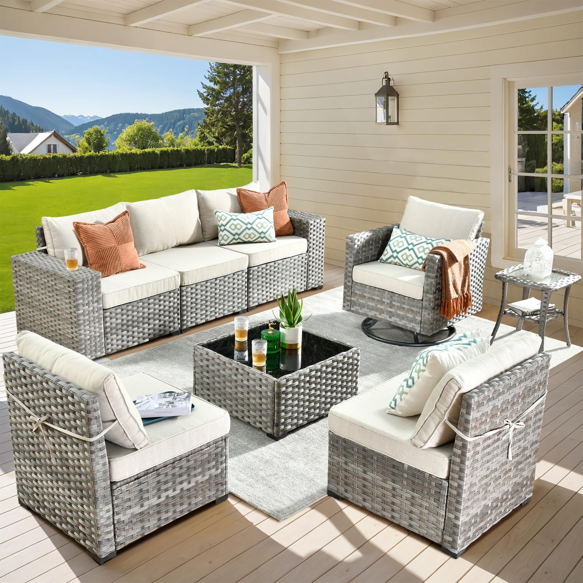 Ovios 8 Pieces Patio Furniture Set, Outdoor Sectional Sofa with Swivel Rocking Chair