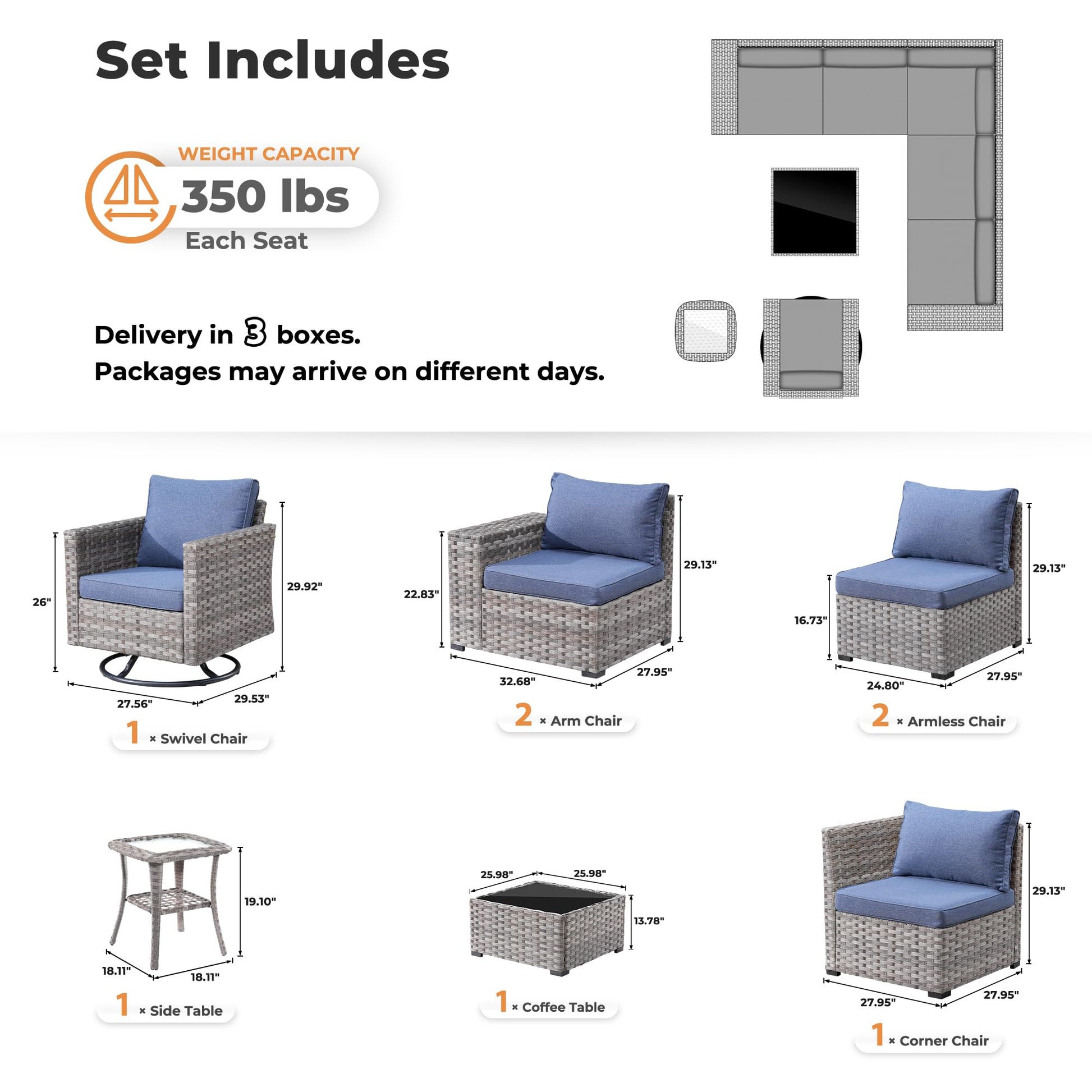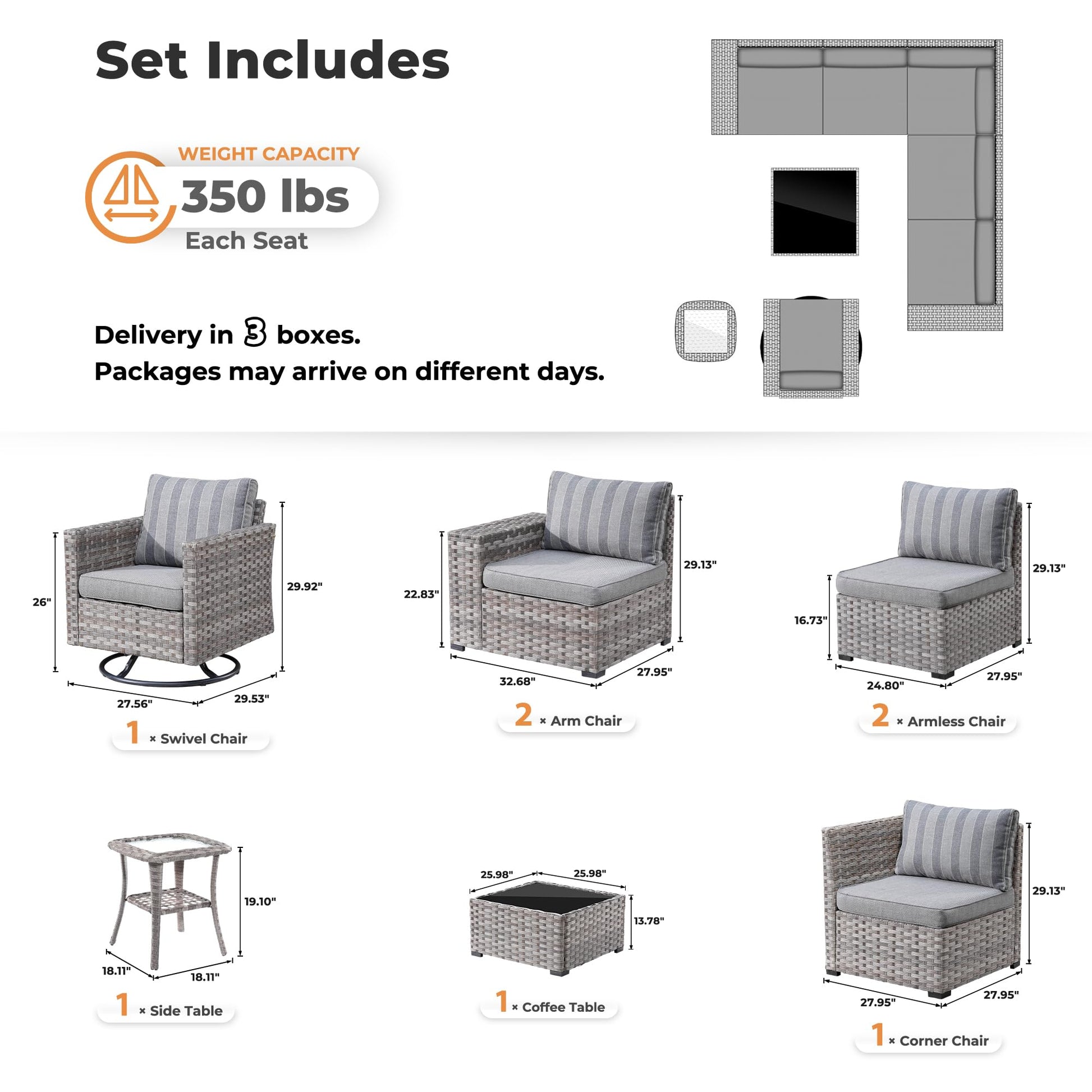 | Corner Sofa | 29.13"H x 27.95"W x 27.95"D |