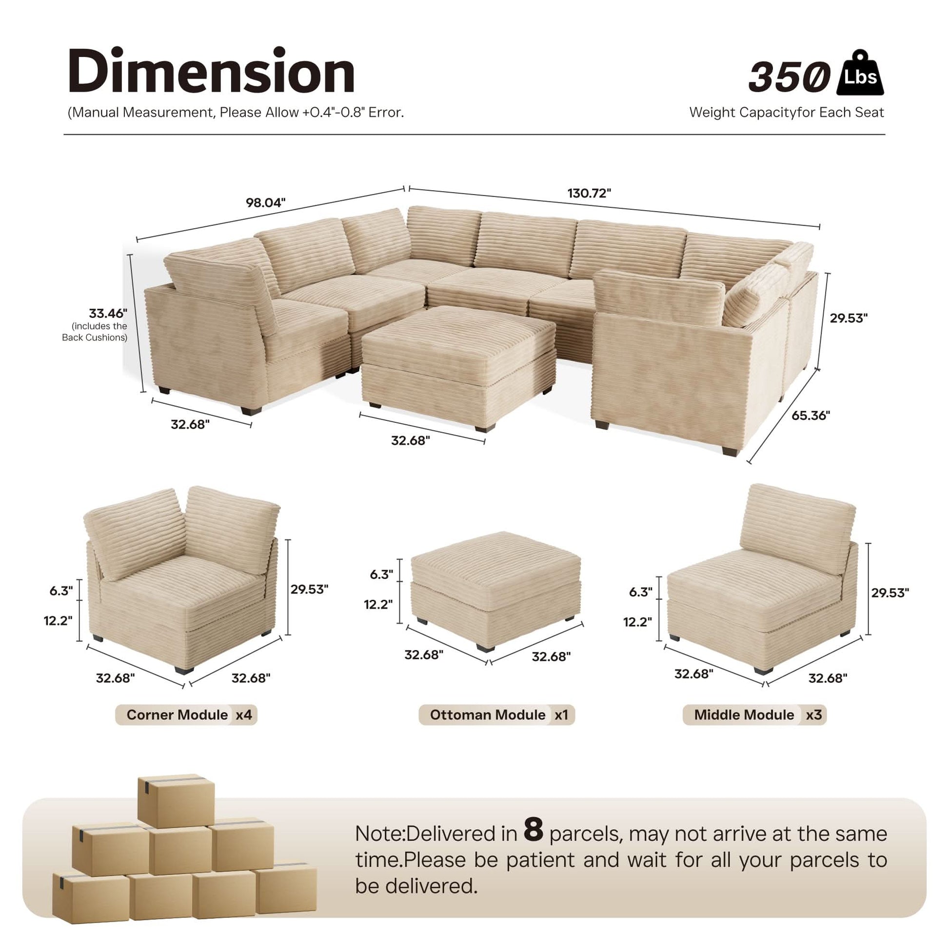 OVIOS 130.7" Modular Sectional Sofa Couch, U-Shaped Minimalist Couches with Sofa Bed Chaise