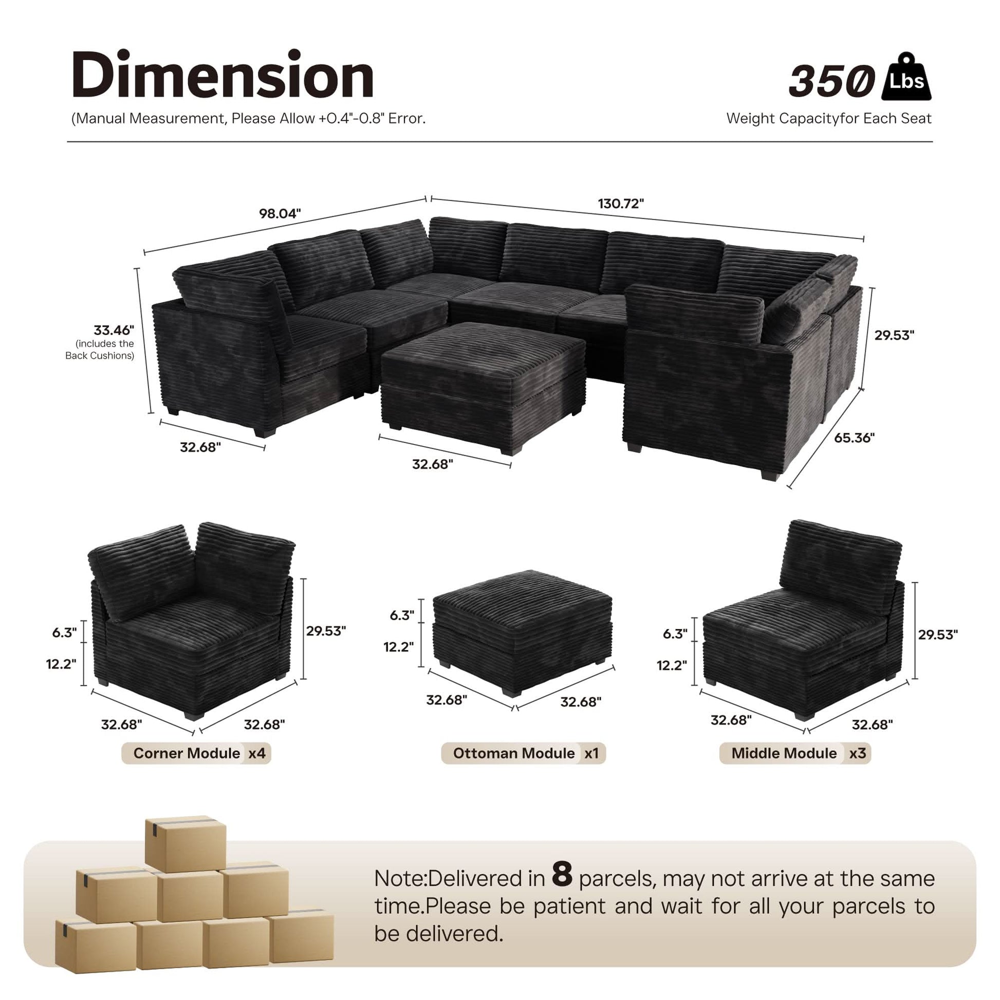 Versatile Modular Sofa Couch: Modular sectional sofa couch allow different households to move and reassemble freely for flexible combination, customized DIY combination transforming into an L-shaped, U-shaped V-shaped or sofa bed that suits your space and style. The more seat modular you add, the greater opportunity that you get to enrich and shape your life space, perfect for movie night, parties or home theaters