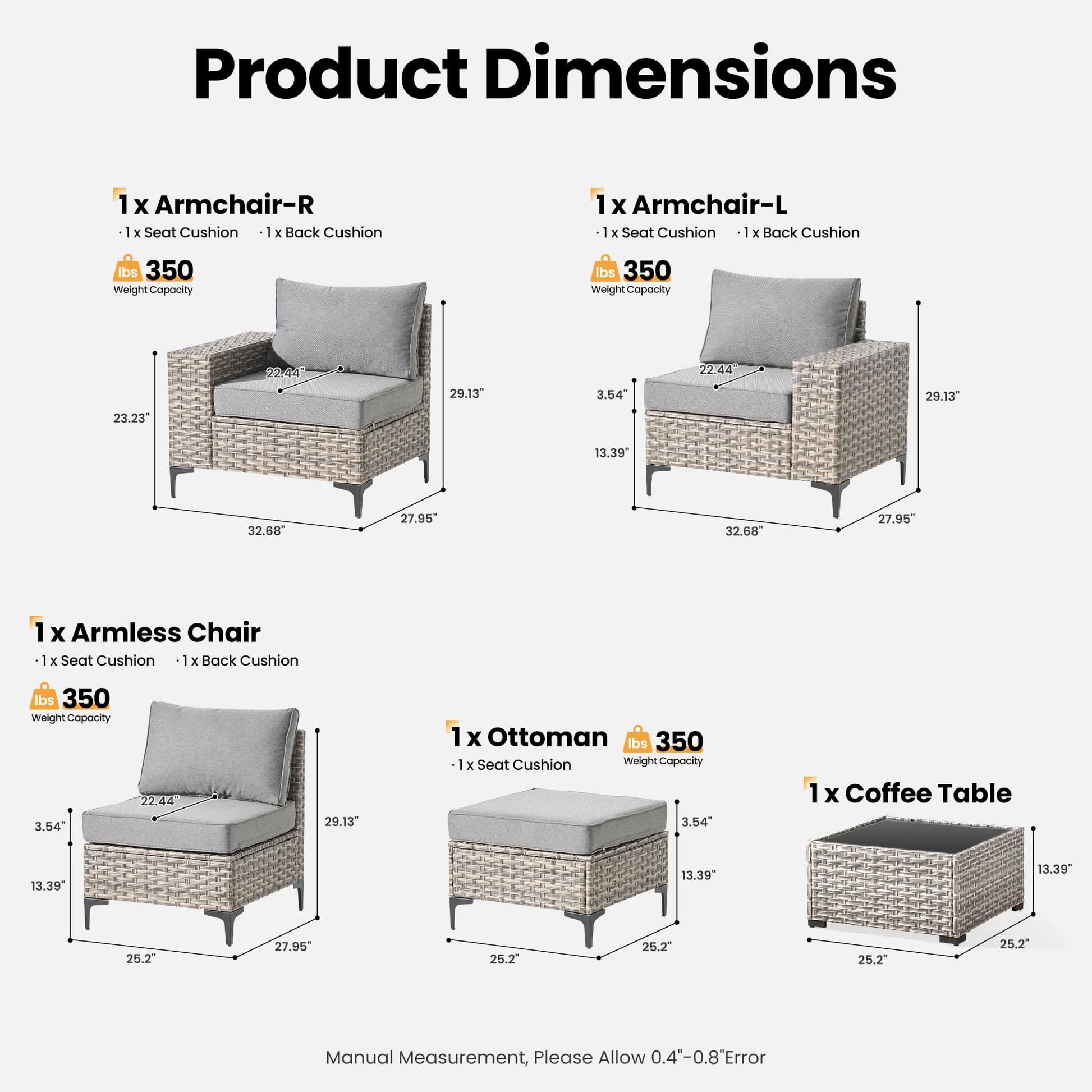 OVIOS 5 Pieces Patio Furniture Set Outdoor Sectional Sofa Couch with Comfy Cushions Deep Seat