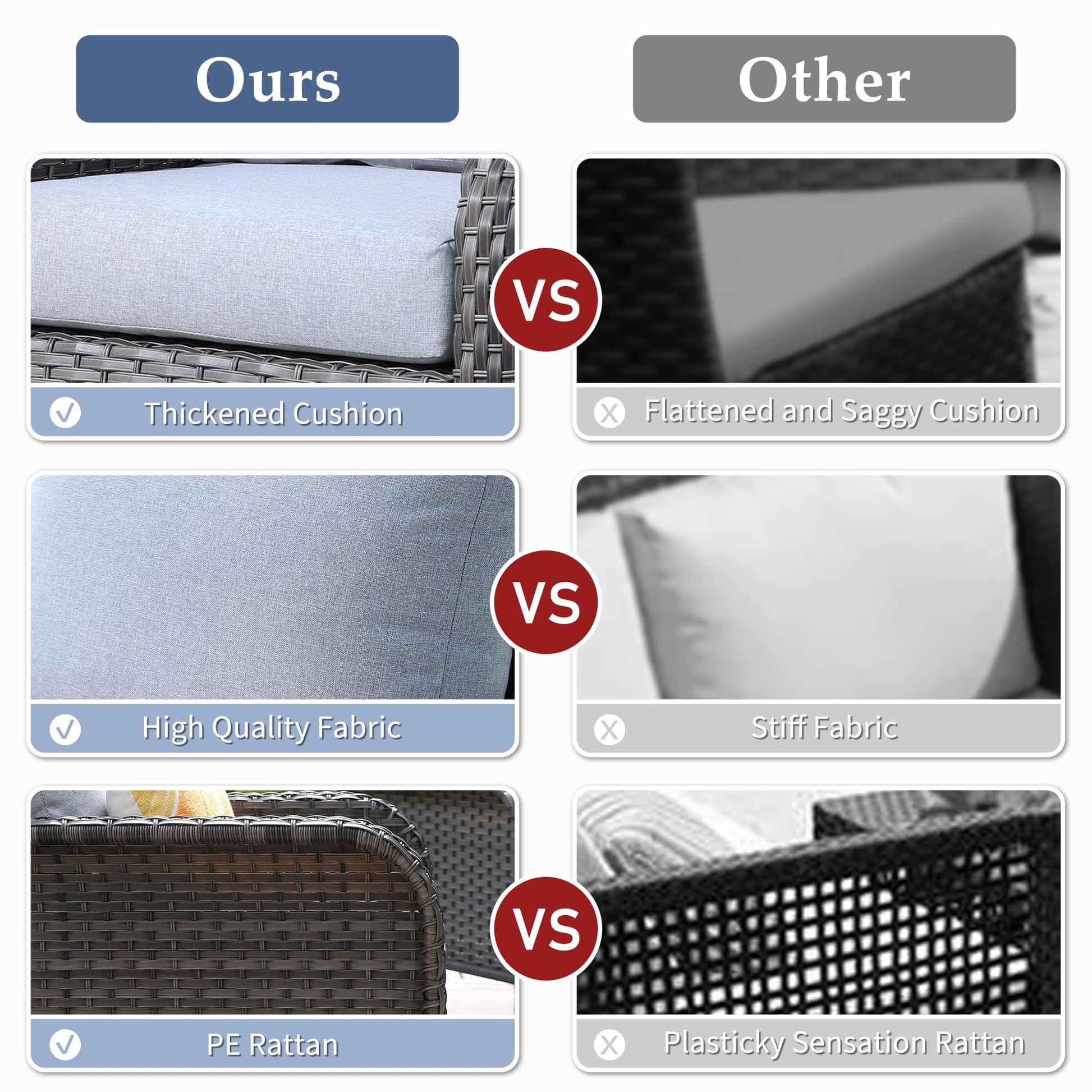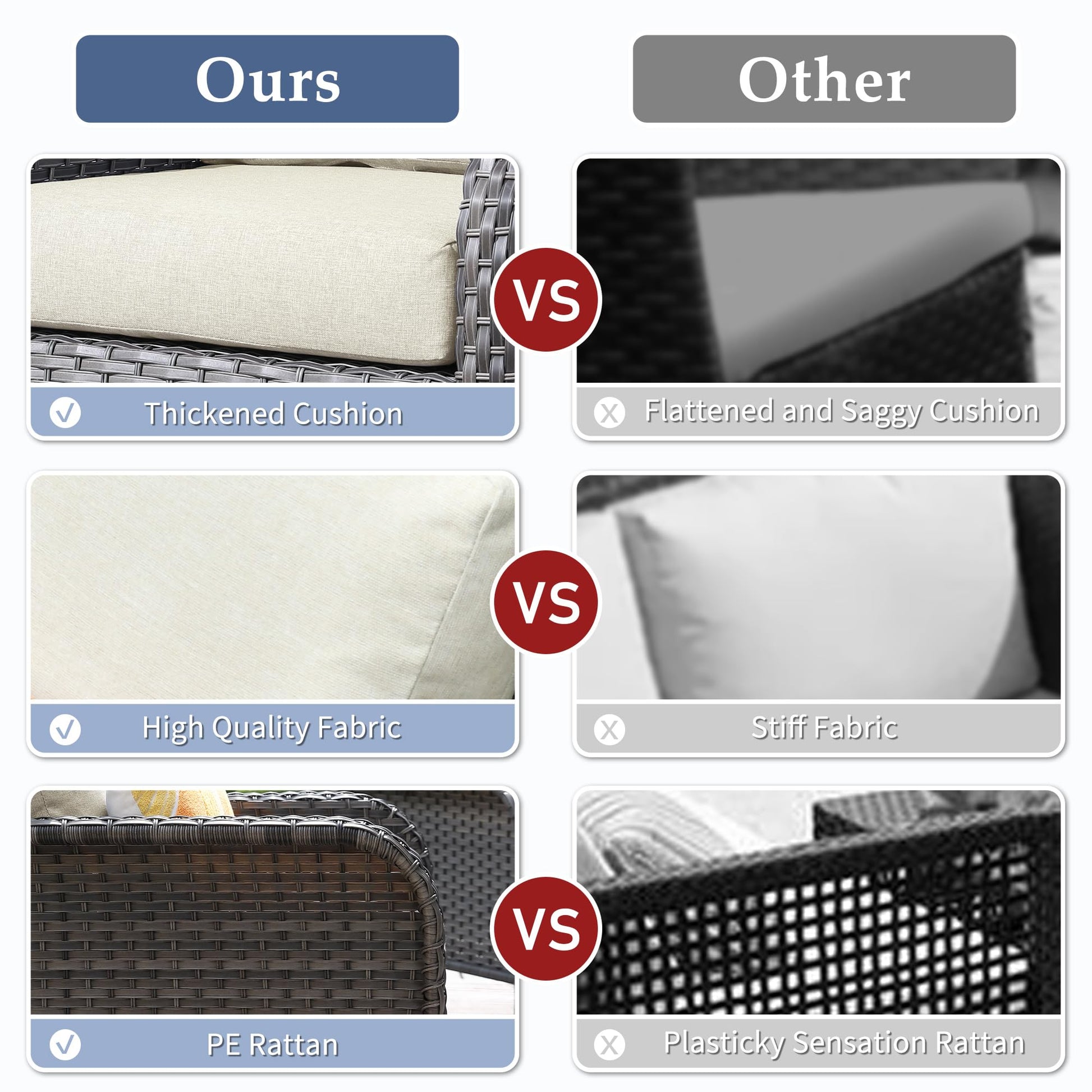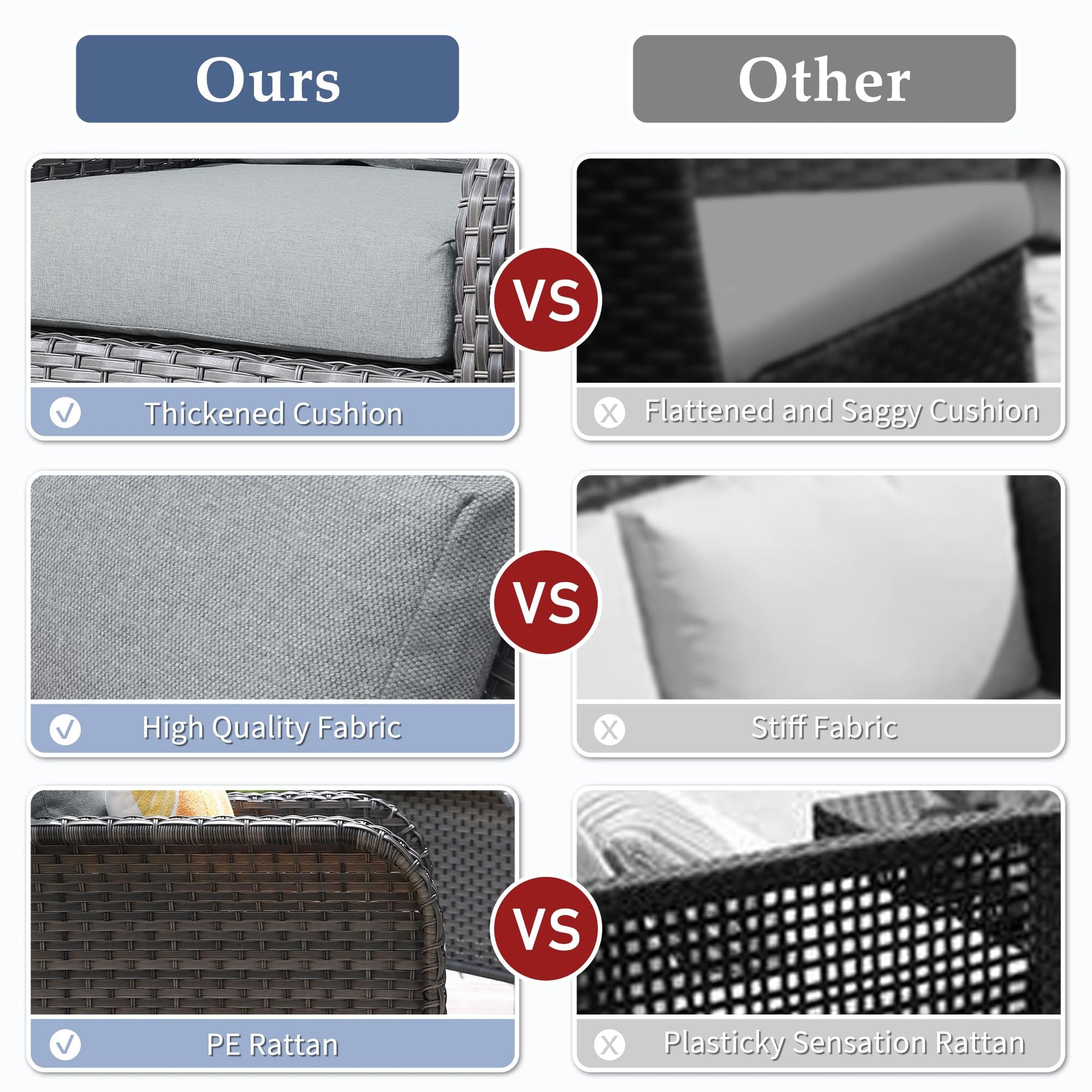 Easy Assembly & Warranty: Our patio set is easy to assemble with all the necessary hardware and tools included. Plus, we offer a manufacturer warranty for 365 days from the date of purchase and friendly customer service. If you have any questions or concerns, don't hesitate to reach out to us!