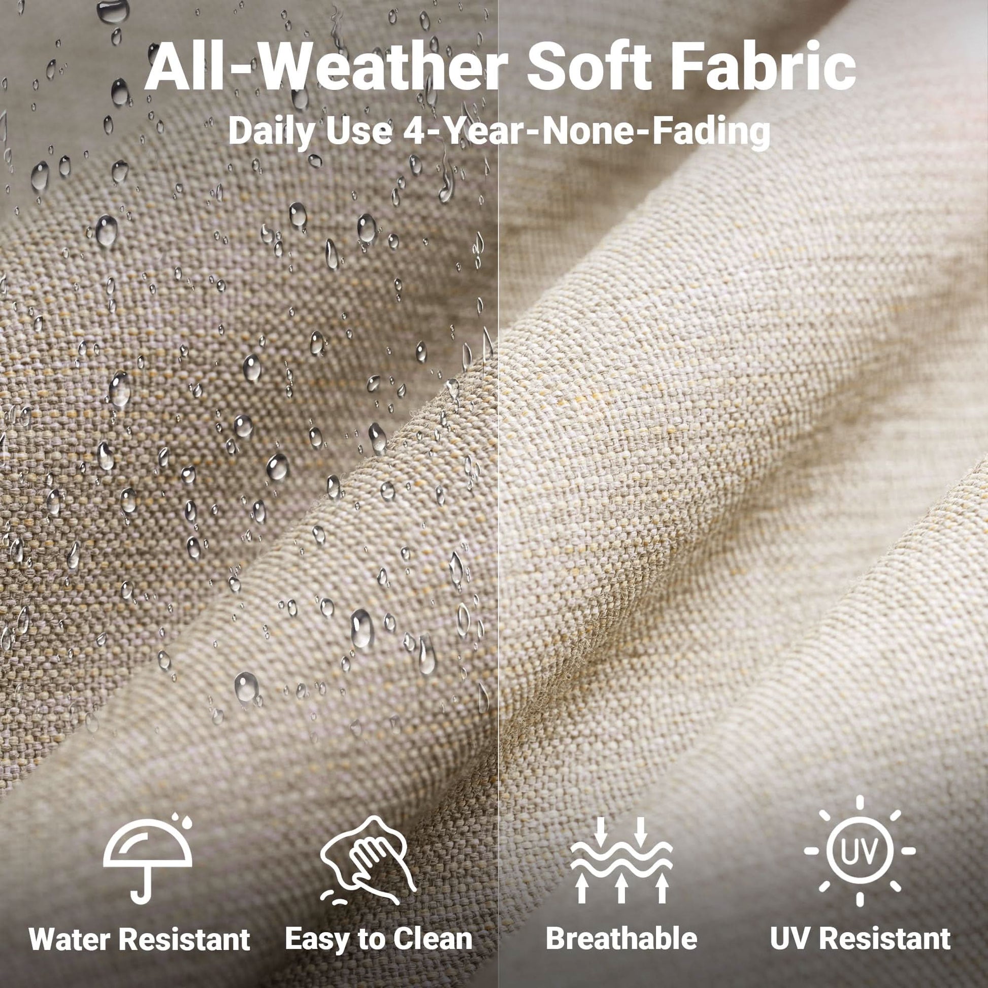Non-Fading Fabric:3-Year-Non-Fading,made with high-density foam that is soft and supportive, and covered with a breathable fabric that is easy to clean and maintain. The cushion covers are also water resistance, stain-resistant, ensuring they remain in excellent condition in all weather conditions