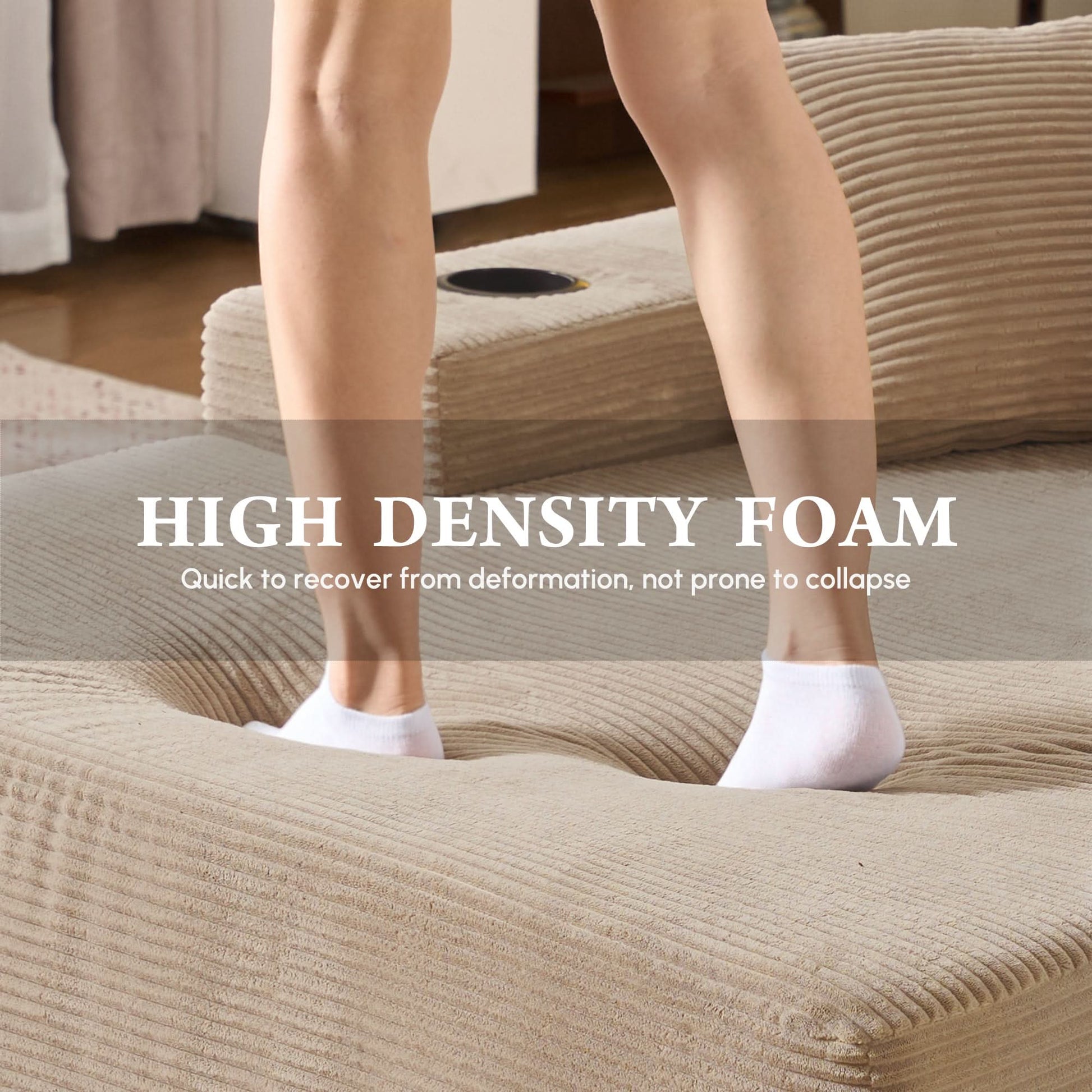 OVIOS 67" Oversized Chaise Lounge ,Corduroy Sleeper Sofa with Cup Holders