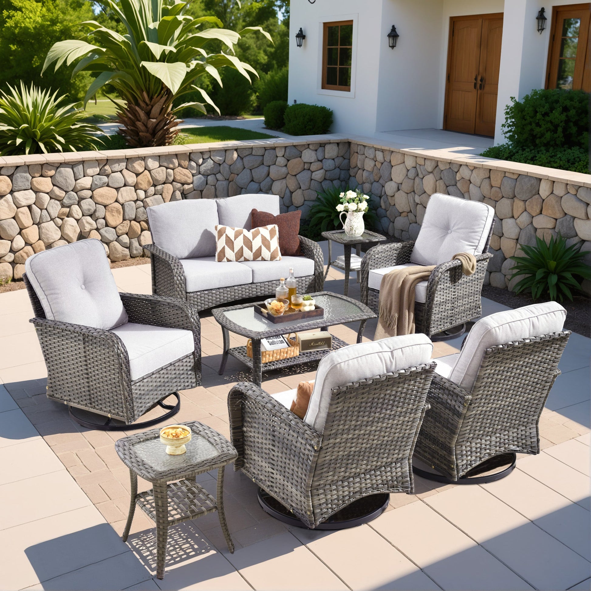 OVIOS 8 Pieces Patio Furniture Set, Outdoor Wicker Sofa with Swivel Chairs