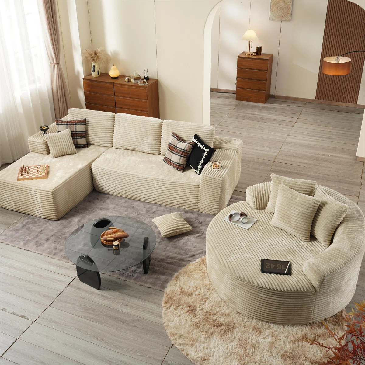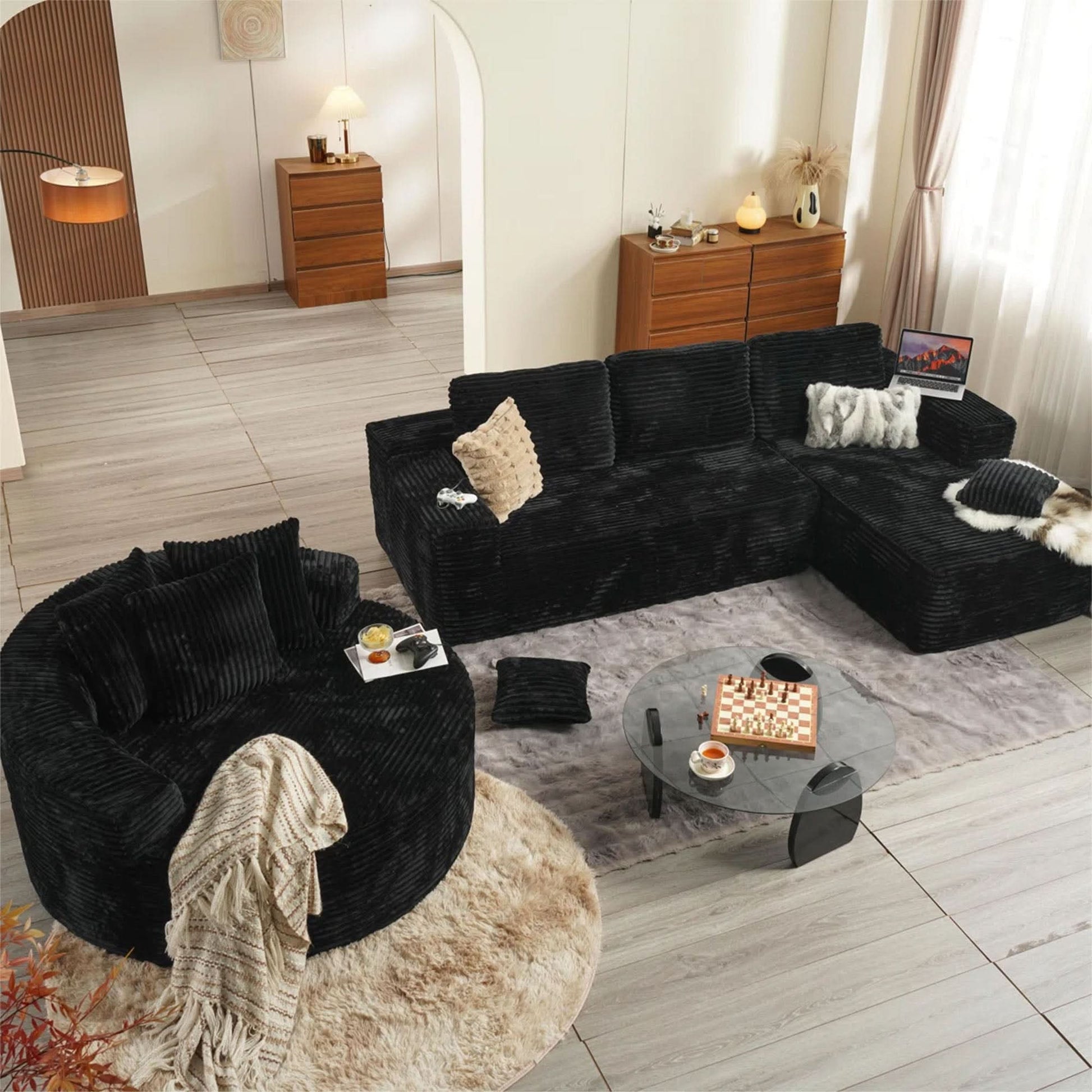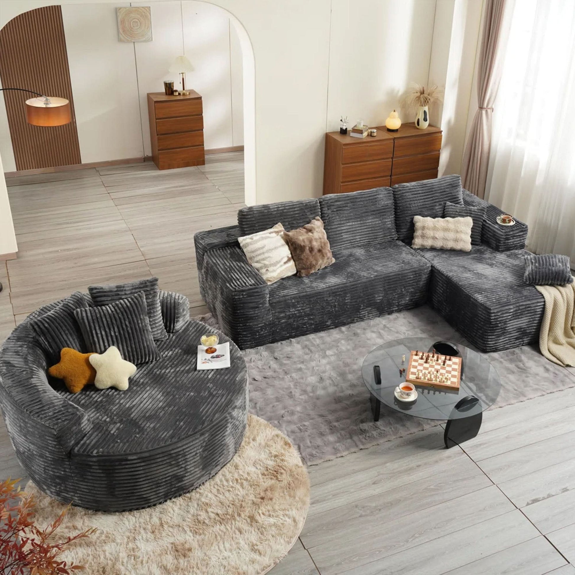 Plush Corduroy Fabric:Wrapped in soft-touch Plush Corduroy Fabric, this sofa brings a cozy, inviting texture to your living space. The material is not just comfortable—it’s also stain-resistant and durable, making it a smart choice for families, pet owners, or anyone who actually uses their furniture every day.