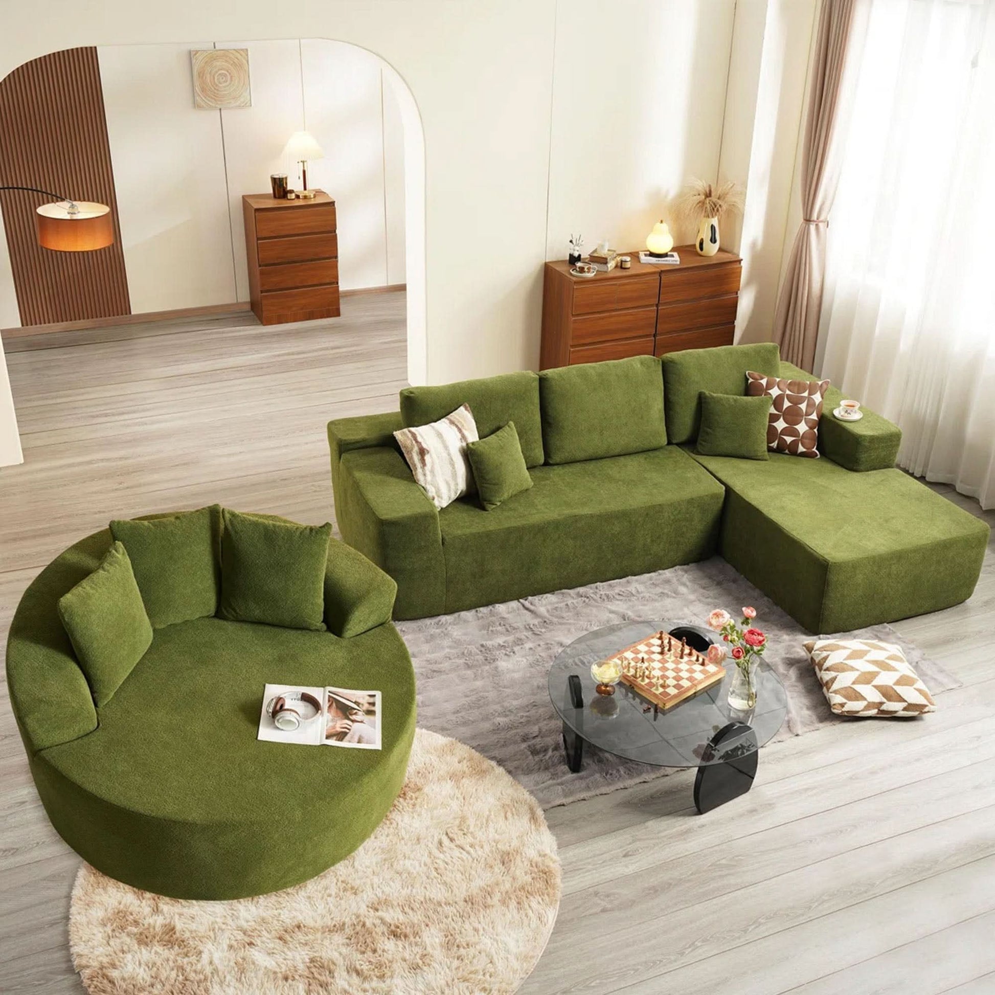 Modular Sectional Sofa:Our modular sectional sofa is built for real-life living.You can configuration to suit your room layout.It offers plenty of flexibility for everyday comfort, whether you're furnishing a cozy apartment or a modern open-plan space.