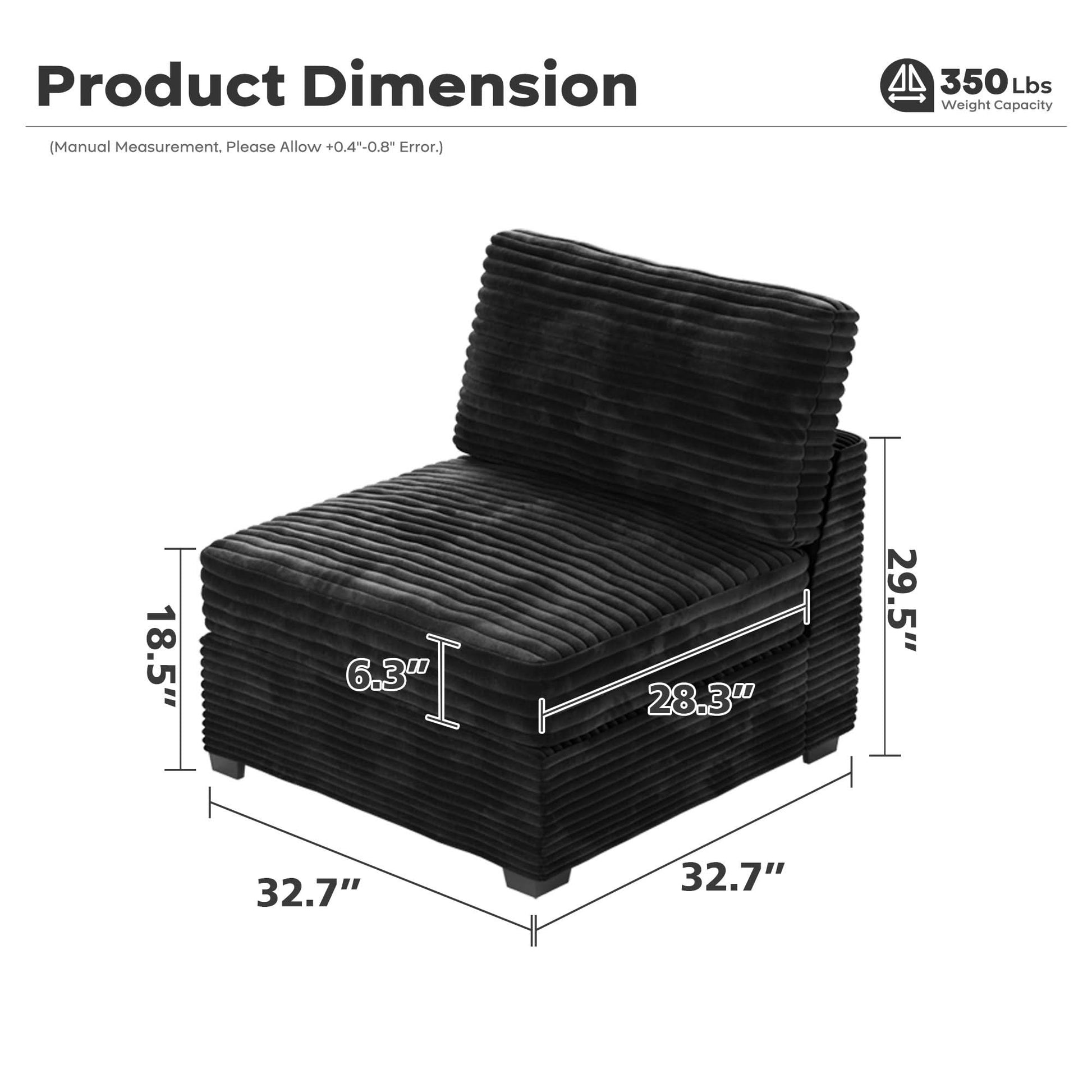 | Armless Chair | 29.53"H x 32.68"W x 32.68"D |