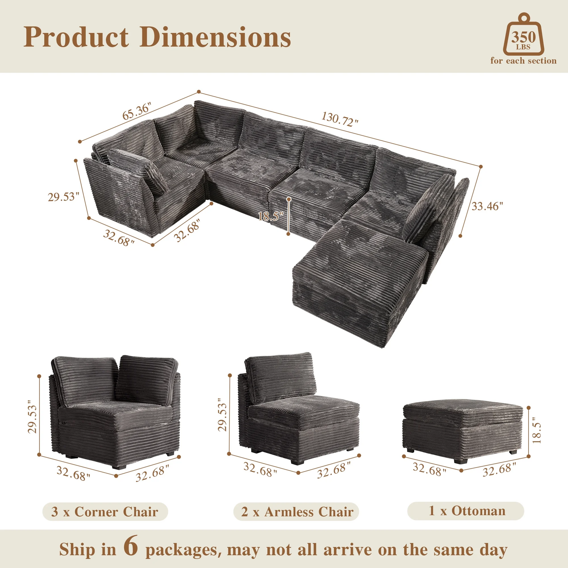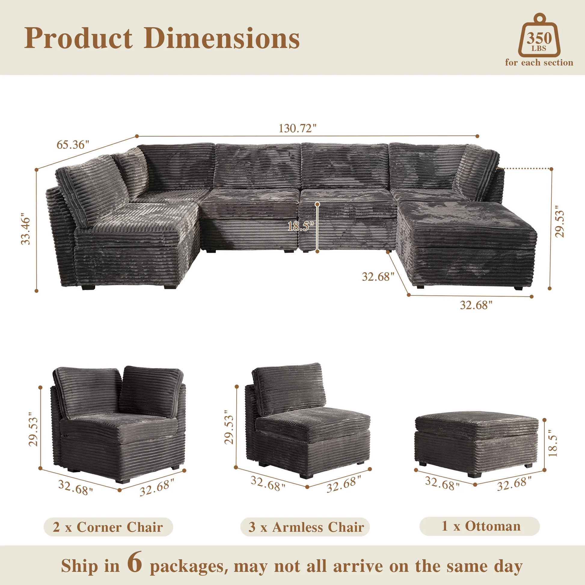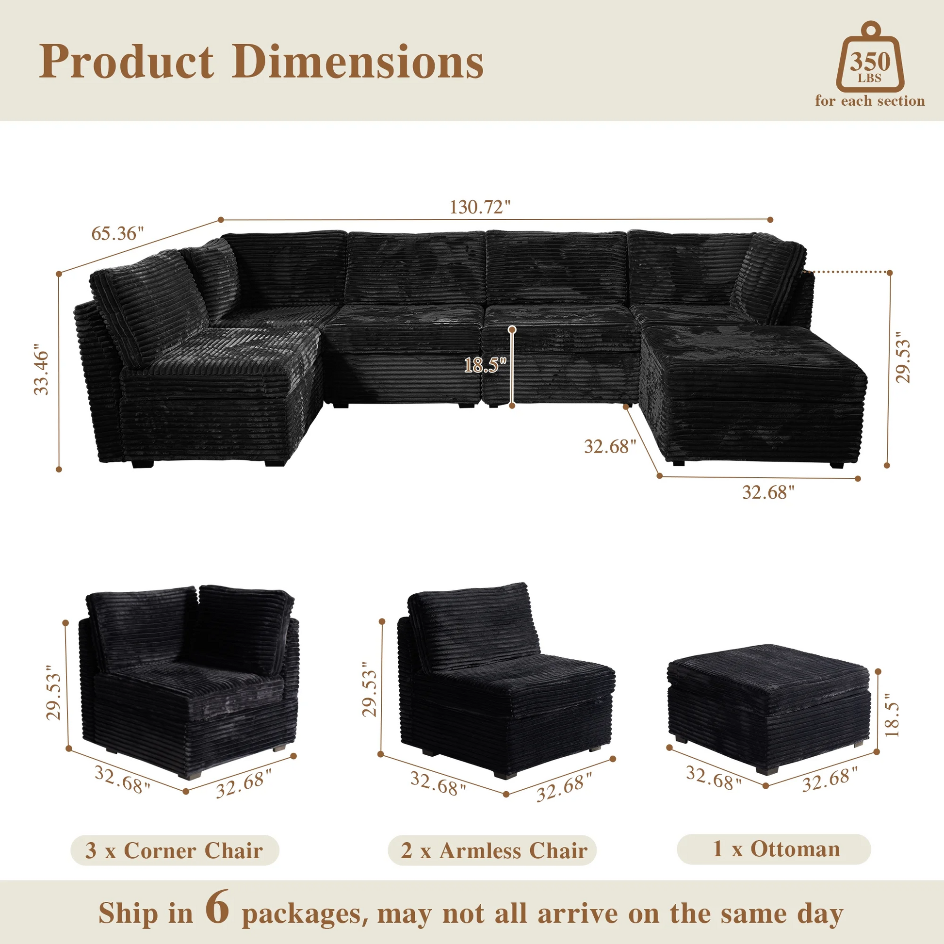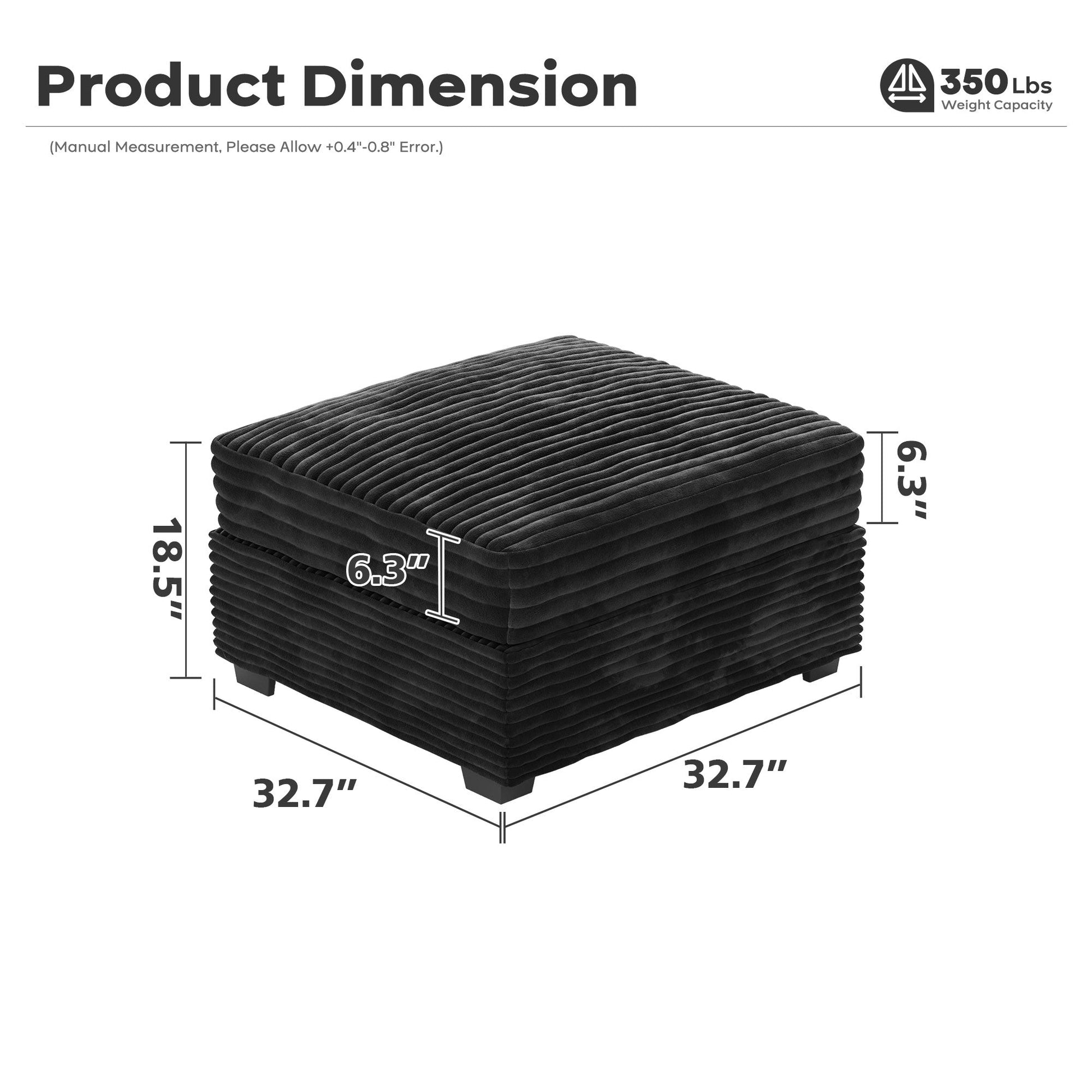 | Ottoman | 18.5"H x 33.32"W x 32.68"D |