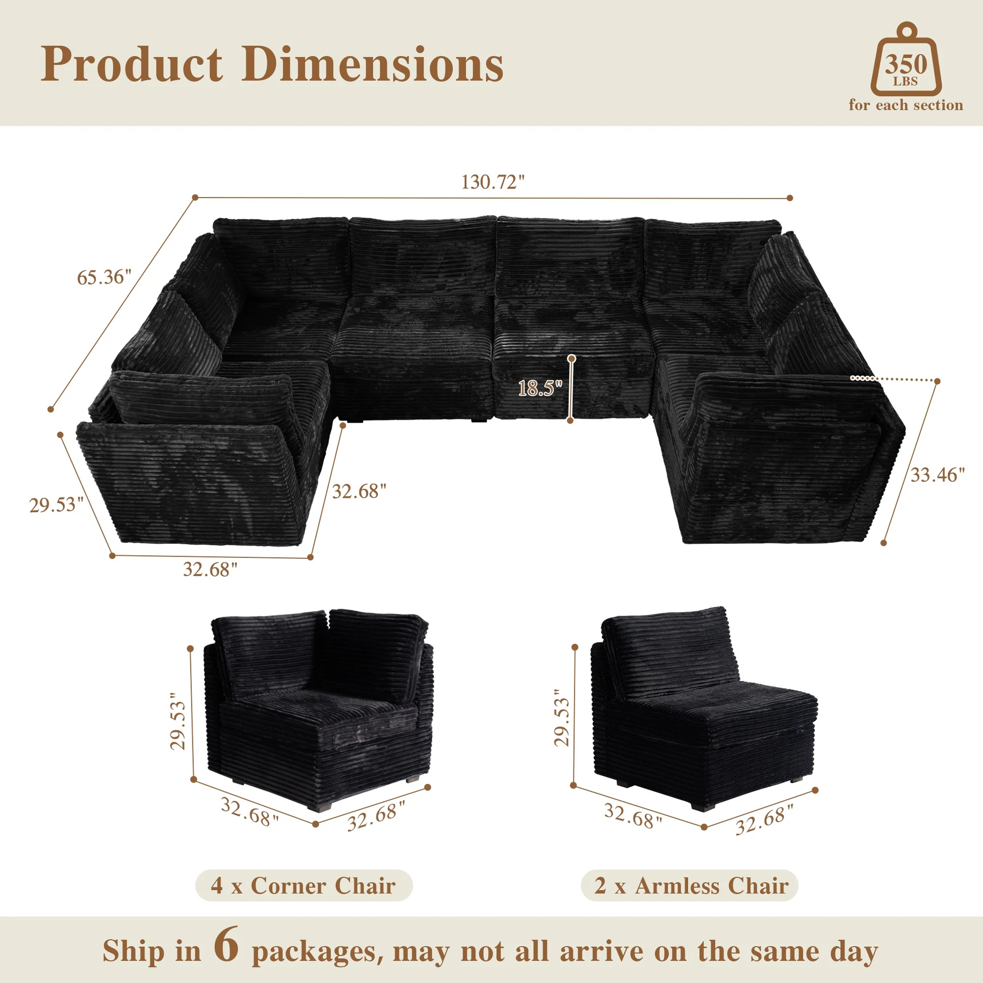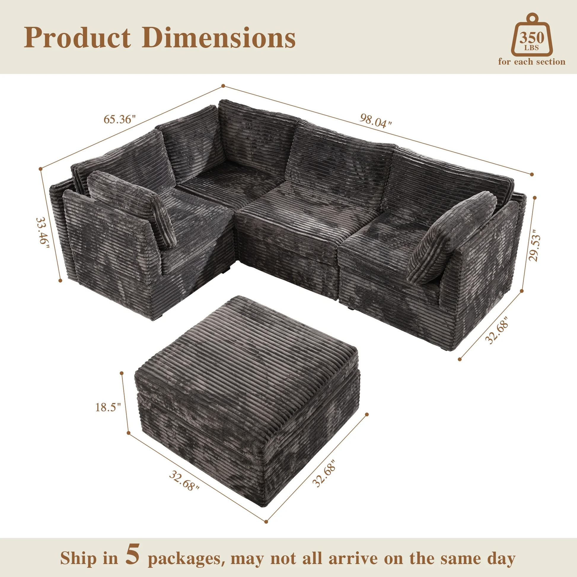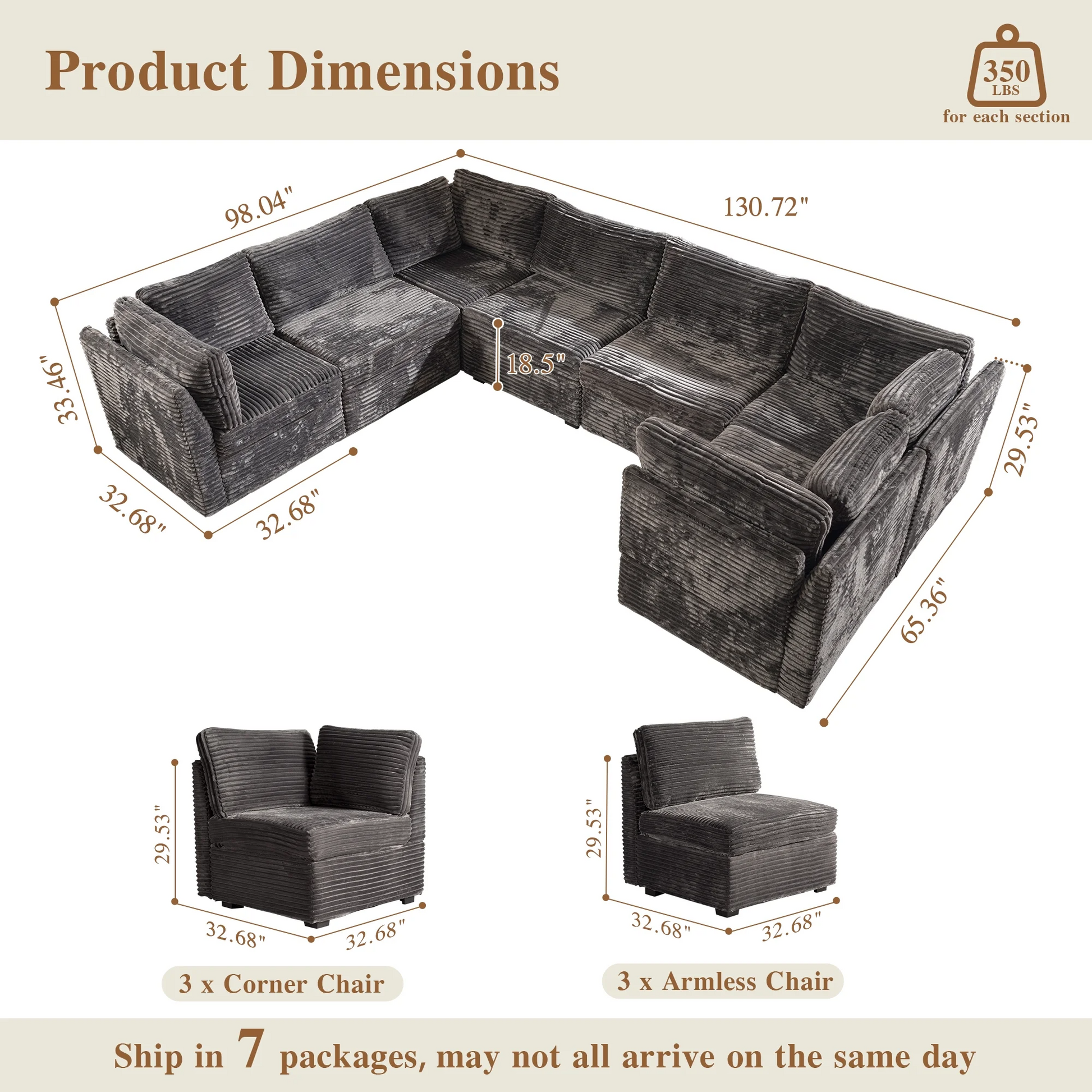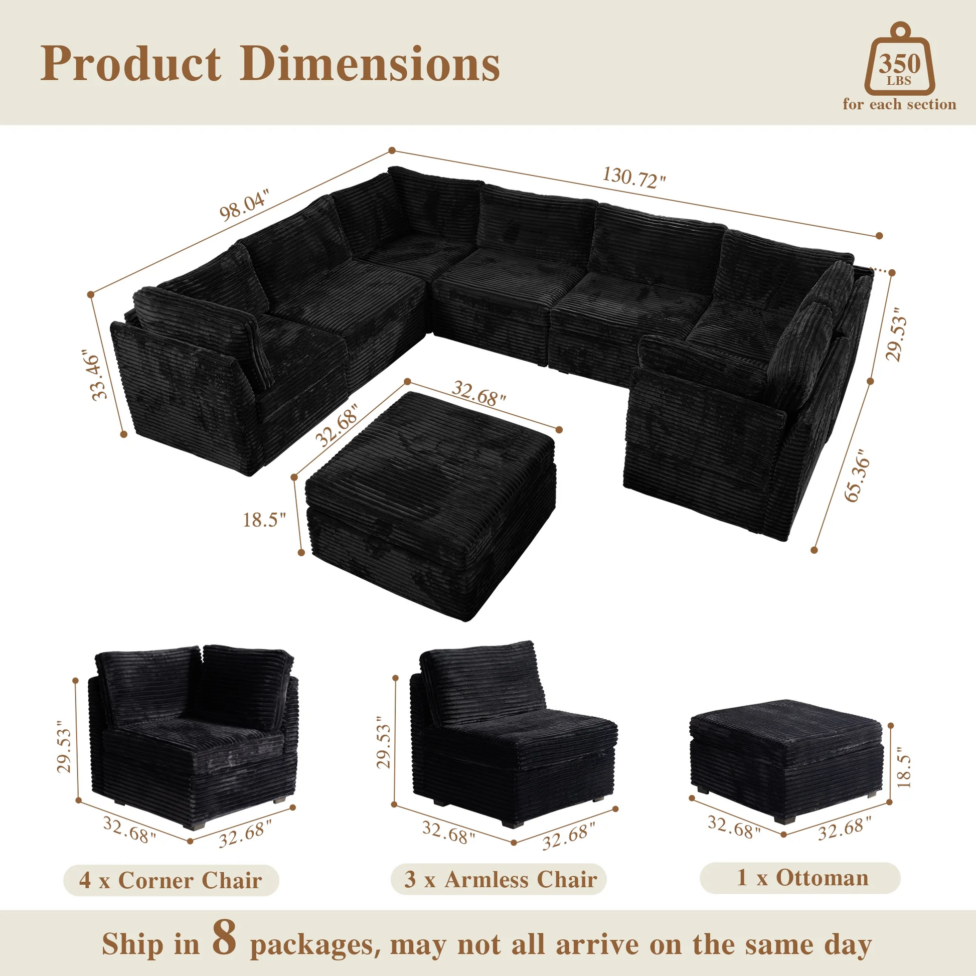 | Ottoman | 18.5"H x 33.32"W x 32.68"D |