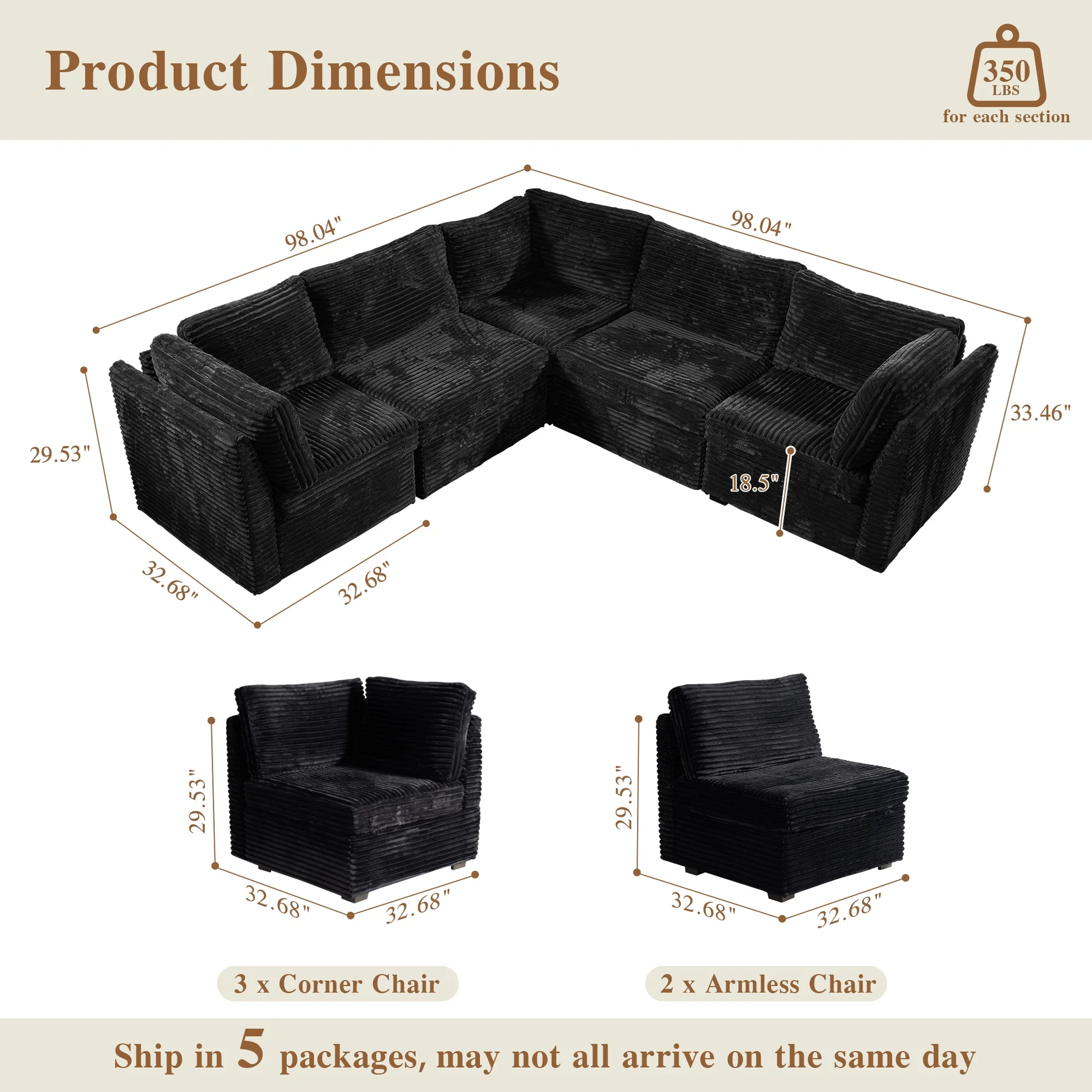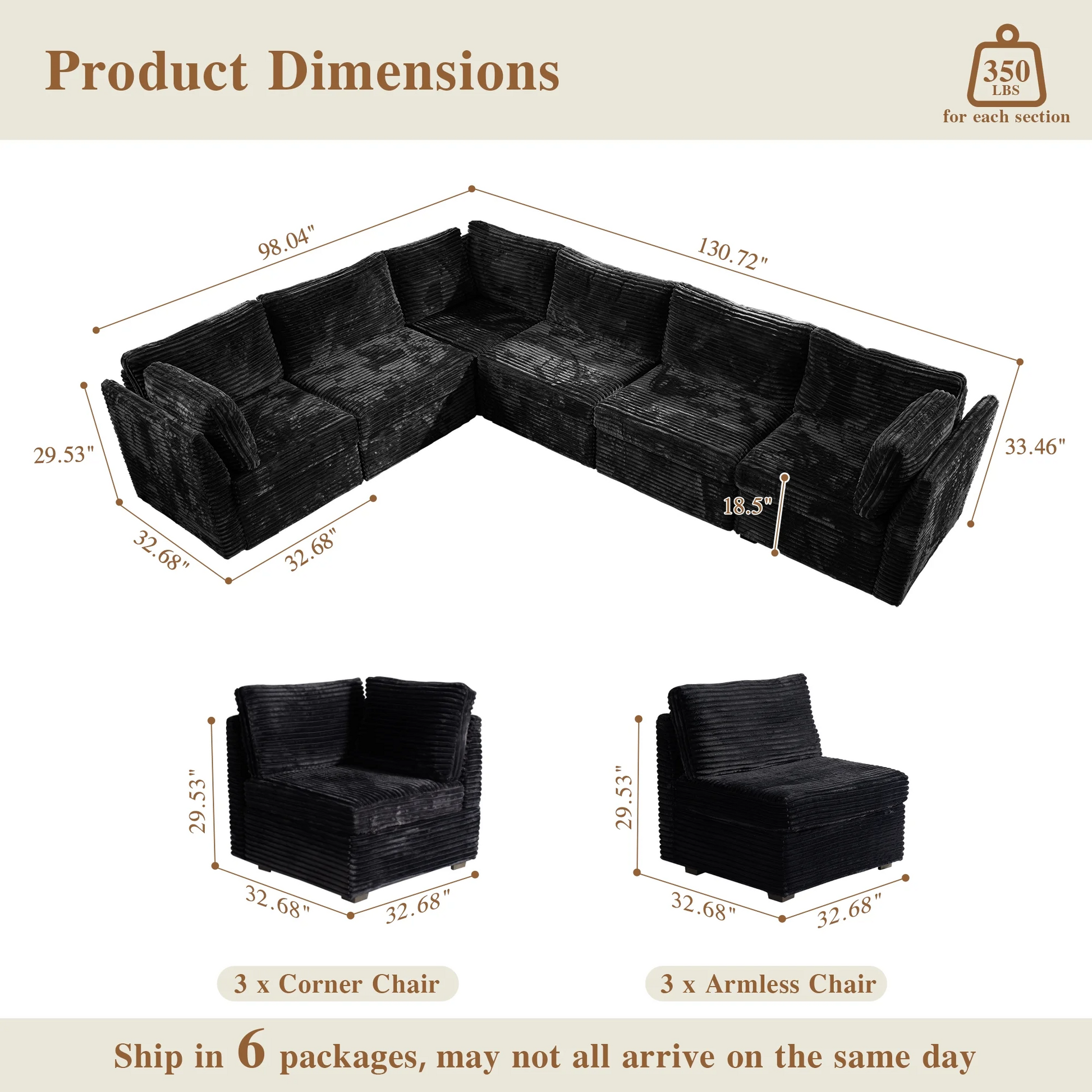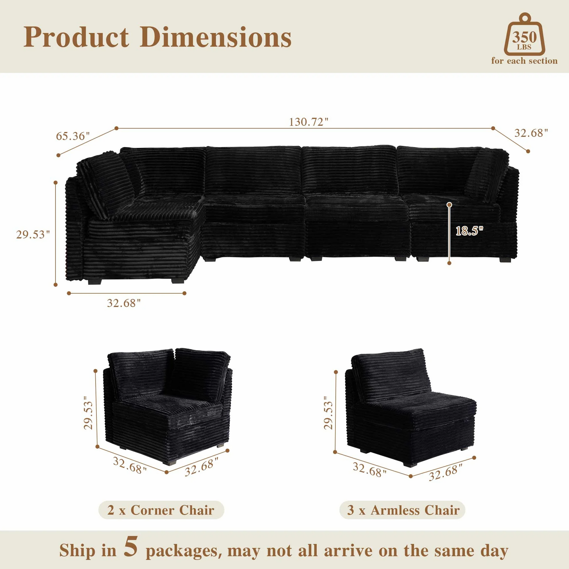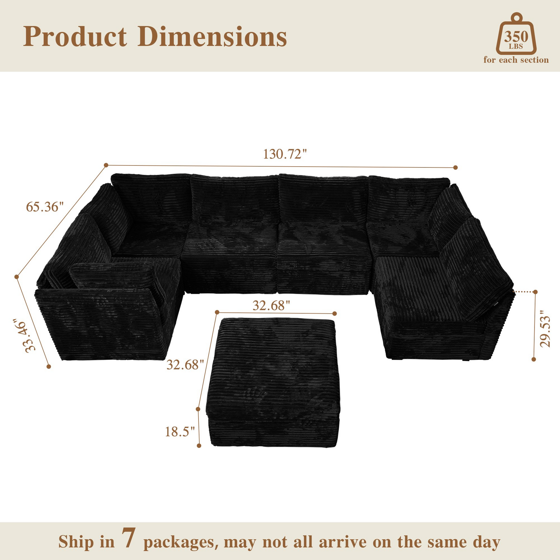 | Ottoman | 18.5"H x 33.32"W x 32.68"D |