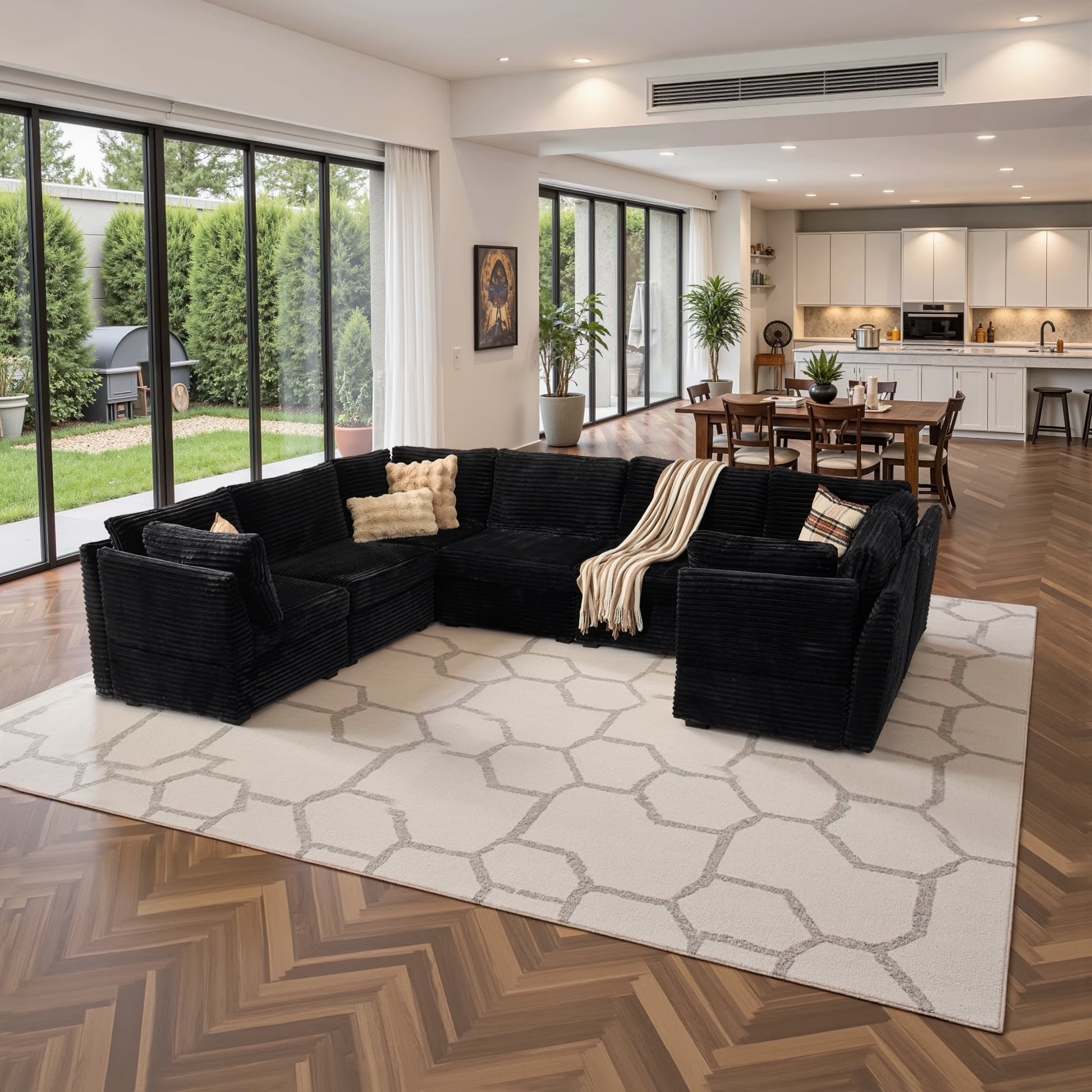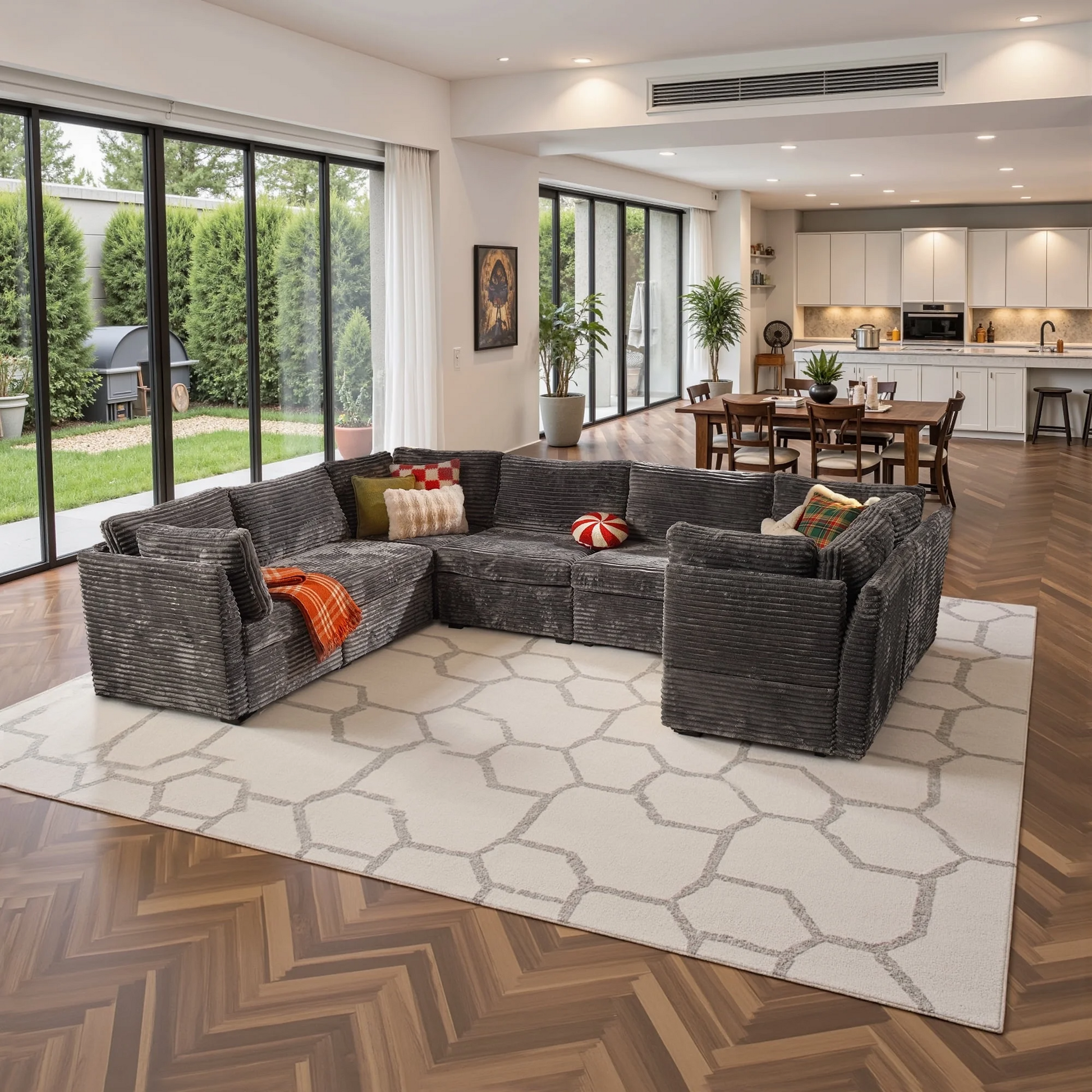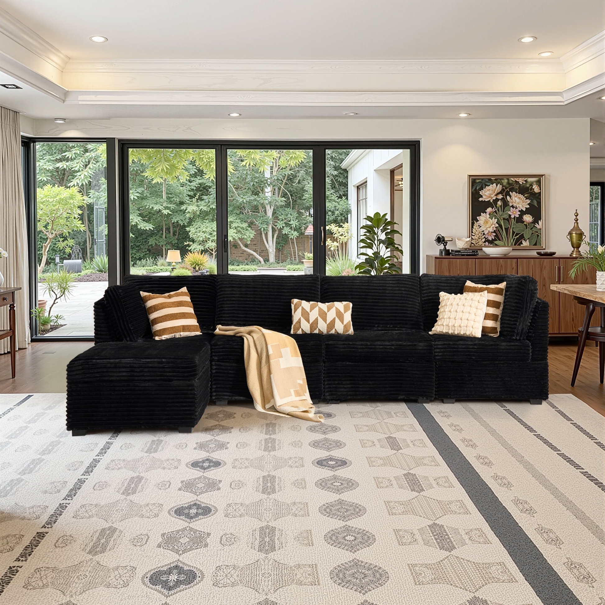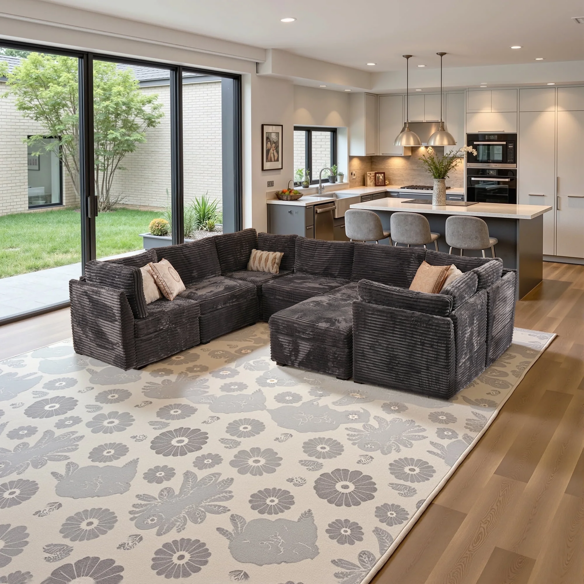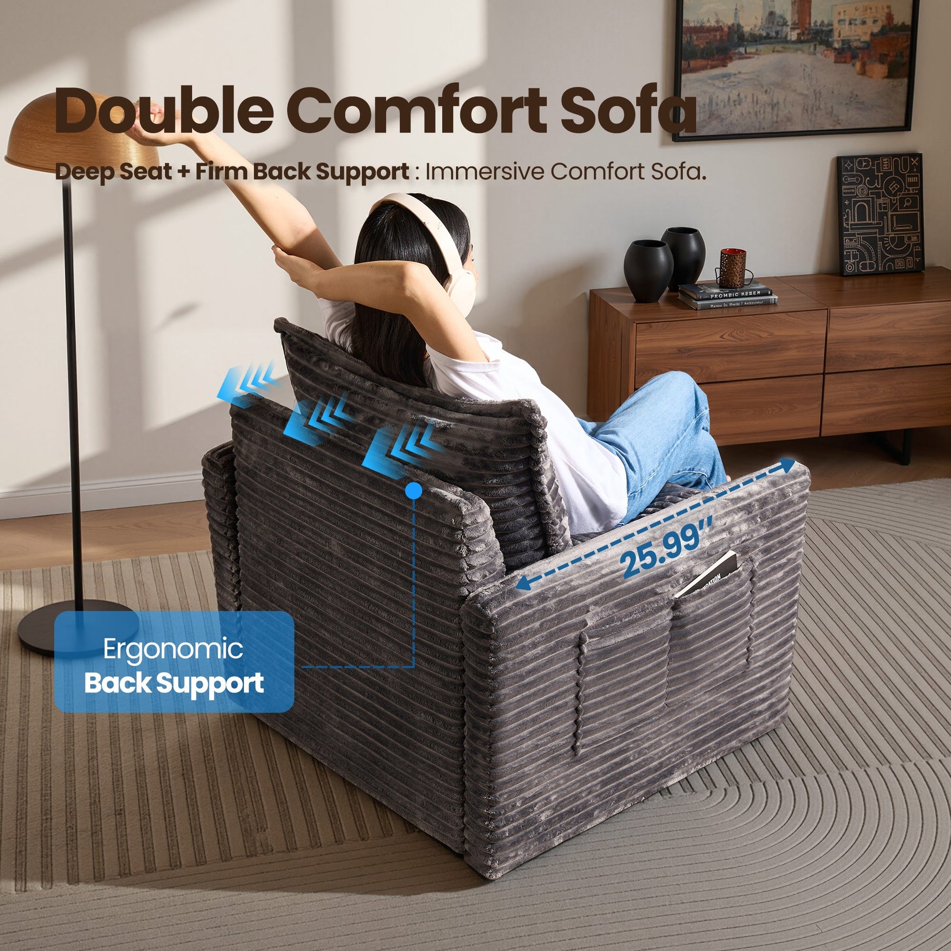 Oversized Deep Seat:The convertible reversible couch features 28.4 inch deep seating area, add the ottoman modular, armless modular or corner armrest modular chaise deep sitting can be extended to 61 inches, convert to a sofa bed to easily meet your rest and sleep needs. The deep seat cushion perfectly wraps the body and meets our ergonomic