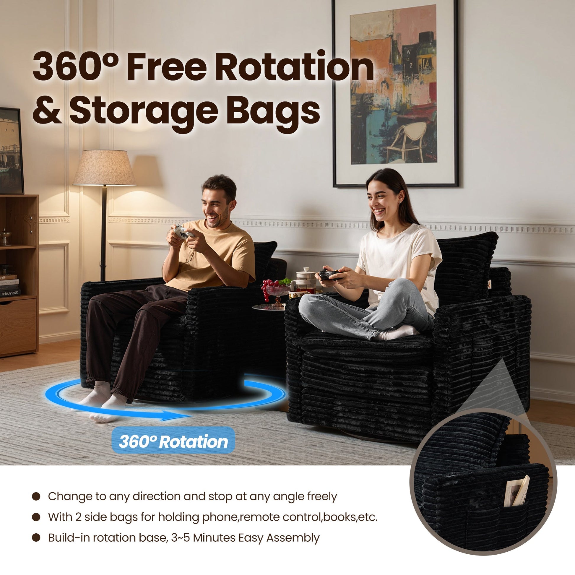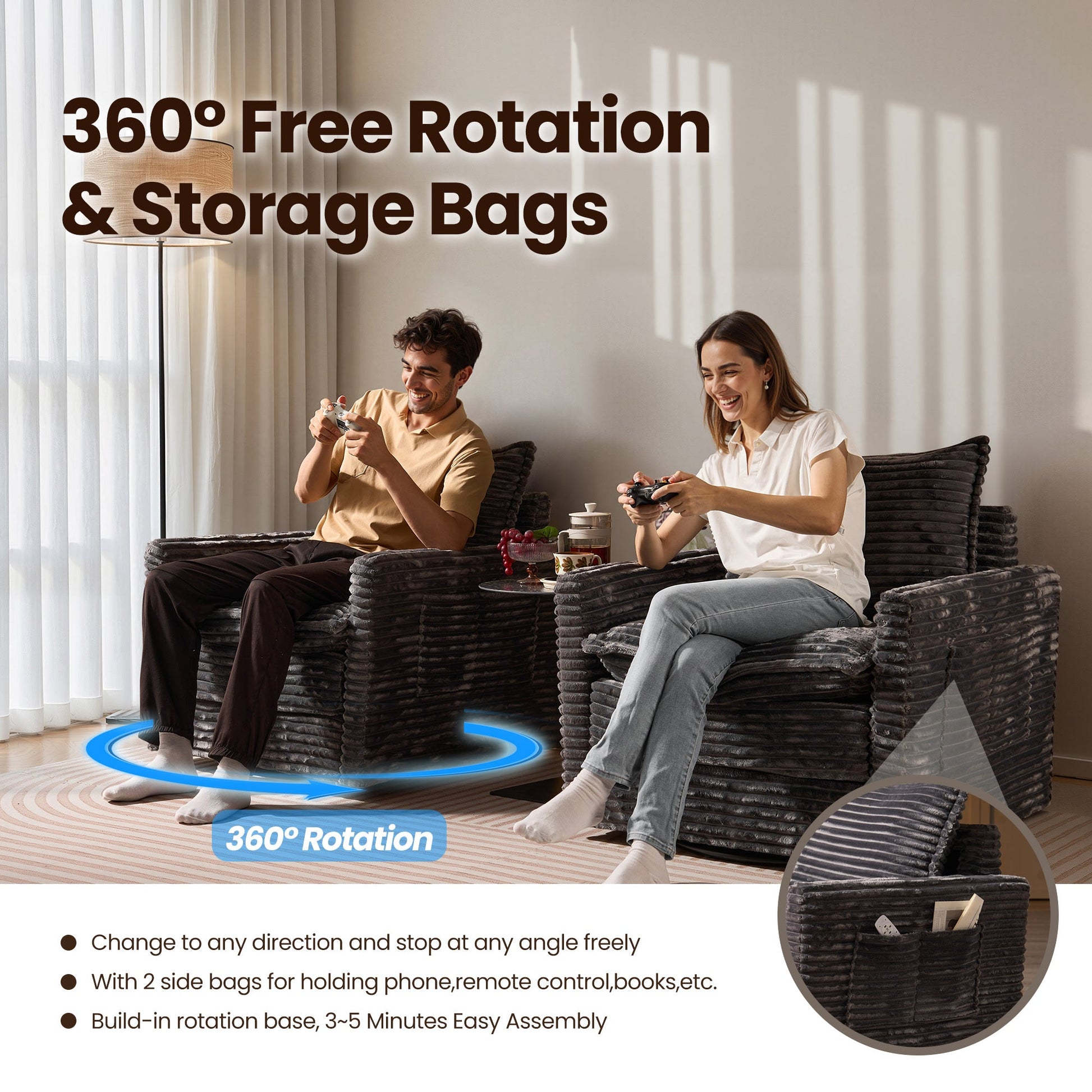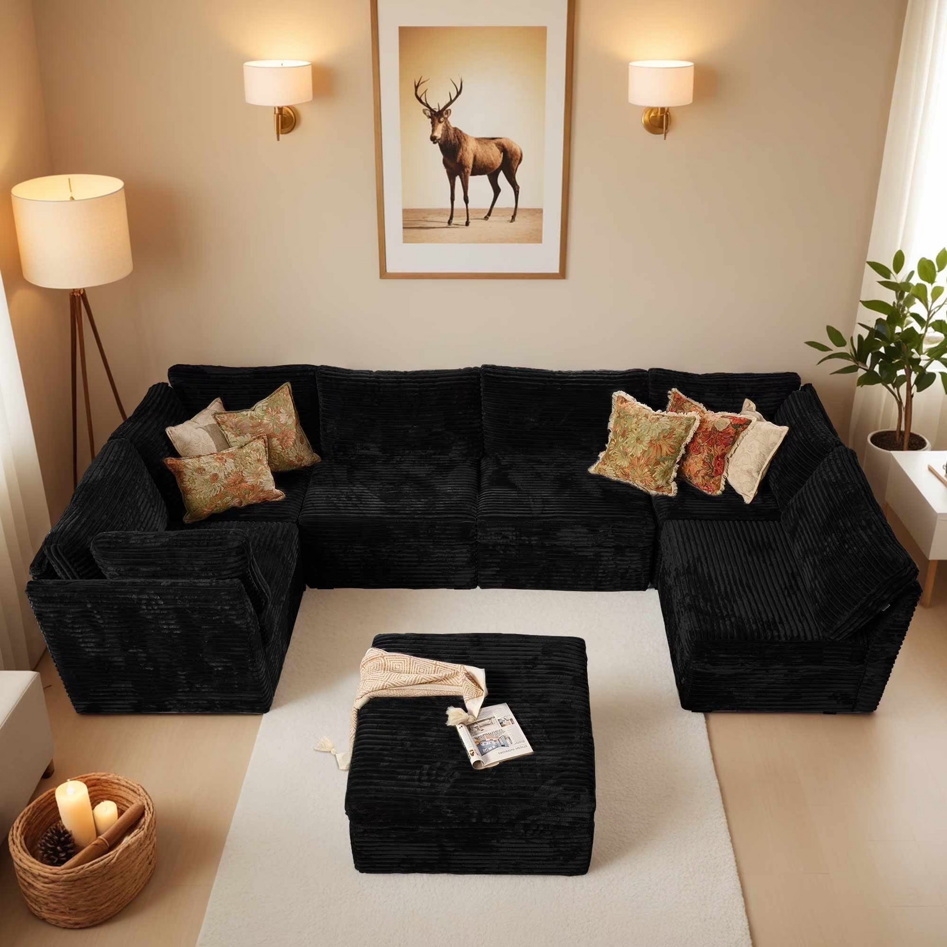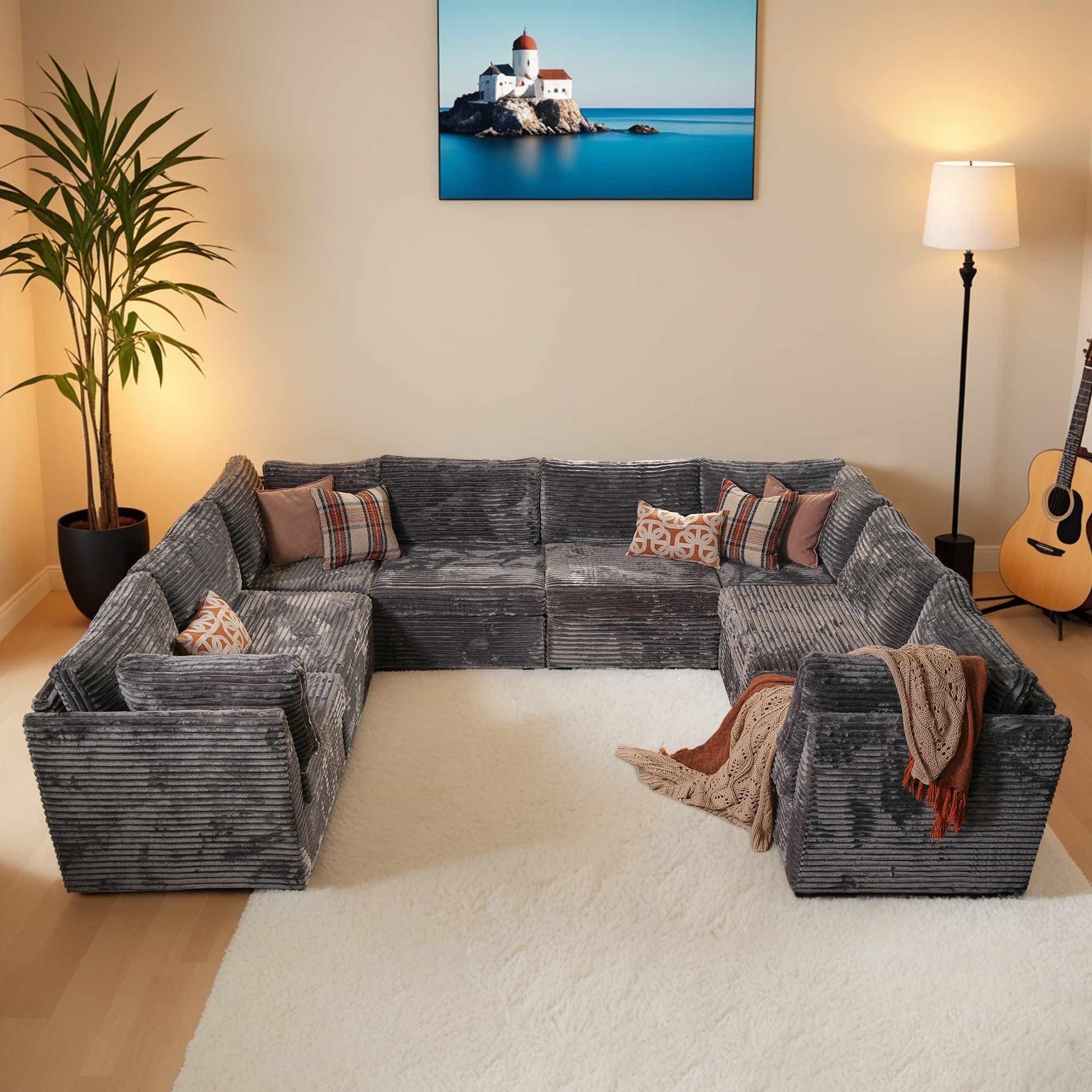 Versatile Modular Sofa Couch: Modular sectional sofa couch allow different households to move and reassemble freely for flexible combination, customized DIY combination transforming into an L-shaped, U-shaped V-shaped or sofa bed that suits your space and style. The more seat modular you add, the greater opportunity that you get to enrich and shape your life space, perfect for movie night, parties or home theaters