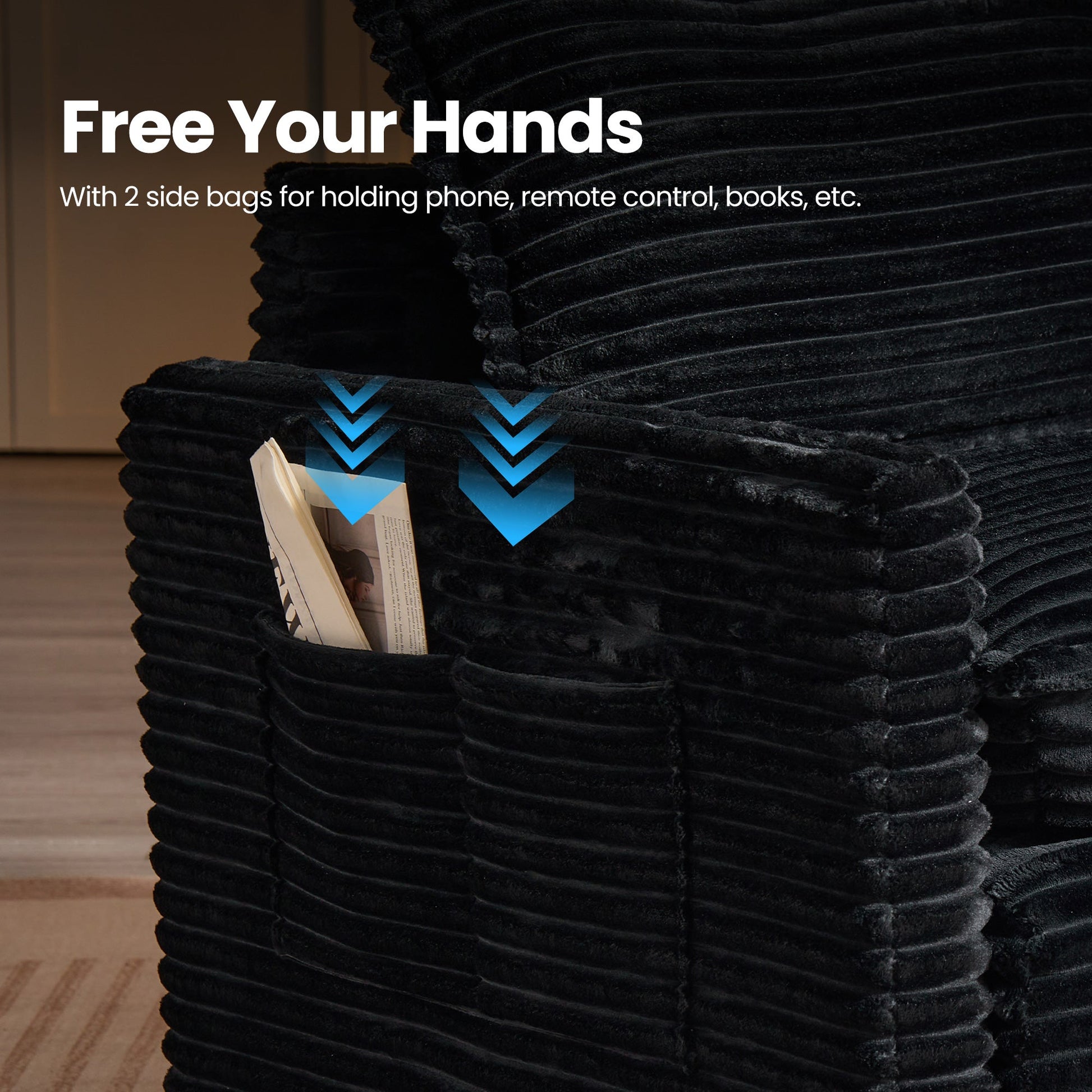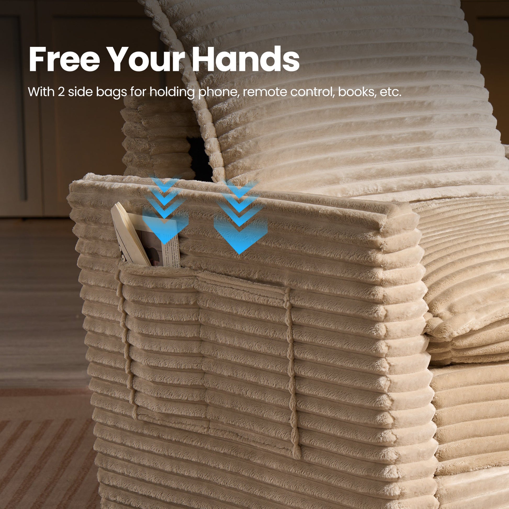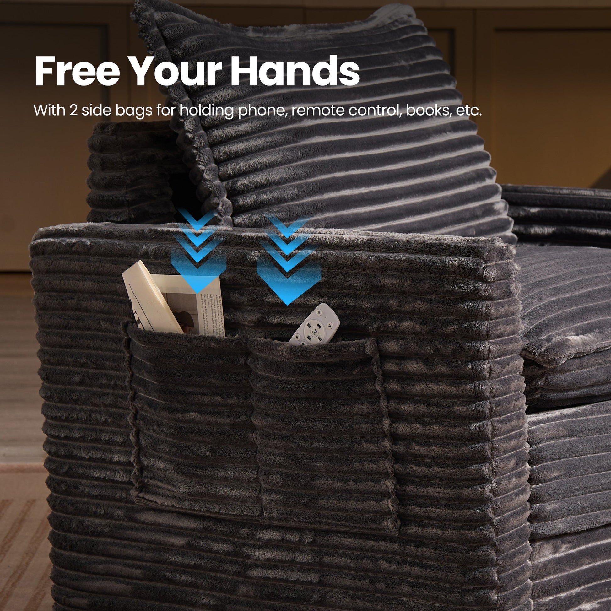 Cloud Plush Corduroy:Exquisite and luxurious plush corduroy fabric offers constant softness and comfort, with its unique cloud-like fluffy texture and luster standing out. Don't worry if your pet likes to paw at the sofa, the plush corduroy fabric is anti-scratch and can easily allow you to remove clumps of hair