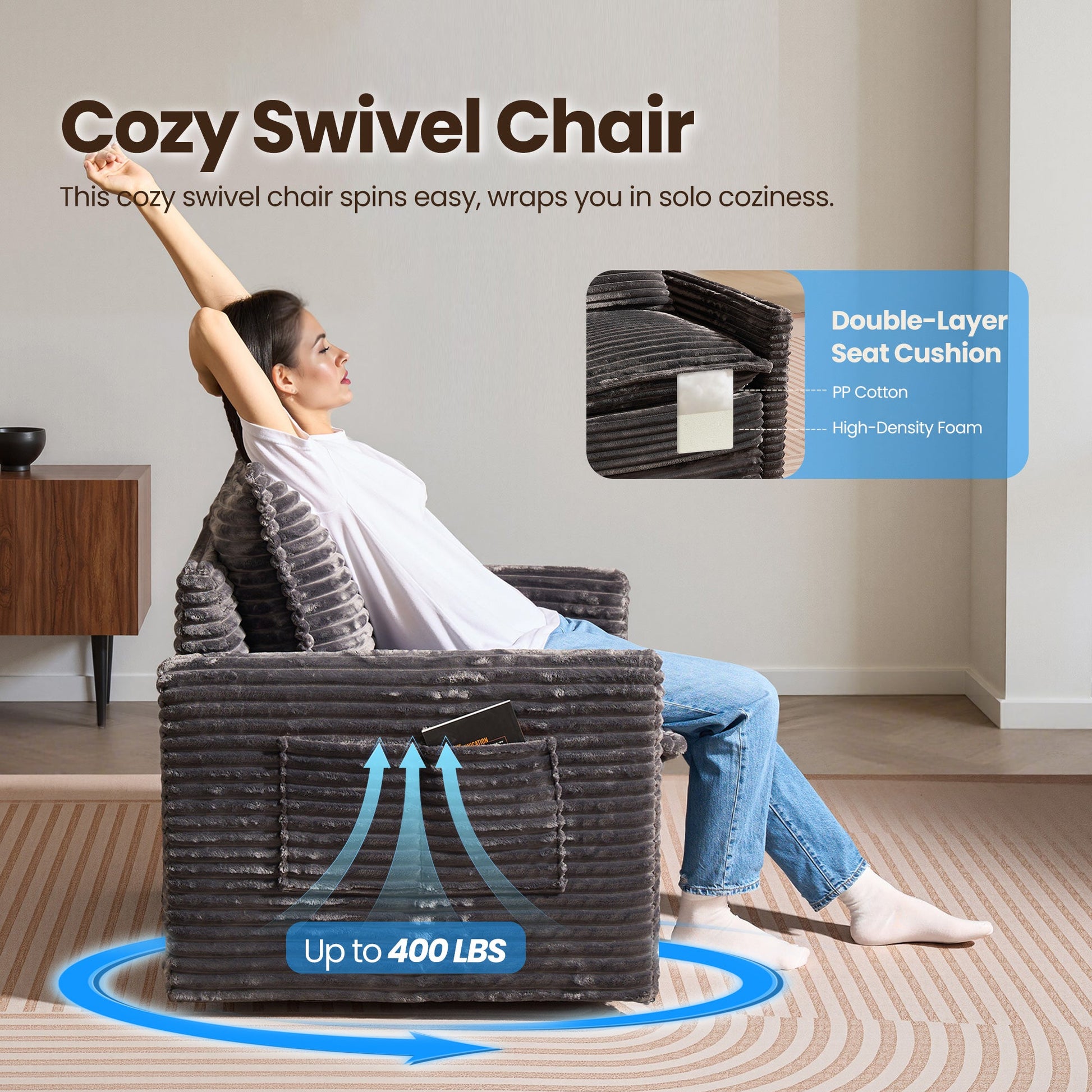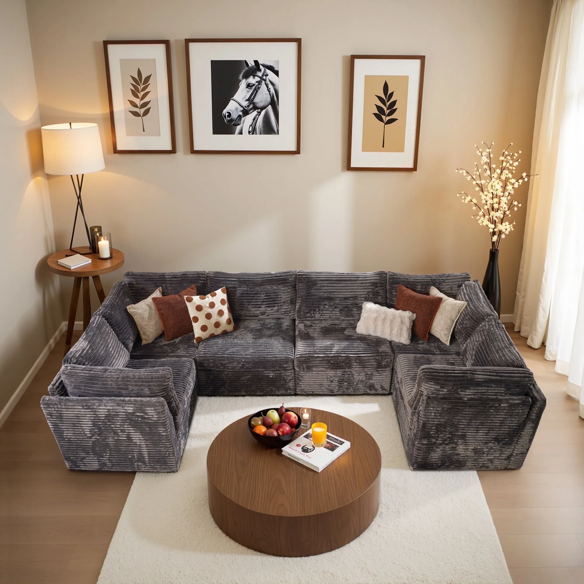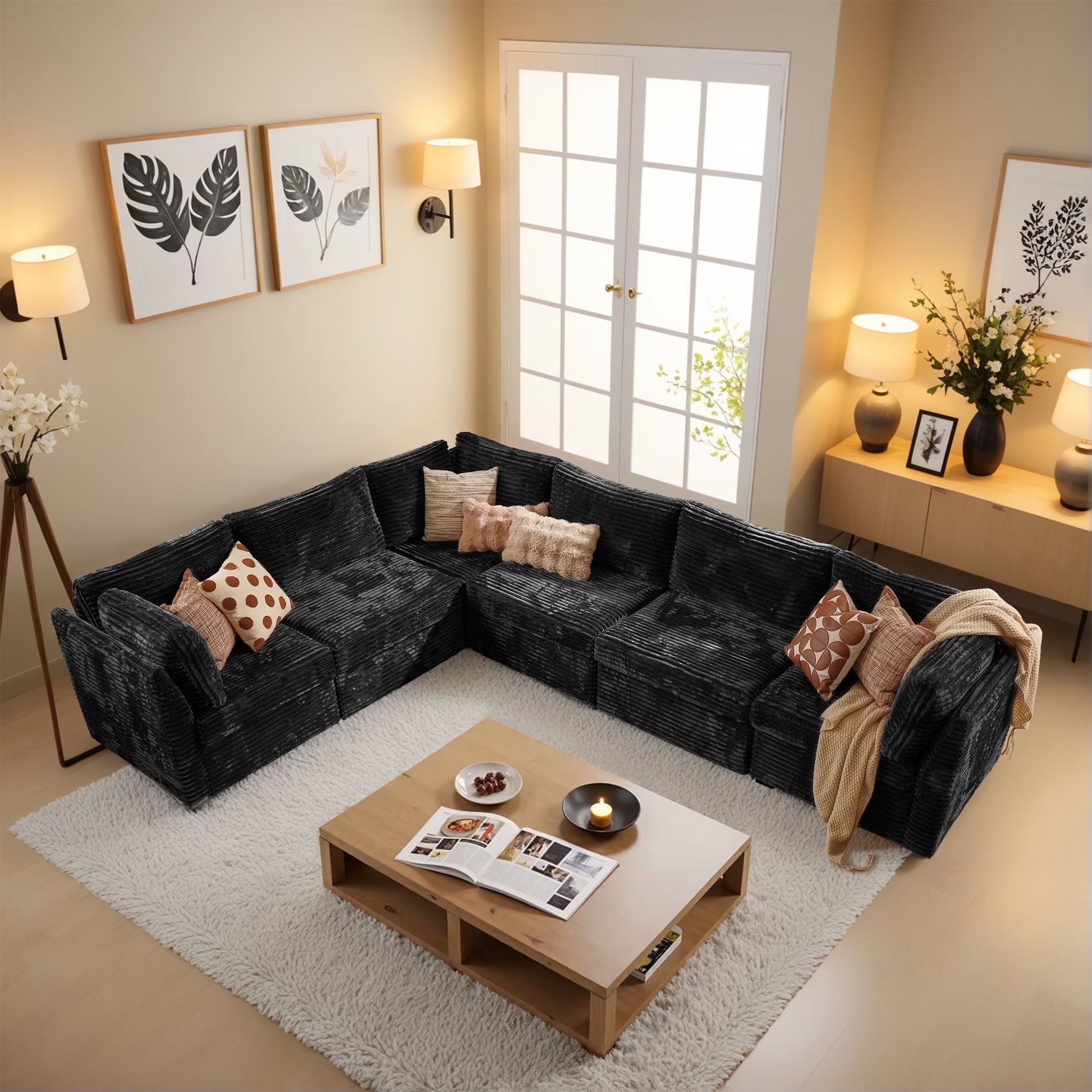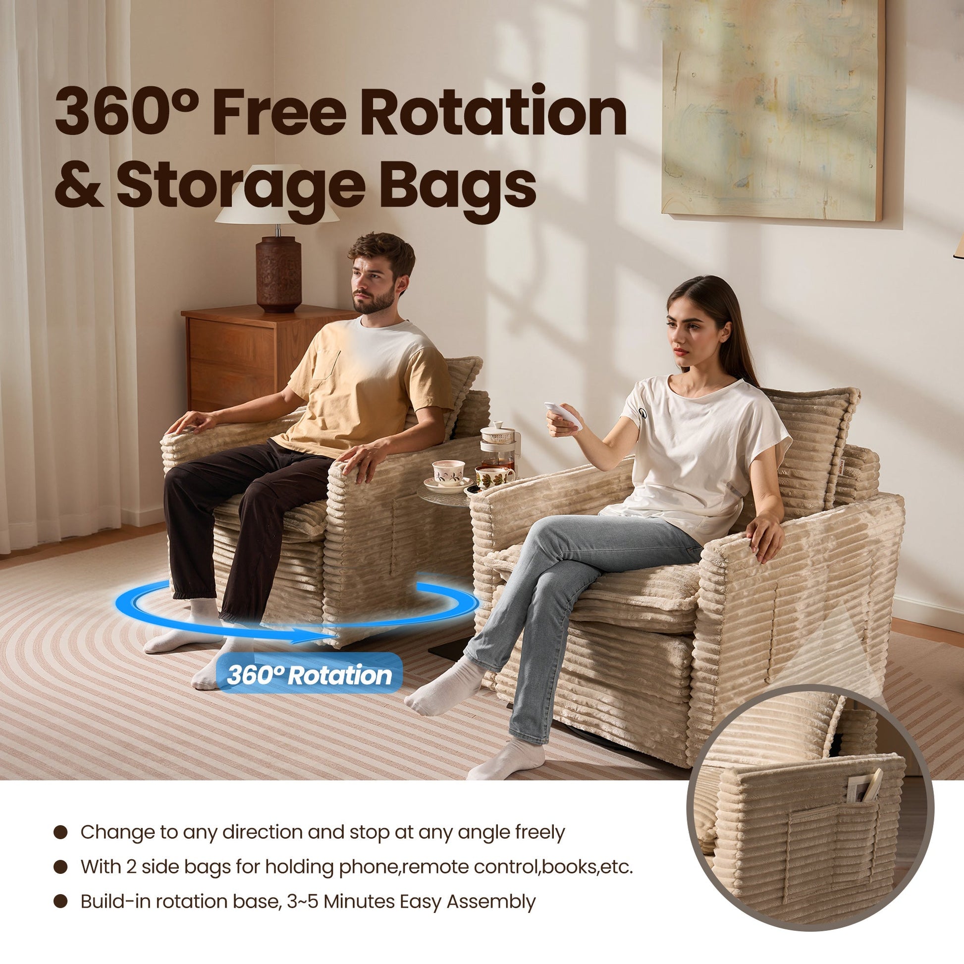 Cloud Plush Corduroy:Exquisite and luxurious plush corduroy fabric offers constant softness and comfort, with its unique cloud-like fluffy texture and luster standing out. Don't worry if your pet likes to paw at the sofa, the plush corduroy fabric is anti-scratch and can easily allow you to remove clumps of hair